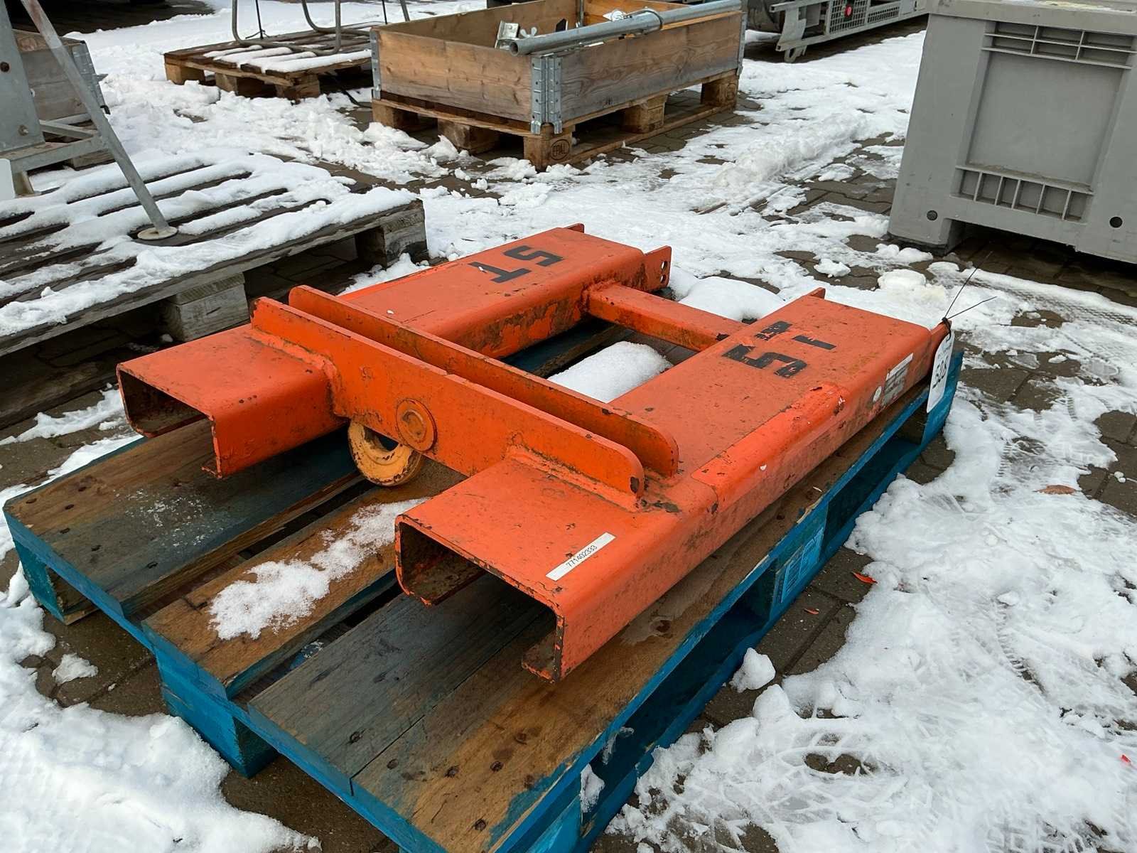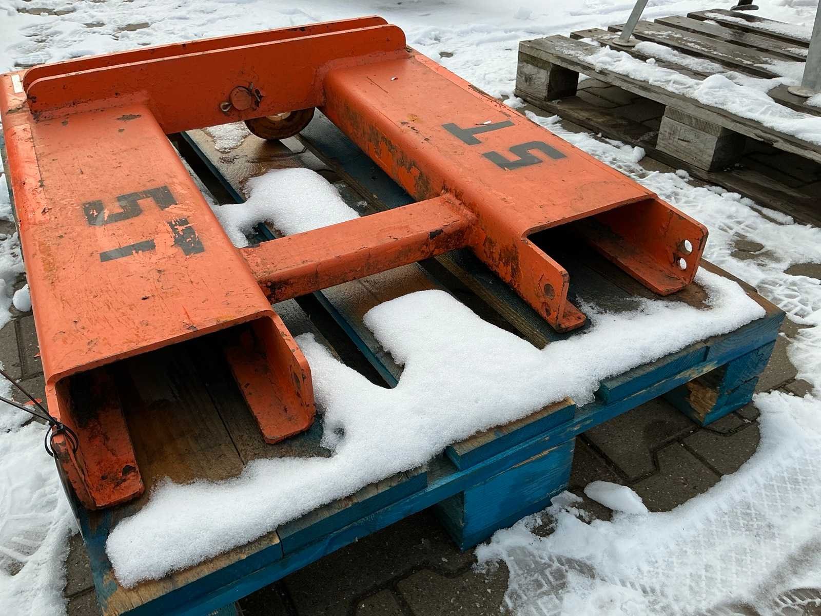 Heftruck vorksleuven; hijshaak; maximale belasting 5000 kg Nee Merk: Eichinger Bouwjaar: 2019 Eigen gewicht: 62kg Totale afmeting L: 940mm Totale afmeting Breedte: 750mm Totale afmeting Hoogte: 250mm