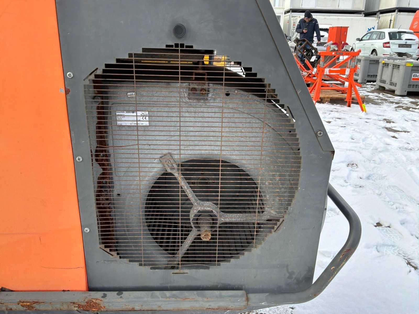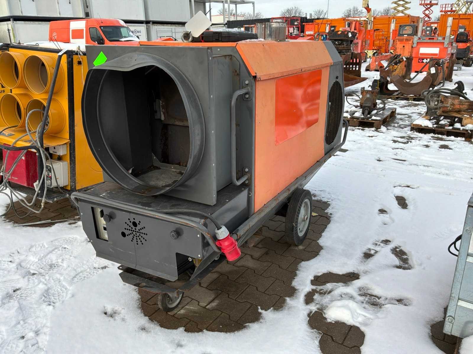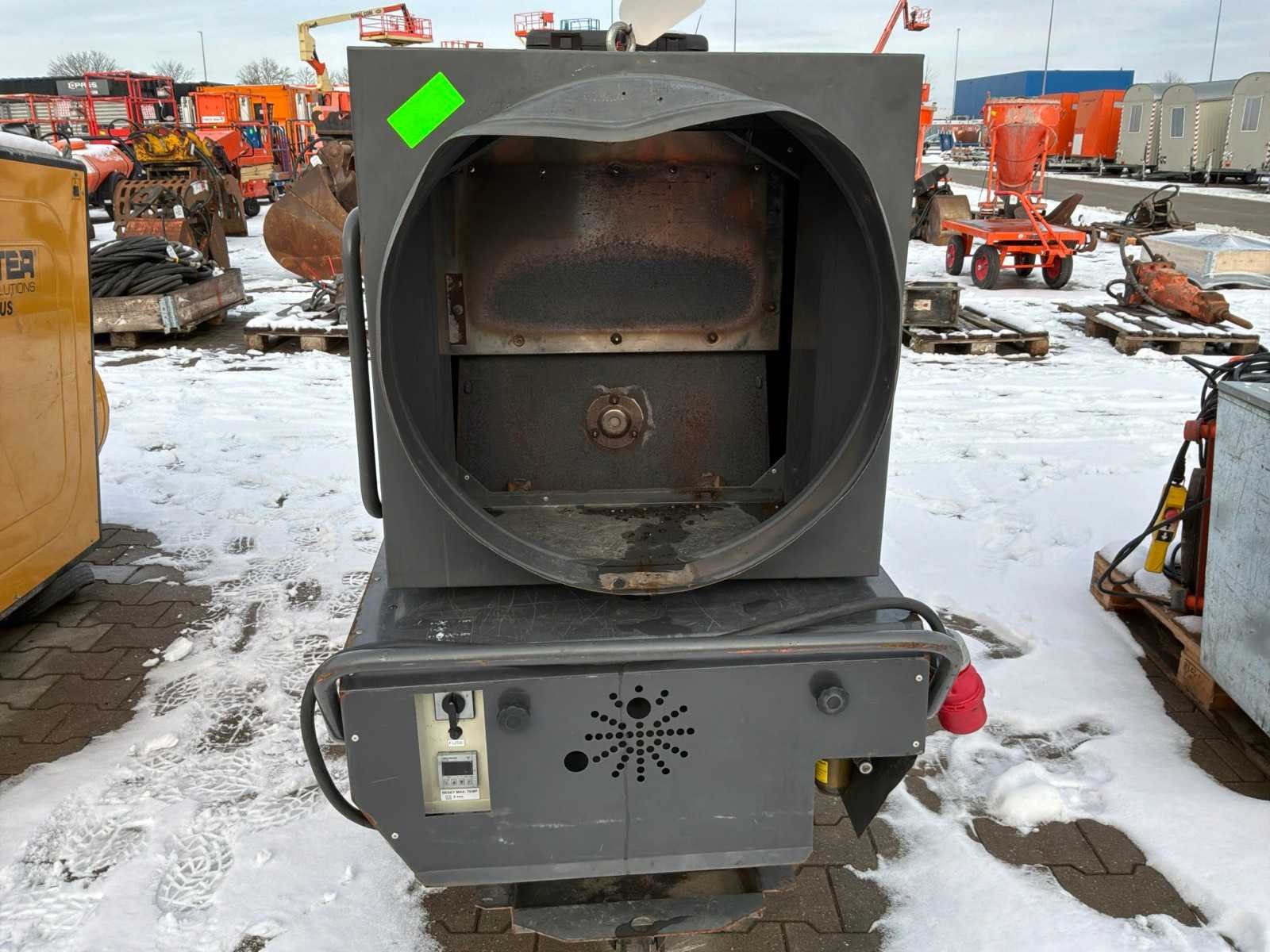 Verrijdbaar; indirect gestookt; diesel gestookt; externe brandstof aansluiting; volumestroom 11500 m3 / uur; 7,7 Ampère; luchtuitlaat diameter 600 mm; rookgasafvoer; hijsogen; heftruck vorksleuven; working condition Nee Merk: Thermobile Type: IMA-111 RHP Bouwjaar: 2011 Vermogen: 101kW Ventilator: true Totale afmeting L: 2300mm Totale afmeting Breedte: 800mm Totale afmeting Hoogte: 1450mm Aansluiting: 400V