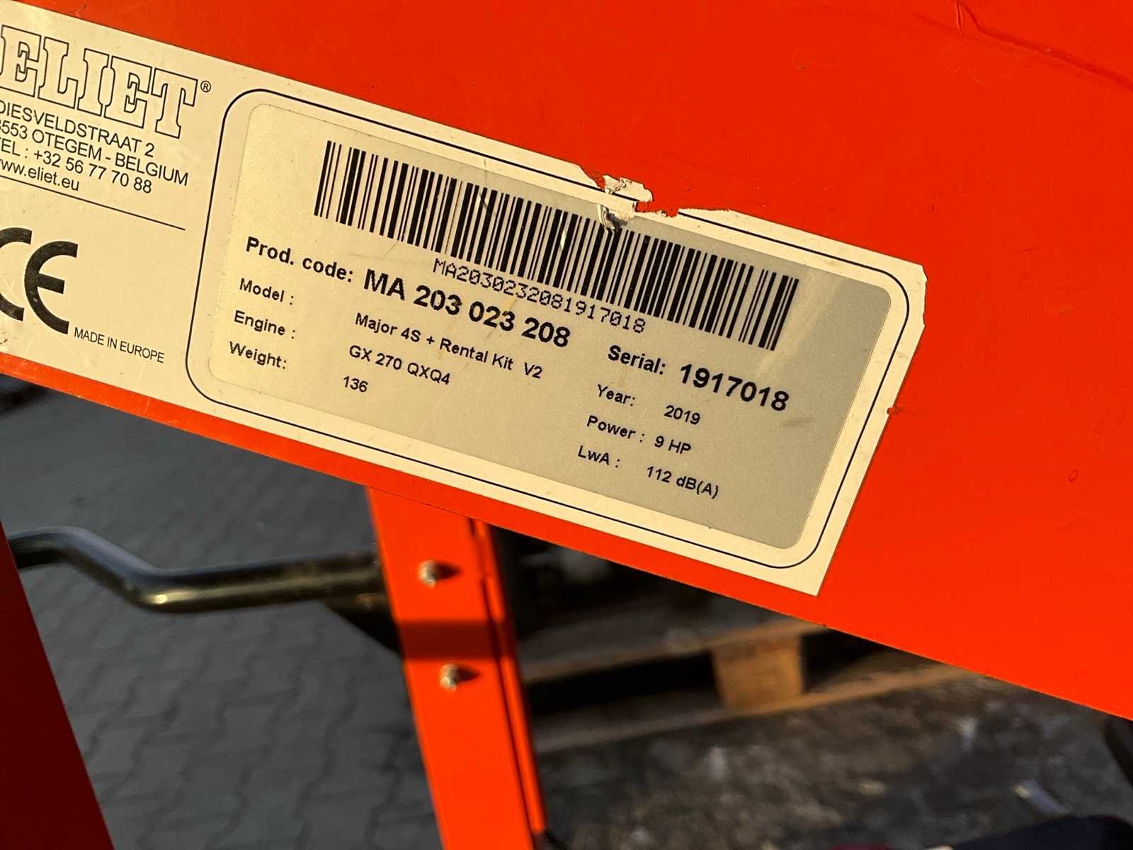 Verrijdbaar; luchtbanden; Honda GX 270 benzinemotor; 9 Pk; not working condition Nee Merk: Eliet Type: Major 4S Bouwjaar: 2019 Max. Ø: 55mm Brandstofmotor aangedreven: true Brandstof: Benzine Aspen4 Eigen gewicht: 136kg Totale afmeting L: 1300mm Totale afmeting Breedte: 620mm Totale afmeting Hoogte: 1250mm