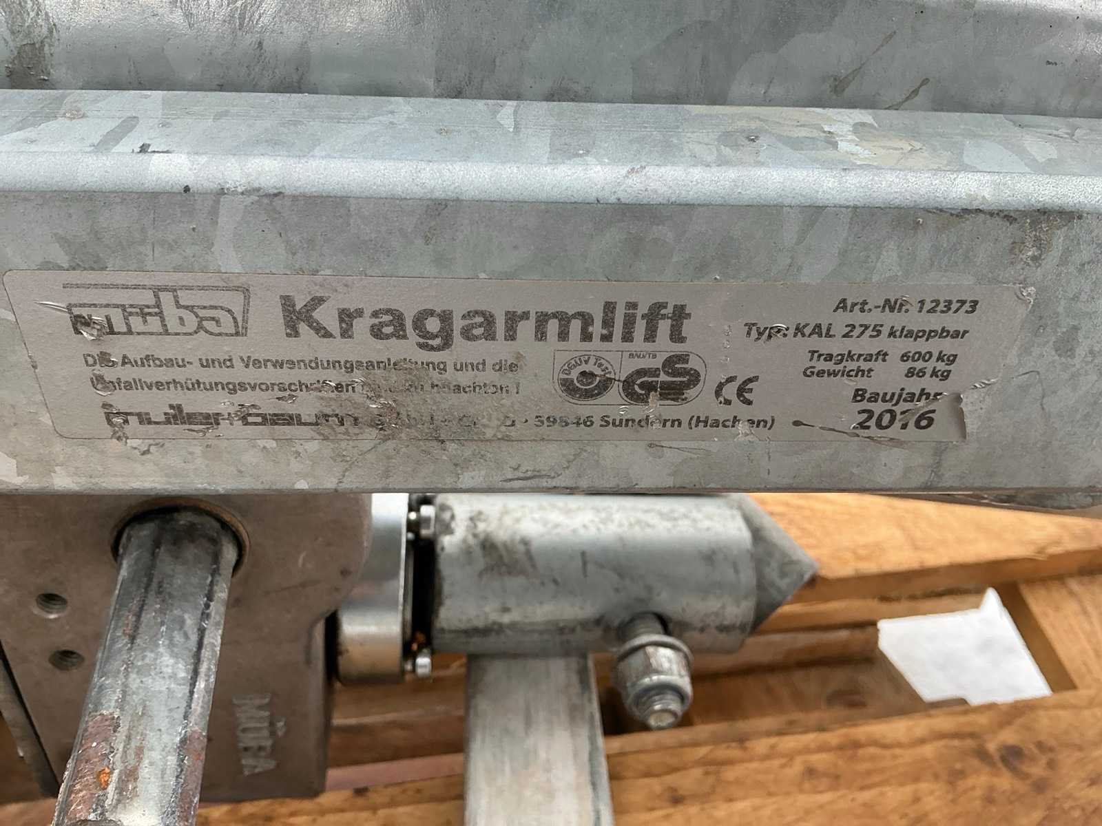 Verrijdbaar; handbediend; gegalvaniseerd profielstaal; minimale hefhoogte 1100 mm; demontabel transporteerbaar; not working Nee Merk: Muba Type: KAL 275 Bouwjaar: 2016 Hijsvermogen: 600kg Max. hefhoogte: 3m Eigen gewicht: 86kg Totale afmeting L: 1570mm Totale afmeting Breedte: 730mm Totale afmeting Hoogte: 600mm