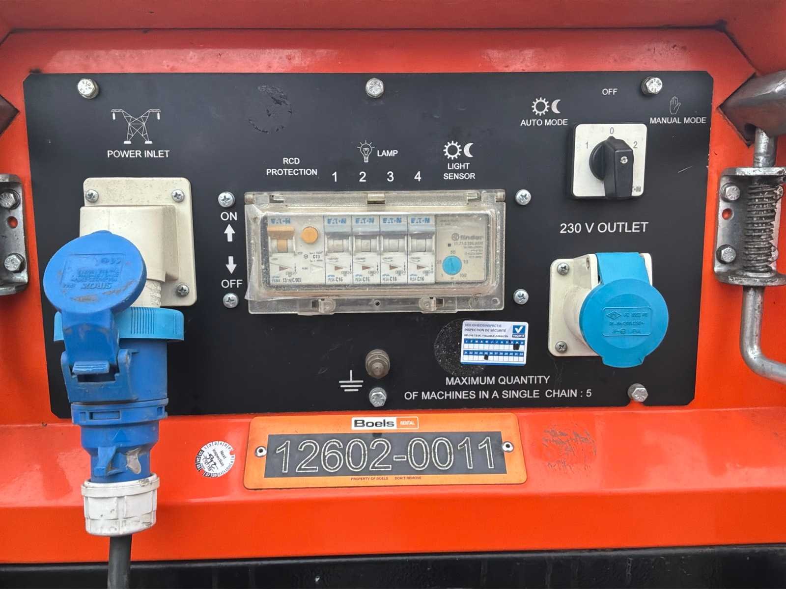 4x LED lamp 150 Watt; 230 Volt; maximum masthoogte circa 7 meter; voorzien van heftruck vorksleuven; 4x uitschuifbare stelvoet; hijsoog; verrijdbaar; working condition; Nee Merk: Trime Type: X-Chain A0002 Bouwjaar: 2016 Serienummer: 400160501 Eigen gewicht: 318kg Totale afmeting L: 1200mm Totale afmeting Breedte: 760mm Totale afmeting Hoogte: 2380mm