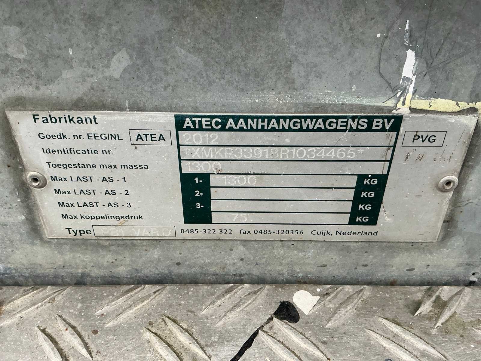 Gegalvaniseerd staal frame; geremd; oplooprem; snelverkeer; kogelkoppeling; transportverlichting; 3x buitendeur; afzonderlijke opbergruimte; afzonderlijke toiletruimte; 2x raam voorzien van luik; tafel; stoelen; kachel; neuswiel; (de koper dient bij transport over de weg zelf te voorzien in een geldig kenteken; een 7 of 9 polige aansluitstekker of verloopstuk met kabel (verlengsnoer kan ter plaatse tegen betaling aangekocht worden); eventueel extra lichtbalk; Nederlandse kentekenpapieren; zonder gelijkvormigheidsattest); Nee Merk: Atec Type: STBK400LSVP Bouwjaar: 2010 Chassisnummer VIN: XMKP33918R1034465 Kenteken: 57-WG-PL Afmeting l: 4000mm Afmeting b: 1960mm Afmeting h: 2200mm Eigen gewicht: 920kg Totale afmeting L: 5750mm Totale afmeting Breedte: 2050mm Totale afmeting Hoogte: 2700mm