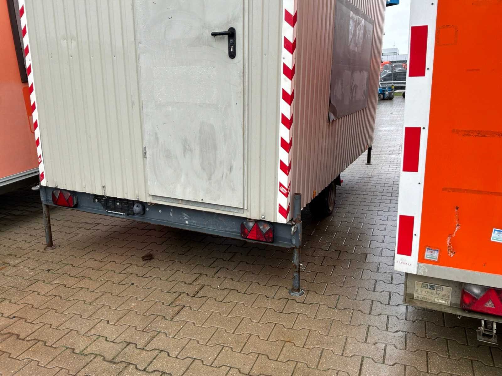 Staalplaat corpus; geremd; neuswiel; 4x stelvoet; kogelkoppeling en transportverlichting; 1x deur; raam voorzien van gegalvaniseerd staal luik; tafel; 2x zitbank; kachel; (de koper dient bij transport over de weg zelf te voorzien in een geldig kenteken; een 7 of 9 polige aansluitstekker of verloopstuk met kabel (verlengsnoer kan ter plaatse tegen betaling aangekocht worden); eventueel extra lichtbalk; Duitse kentekenpapieren; gelijkvormigheidsattest; (M-C2857) Nee Merk: Weiro Holzbau Bauwagen Type: Rasant 350 Chassisnummer VIN: W09352113HWH37921 Afmeting l: 3520mm Afmeting b: 2110mm Afmeting h: 2450mm Aantal ramen: 1 Totale afmeting L: 5120mm Totale afmeting Breedte: 2110mm Totale afmeting Hoogte: 2930mm