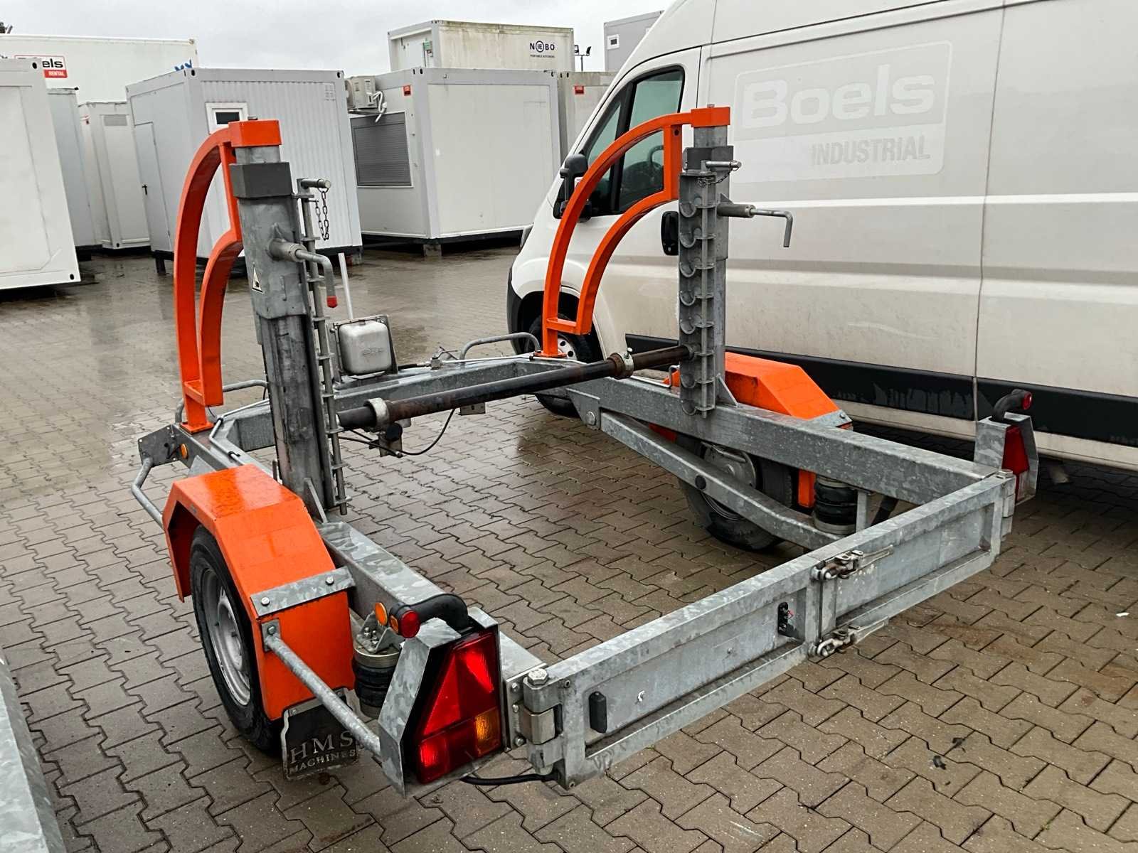 Totale lengte 3500 mm; totale breedte 2200 mm; gegalvaniseerd frame; haspel in de hoogte verstelbaar; maximale haspel diameter 2300 mm; minimale haspel diameter 800 mm; maximale haspel breedte 140 mm; bruto laadvermogen 1900 kg; neuswiel; neuswiel te herstellen; oplooprem; achterlicht te herstellen; (de koper dient bij transport over de weg zelf te voorzien in een geldig kenteken; een 7 of 9 polige aansluitstekker of verloopstuk met kabel (verlengsnoer kan ter plaatse tegen betaling aangekocht worden); eventueel extra lichtbalk); Duitse kentekenpapieren; gelijkvormigheidsattest; (VIE-YV150) Nee Merk: HMS Type: Variant 130 Bouwjaar: 2019 Chassisnummer: XL9130HMS19450117 Aantal assen: 1 Ledig gewicht: 600kg Laadvermogen: 1300kg