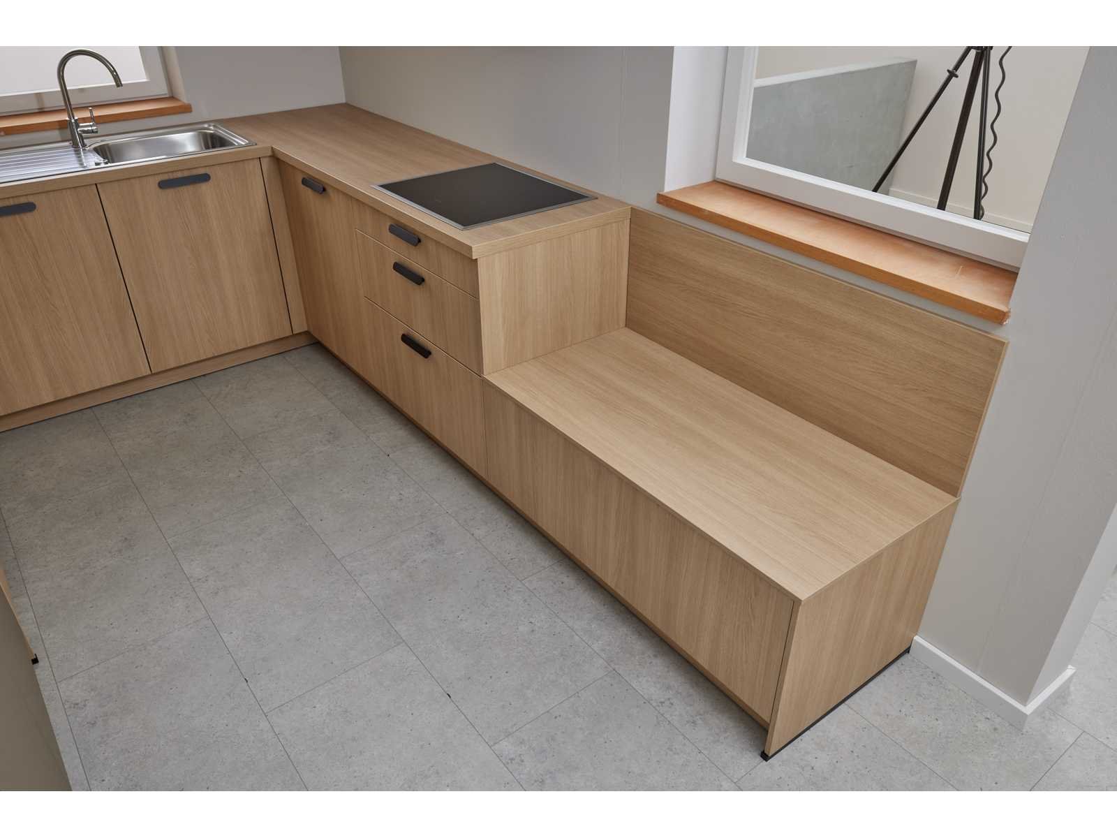 Zonder keuken apparatuur; afmetingen linkerdeel circa 308,2x60x224,5 cm; afmetingen middelste deel circa 250x60x905 cm; afmetingen rechterdeel circa 326,6x60x90,5 cm; reeds gedemonteerd en ingepakt op pallets. (afstapelen, omruilen of statiegeld per pallet); Pallets zijn niet inbegrepen; statiegeld betalen bij afhalen, of pallets afstapelen; werkblad niet ingepakt op pallets (25-SCH-02732) Nee Merk: Schüller Type keukenopstelling: Schiereiland Werkblad hoogte: 90,5cm Aanrechtblad: Kunststof zandeiken Fornuis: Siemens EH645BFB6E Softclose: true Kleur: Zandeiken synchroonprint