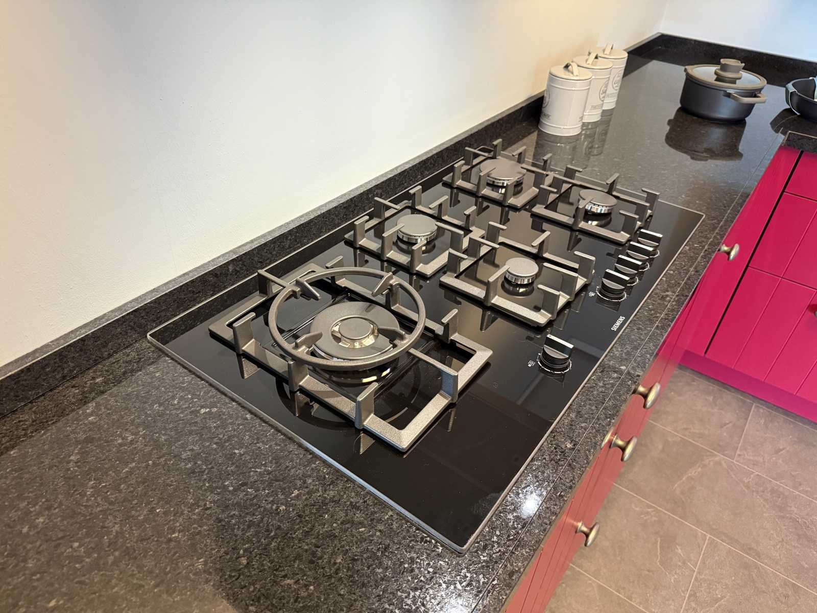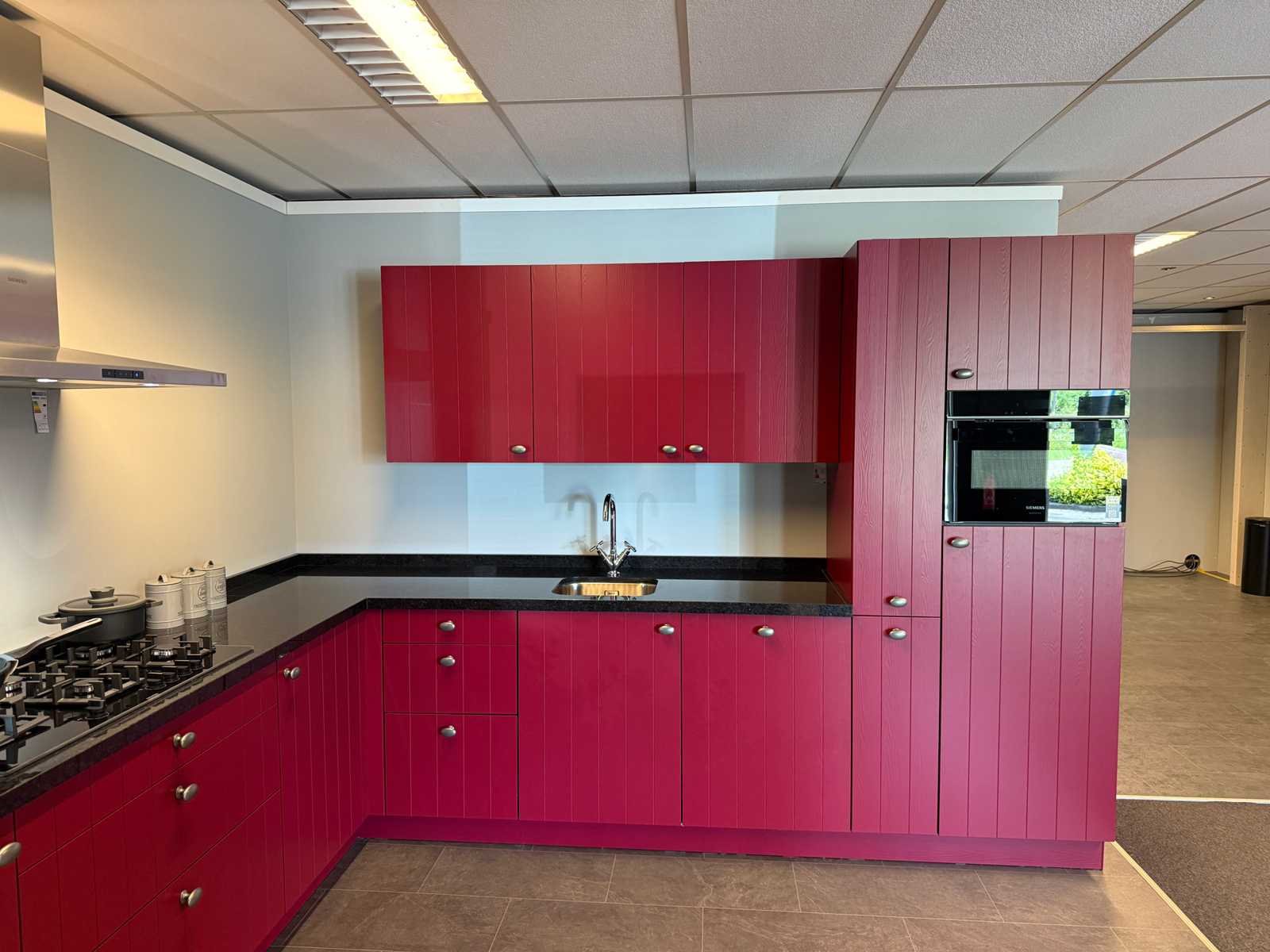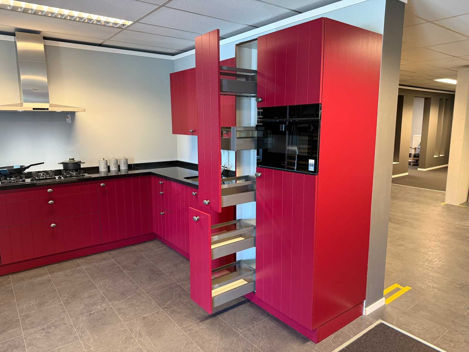 Afmetingen linkerdeel circa 296x60x96 cm; afmetingen rechterdeel circa 325x60x221 cm; let op zonder spatrand; reeds gedemonteerd en ingepakt op pallets. (afstapelen, omruilen of statiegeld per pallet); pallets zijn niet inbegrepen; statiegeld betalen bij afhalen, of pallets afstapelen; werkblad niet ingepakt op pallets (25-KHR-01436) Nee Merk: Keller Type keukenopstelling: Hoek Kraan: Ja Gootsteen: Franke Aanrechtblad: Graniet Magnetron: Siemens Studioline CM924G1B1/D9 Fornuis: Siemens EP9A6SC90N Koelkast: Siemens Studioline KI31RSD30 Softclose: true Afzuigkap: Siemens LC96QBM50 Vaatwasser: Smeg STL323BL Kleur: Rood eiken gebeitst