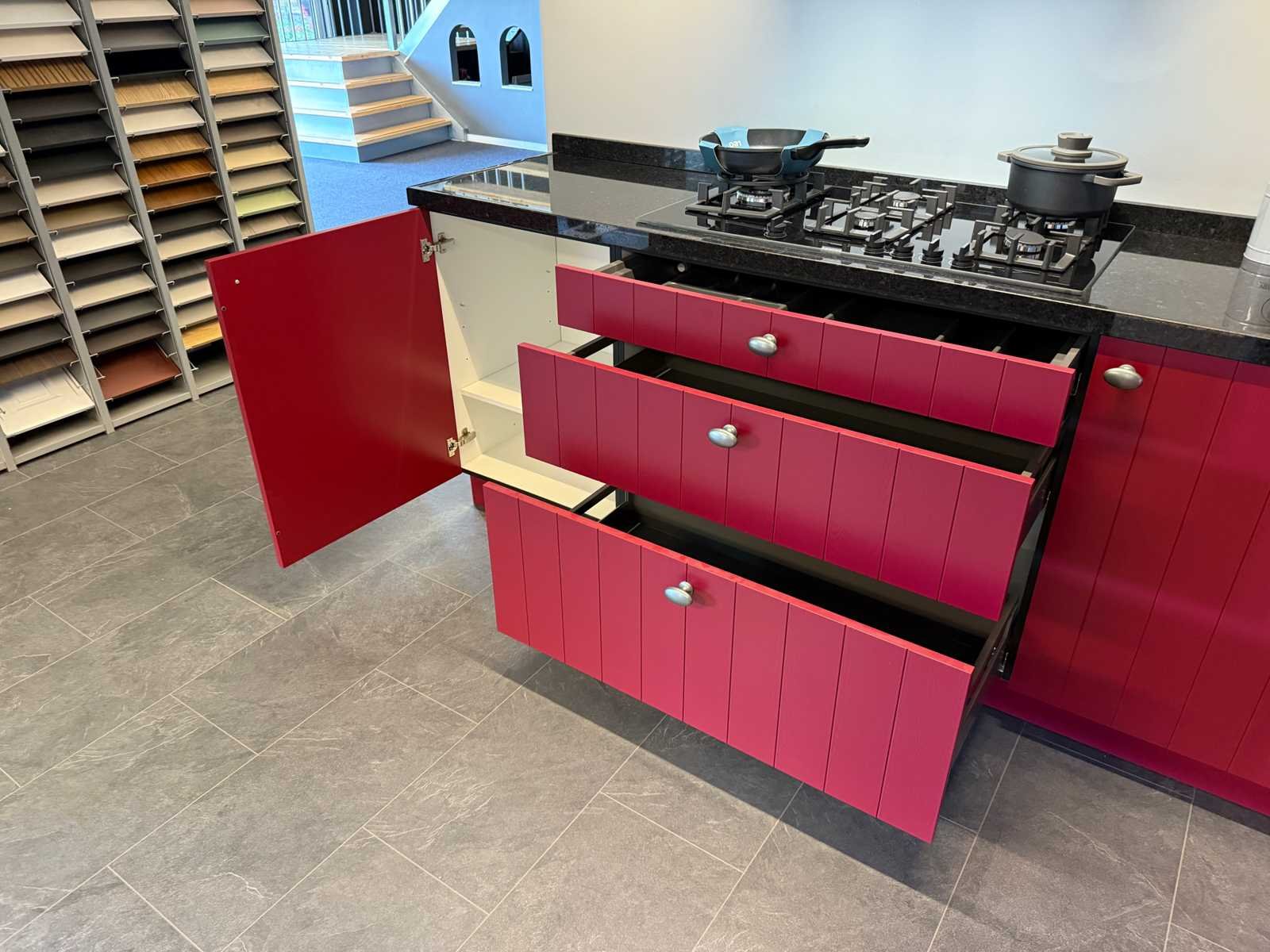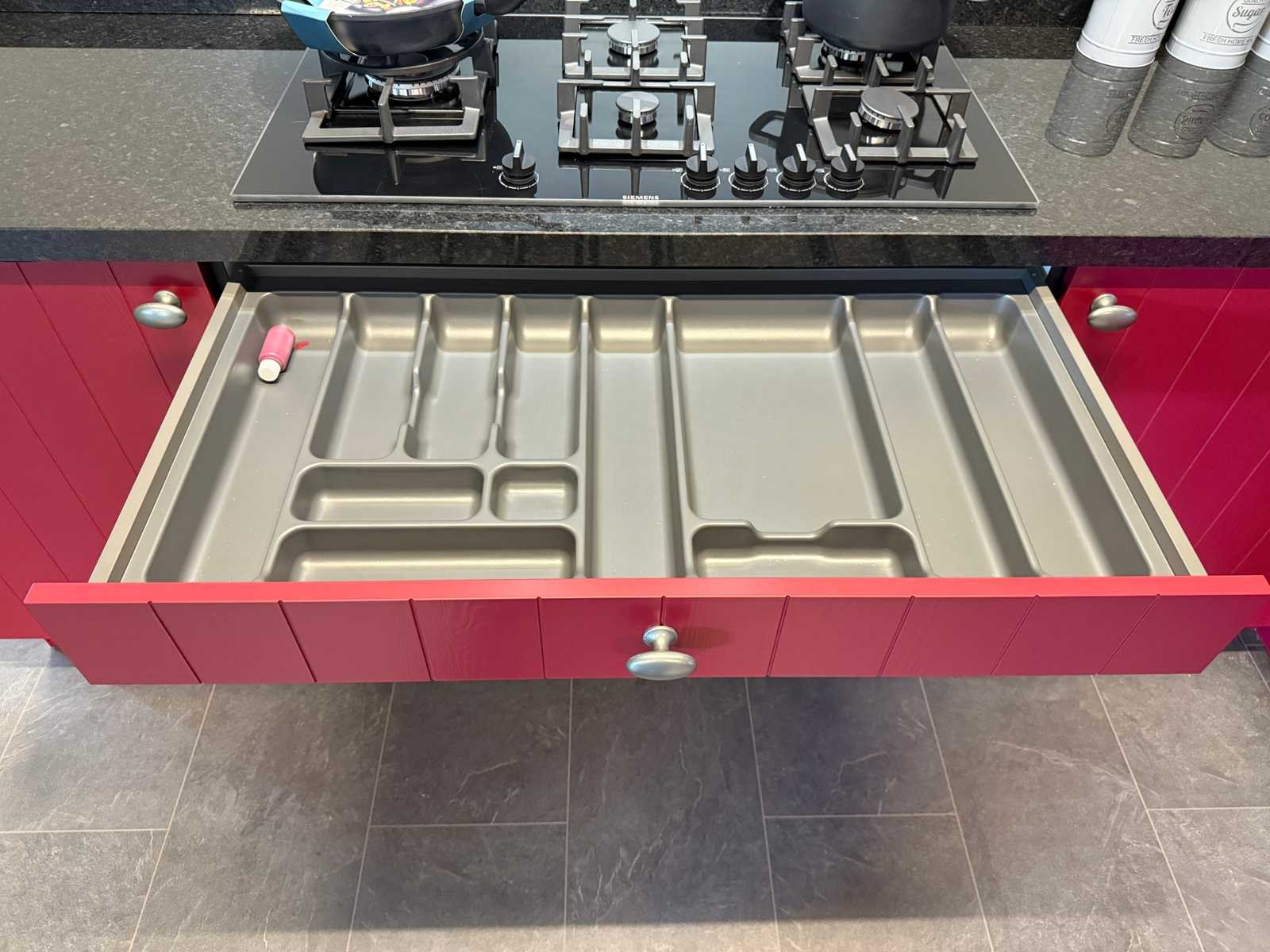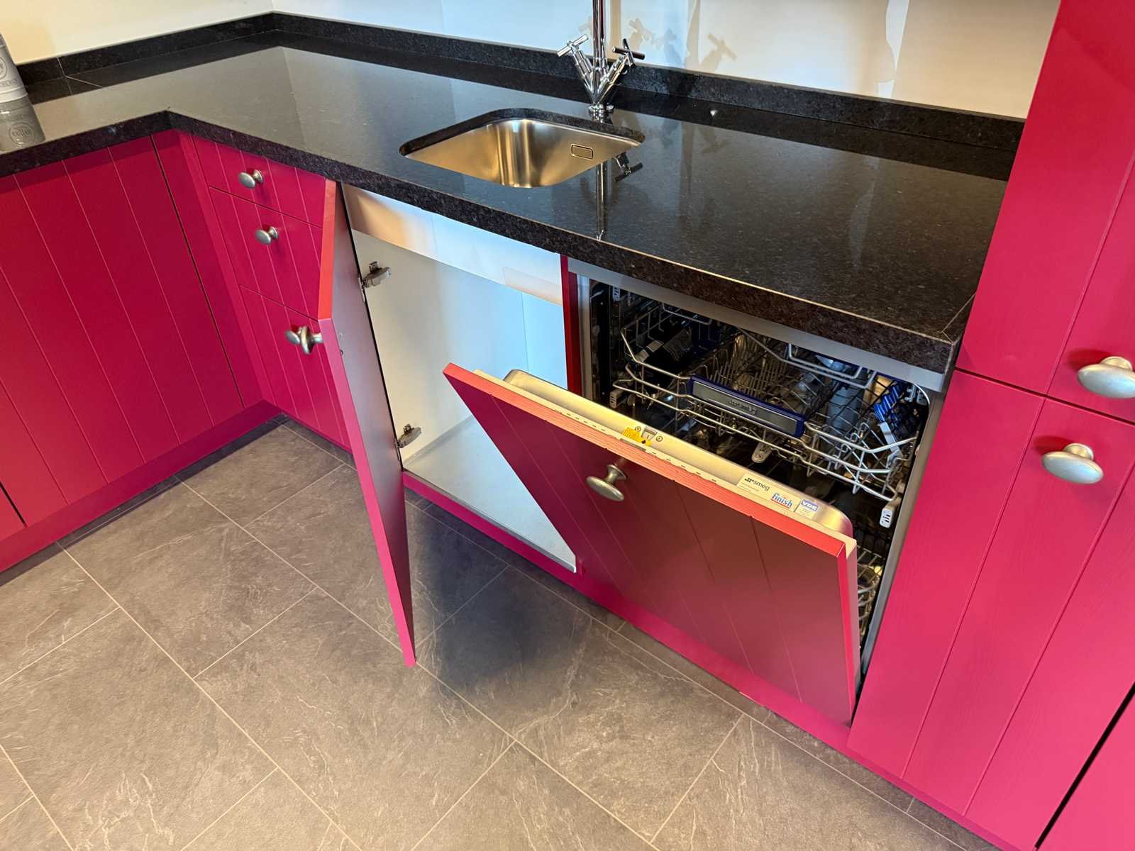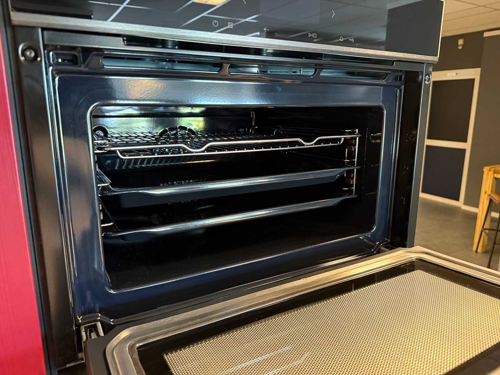 Afmetingen linkerdeel circa 296x60x96 cm; afmetingen rechterdeel circa 325x60x221 cm; let op zonder spatrand; reeds gedemonteerd en ingepakt op pallets. (afstapelen, omruilen of statiegeld per pallet); pallets zijn niet inbegrepen; statiegeld betalen bij afhalen, of pallets afstapelen; werkblad niet ingepakt op pallets (25-KHR-01436) Nee Merk: Keller Type keukenopstelling: Hoek Kraan: Ja Gootsteen: Franke Aanrechtblad: Graniet Magnetron: Siemens Studioline CM924G1B1/D9 Fornuis: Siemens EP9A6SC90N Koelkast: Siemens Studioline KI31RSD30 Softclose: true Afzuigkap: Siemens LC96QBM50 Vaatwasser: Smeg STL323BL Kleur: Rood eiken gebeitst