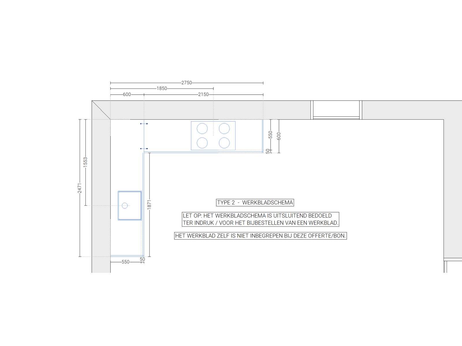 Keuken ongebruikt in doos; afmetingen linkerdeel circa 246,6x60x90 cm; afmetingen 336,6x60x211,5 cm; zonder werkblad, apparatuur en plinten. Nee Merk: Brigitte Type keukenopstelling: Hoek
