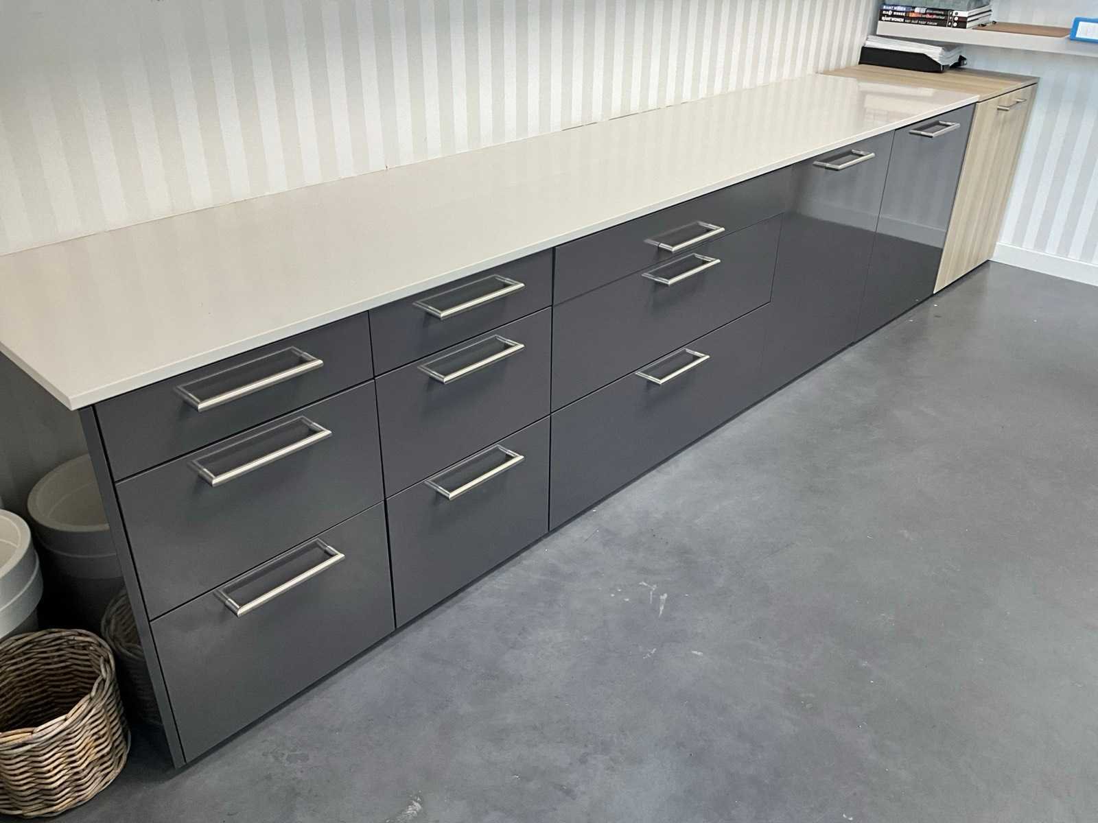Reeds gedemonteerd en ingepakt op pallets. (afstapelen, omruilen of statiegeld per pallet); pallets zijn niet inbegrepen; statiegeld betalen bij afhalen, of pallets afstapelen; werkblad niet ingepakt op pallets (25-GZA-052) Nee Merk: Pronorm Lengte: 367cm Breedte: 62cm Hoogte: 75cm