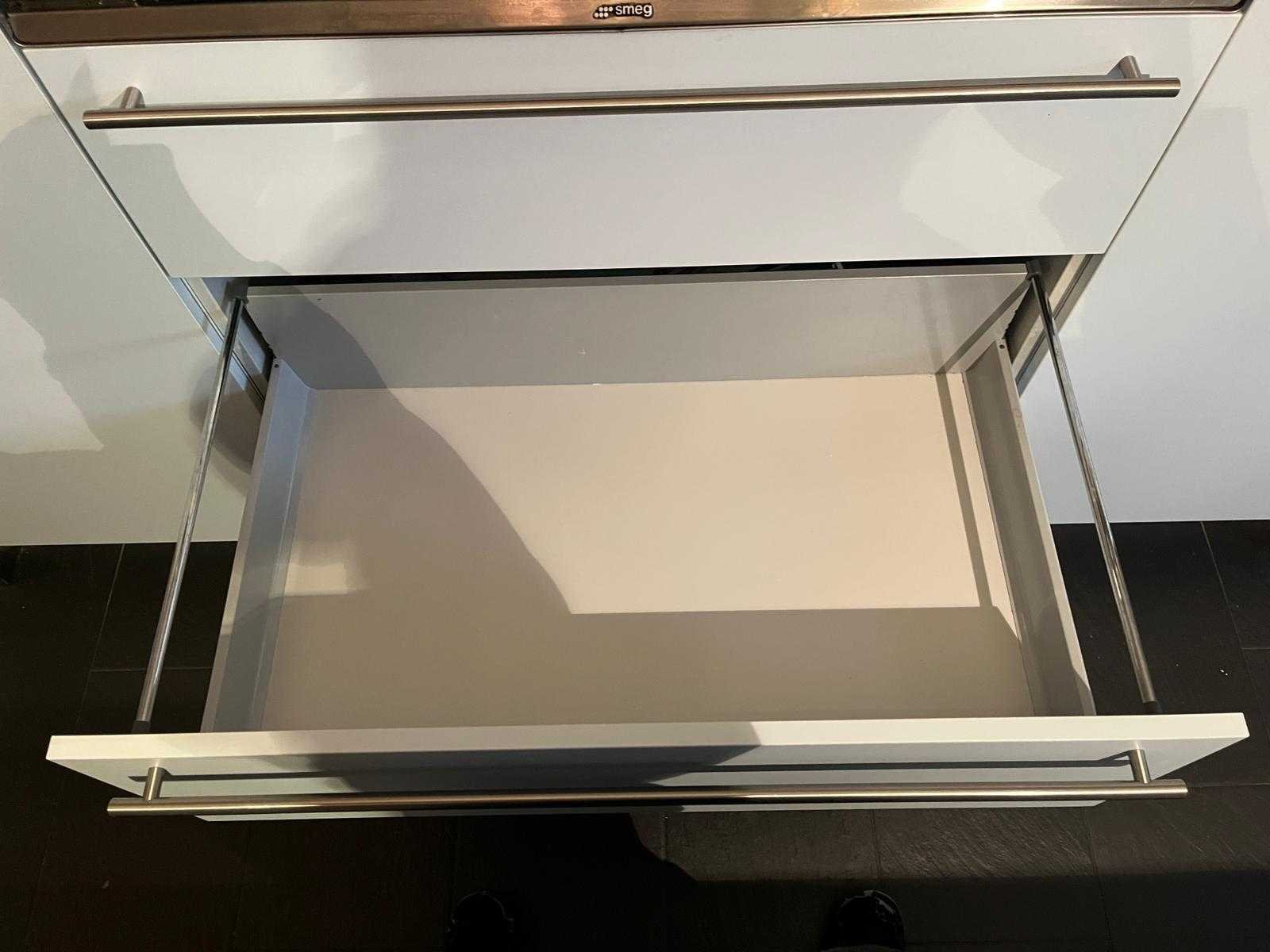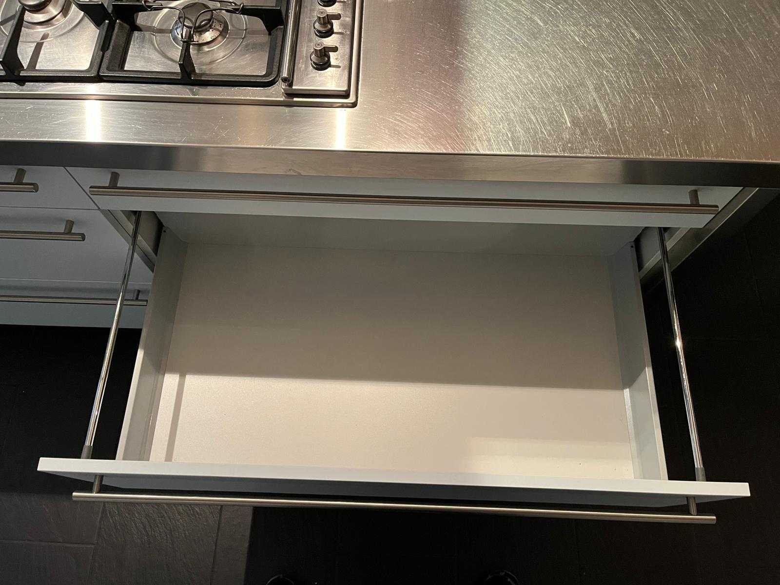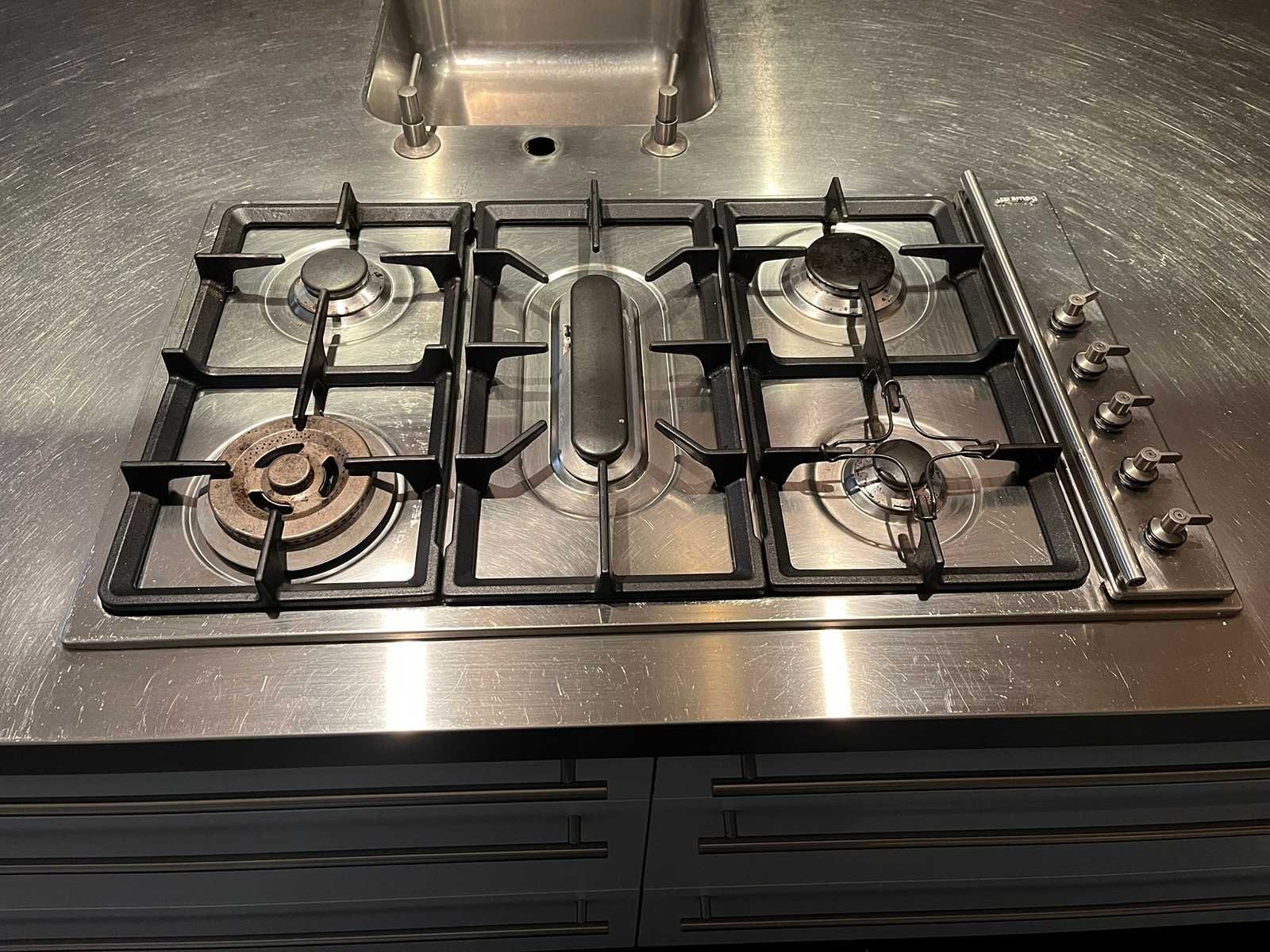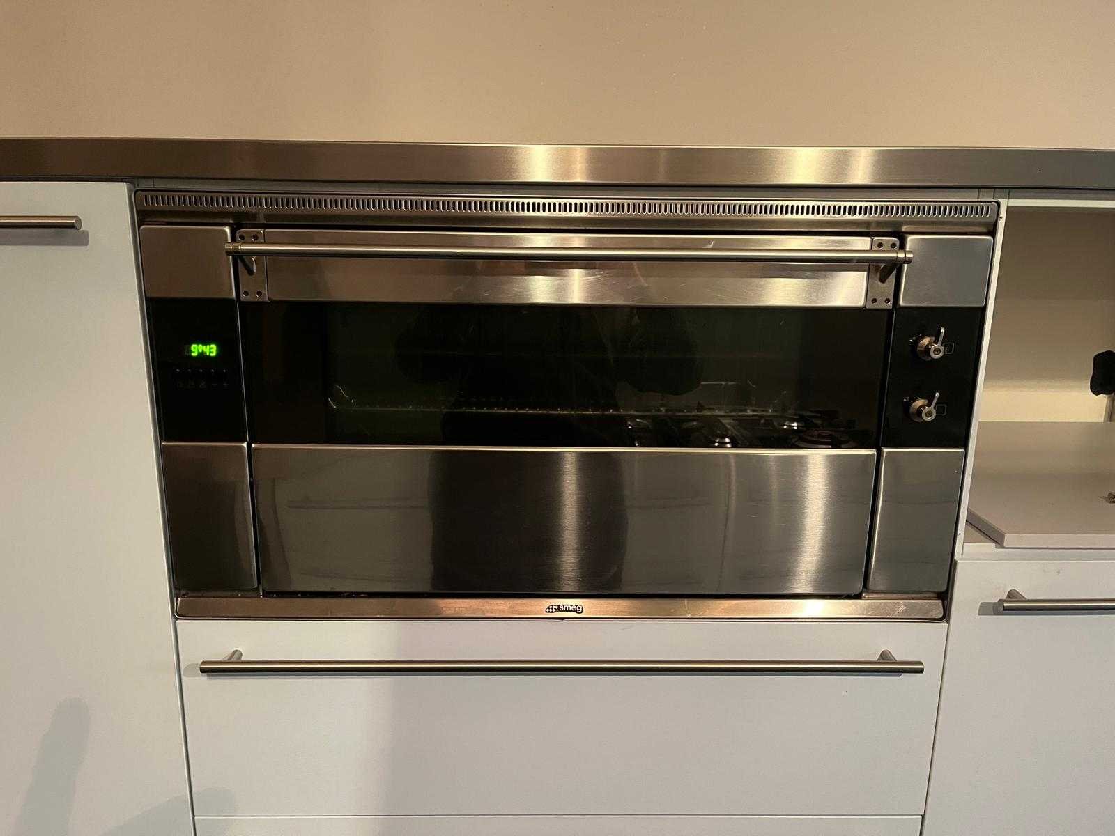 Conditie gebruikt; Zonder kraan en barkrukken; Afmetingen hoge kasten lxbxh ca. 218x60x120 cm; afmetingen eiland lxb ca. 277x120 cm; Reeds gedemonteerd en ingepakt op pallets. (afstapelen, omruilen of statiegeld per pallet); pallets zijn niet inbegrepen; statiegeld betalen bij afhalen, of pallets afstapelen; werkblad niet ingepakt op pallets Nee Type keukenopstelling: Recht + eiland Kraan: Niet aanwezig Aanrechtblad: zilver aluminium Fornuis: Smeg Koelkast: Liebherr Vriezer: Liebherr Softclose: true Oven: Smeg Afzuigkap: Gutmann Vaatwasser: Siemens Hoofdkleur: Licht blauw