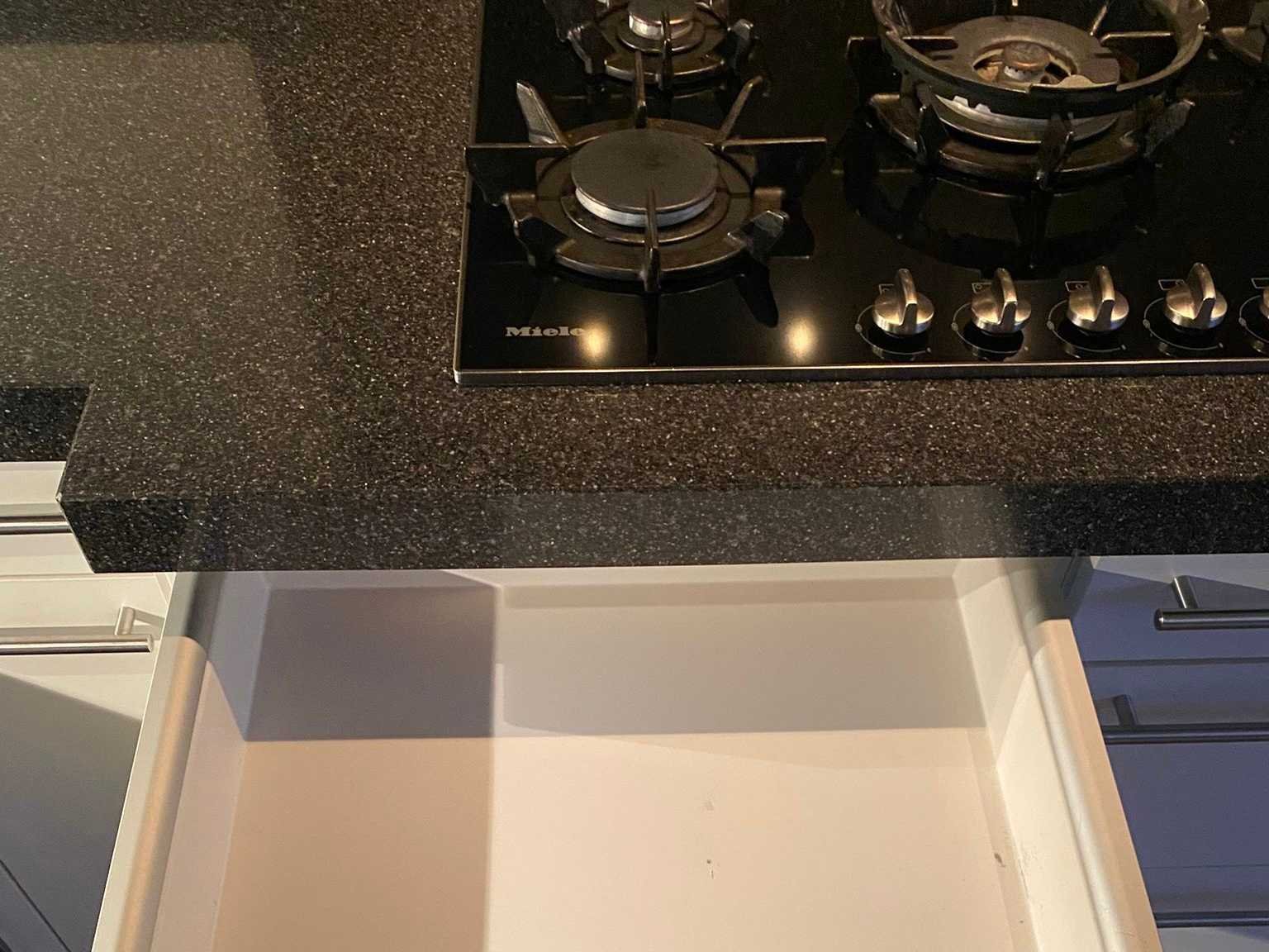 Conditie gebruikt; afmetingen bij benadering linkerdeel (schiereiland) lxb ca. 200x100 cm; afmetingen rechte deel (tussenstuk) bij benadering lxb ca. 120x60 cm; afmetingen rechter deel bij benadering lxb ca. 410x60 cm; Ingepakt op 3 pallets; Reeds gedemonteerd en ingepakt op pallets. (afstapelen, omruilen of statiegeld per pallet); Pallets zijn niet inbegrepen; statiegeld betalen bij afhalen, of pallets afstapelen; werkblad niet ingepakt op pallets Nee Merk: Siematic Type keukenopstelling: U- keuken Kraan: Aanwezig Gootsteen: Aanwezig Aanrechtblad: Steen zwart Fornuis: Miele Koelkast: Bosch Softclose: true Oven: Pelgrim Afzuigkap: Siemens Vaatwasser: Bosch Hoofdkleur: Wit