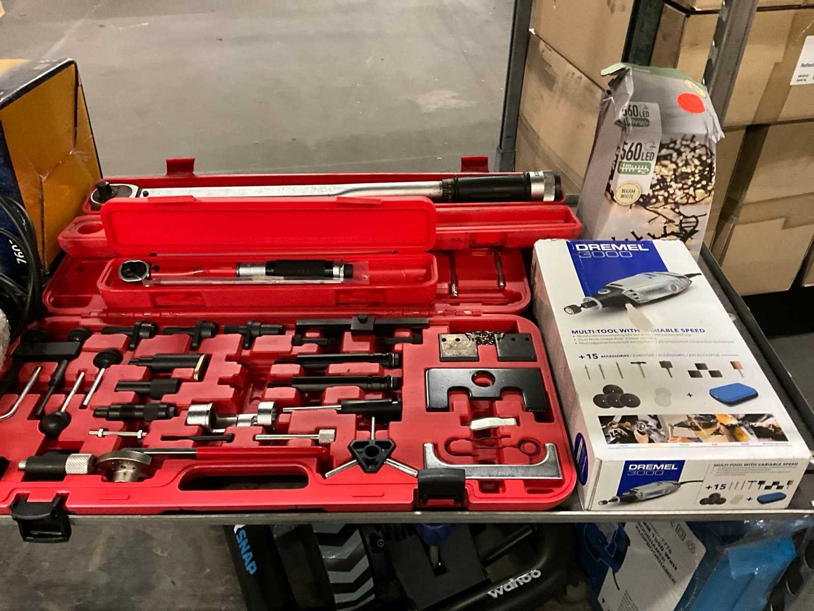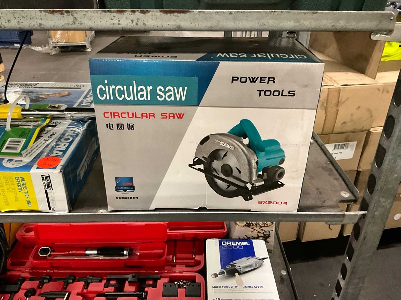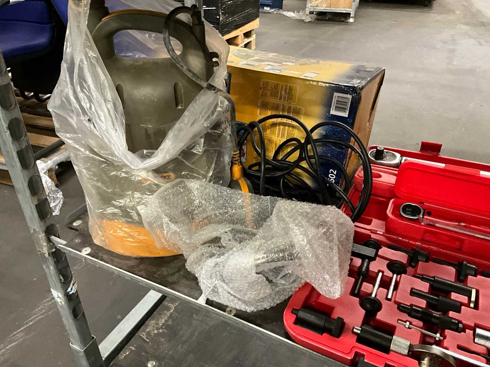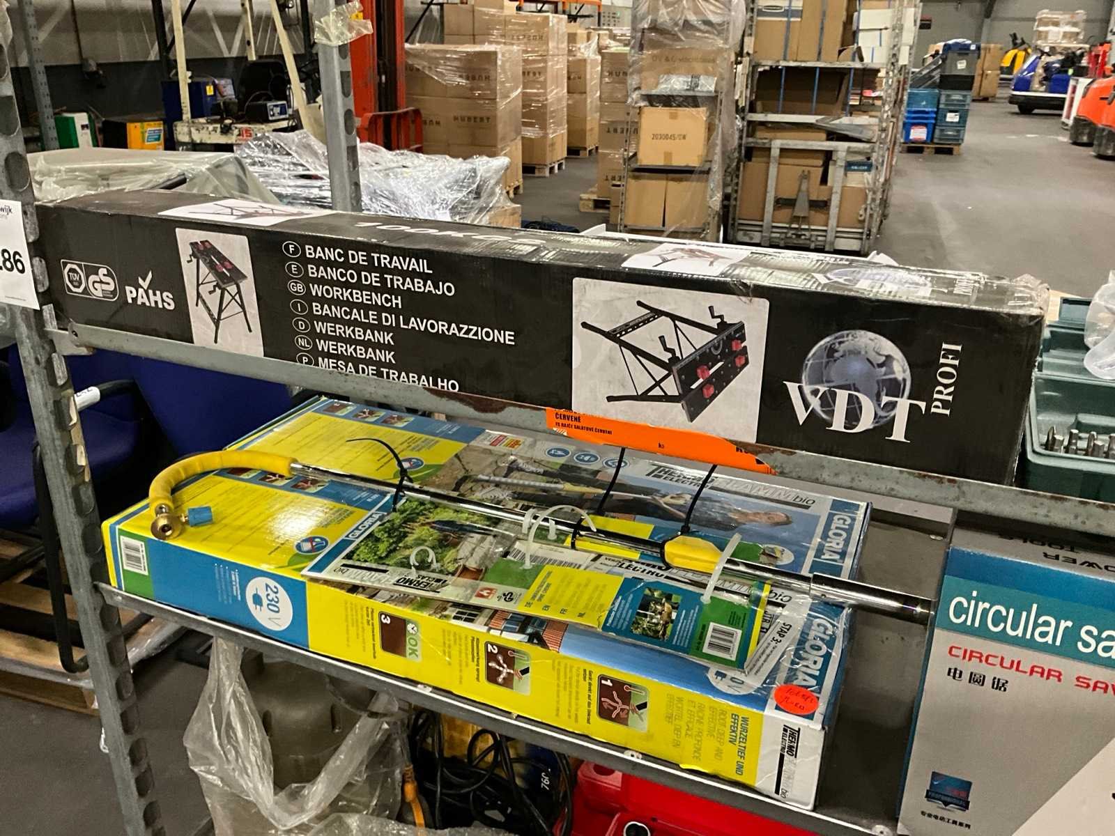Waaronder: VDT werkbank, Ideal papiersnijder, bits, PowerTools BX2004 cirkelzaag, etc; Deense kar niet inbegrepen Nee