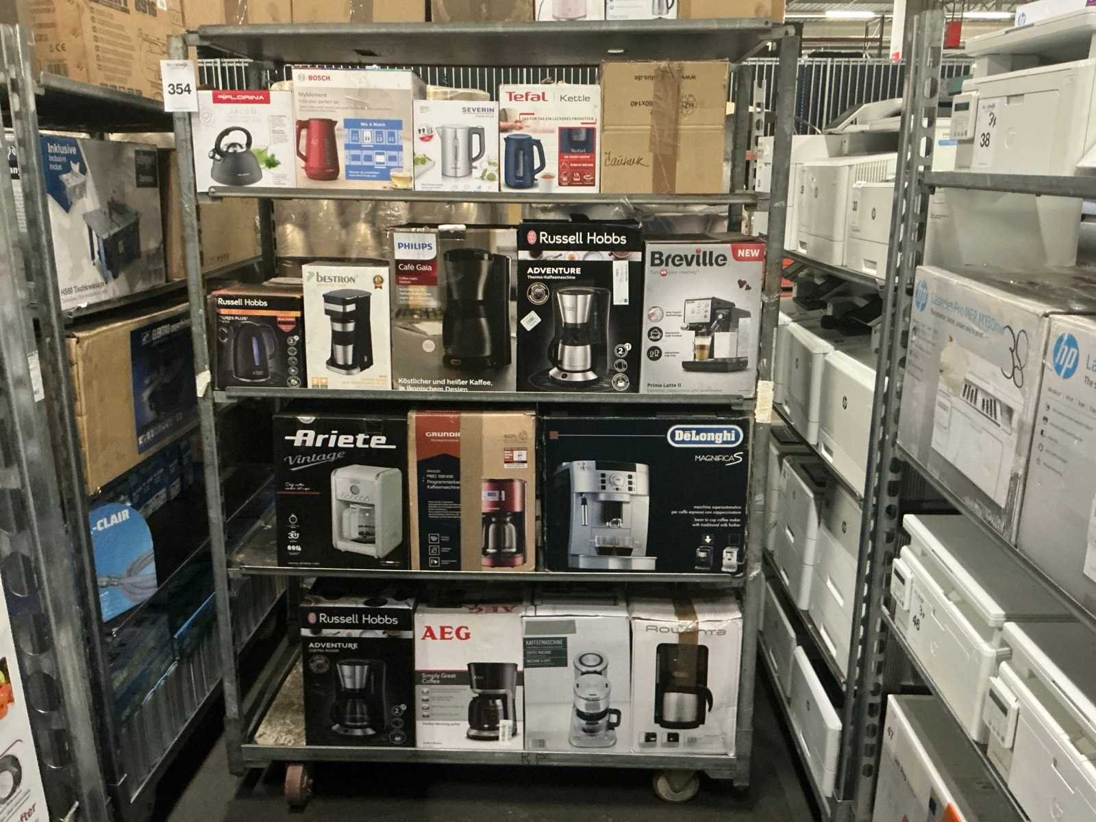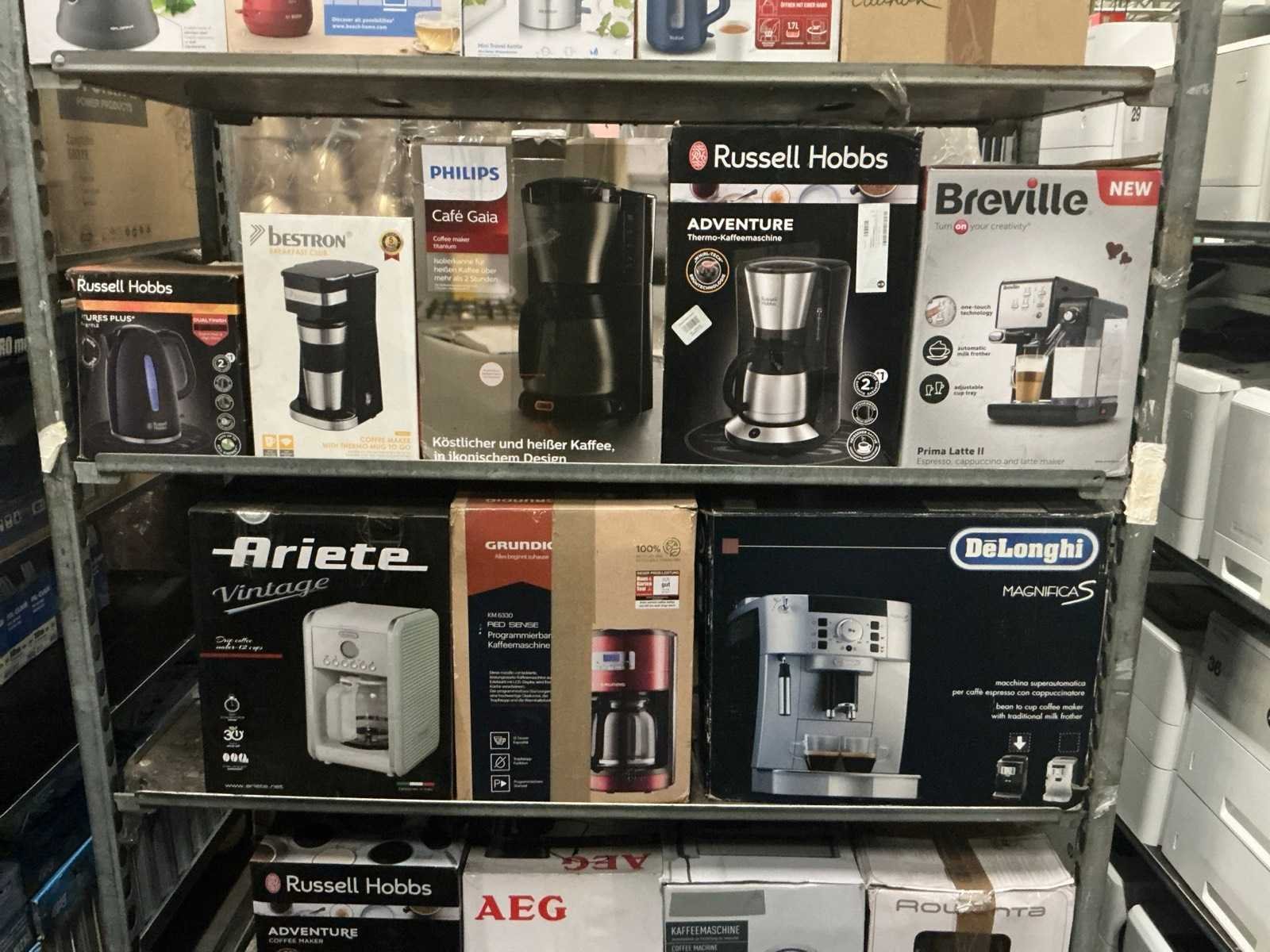 Waaronder: Waterkokers, koffiezetapparaten. Dit kavel betreft retourgoed; mogelijk ontbreken er onderdelen of zijn deze beschadigd. Nee