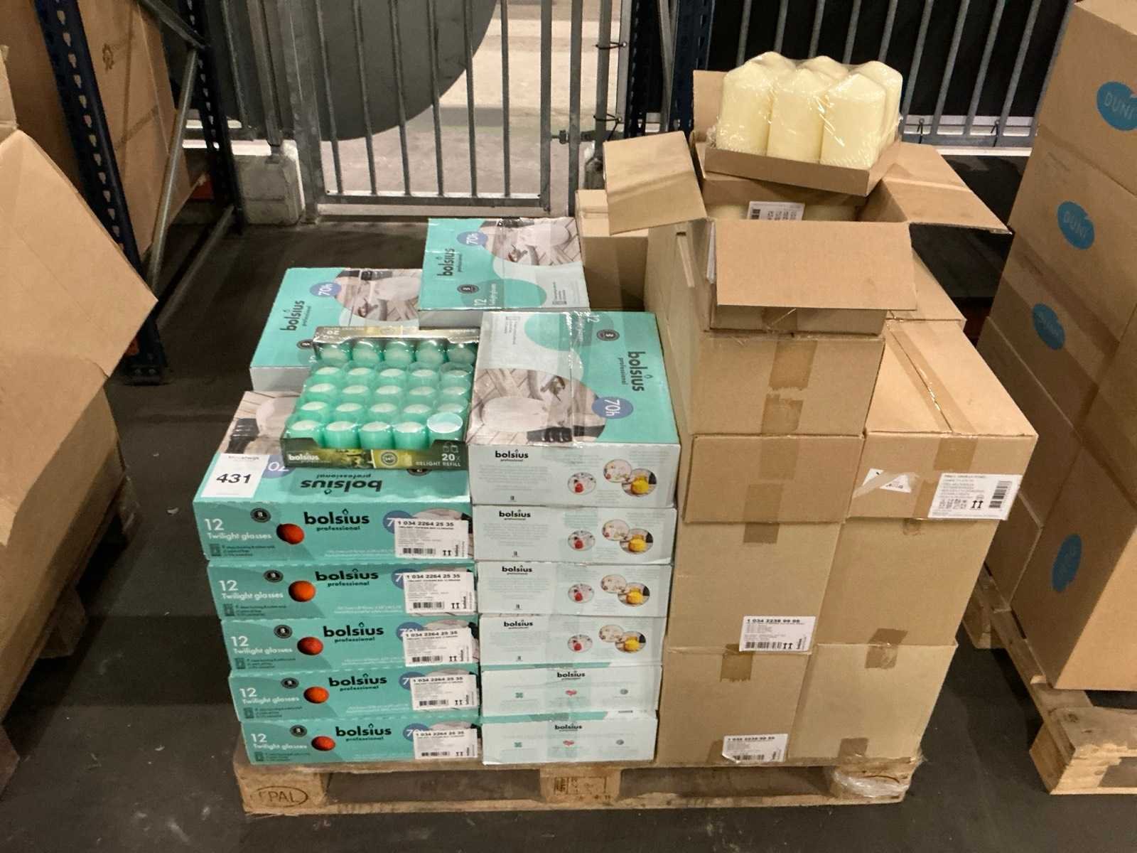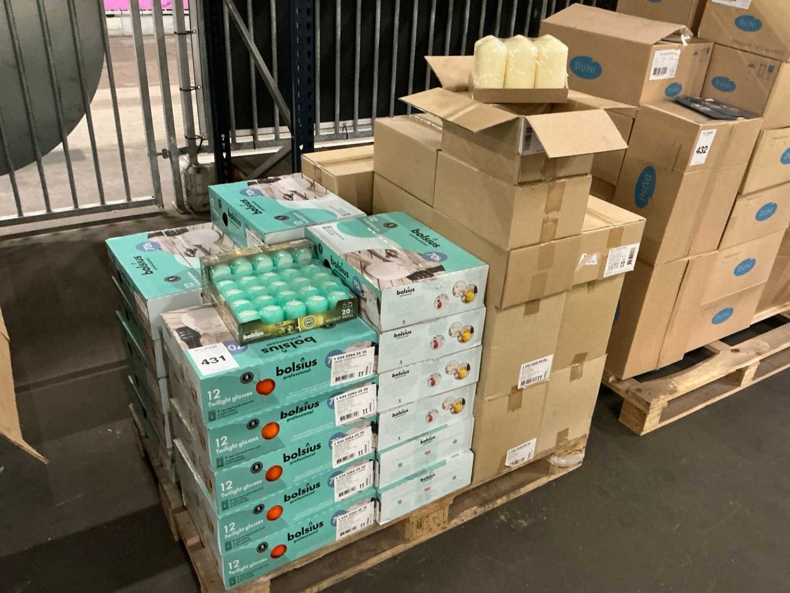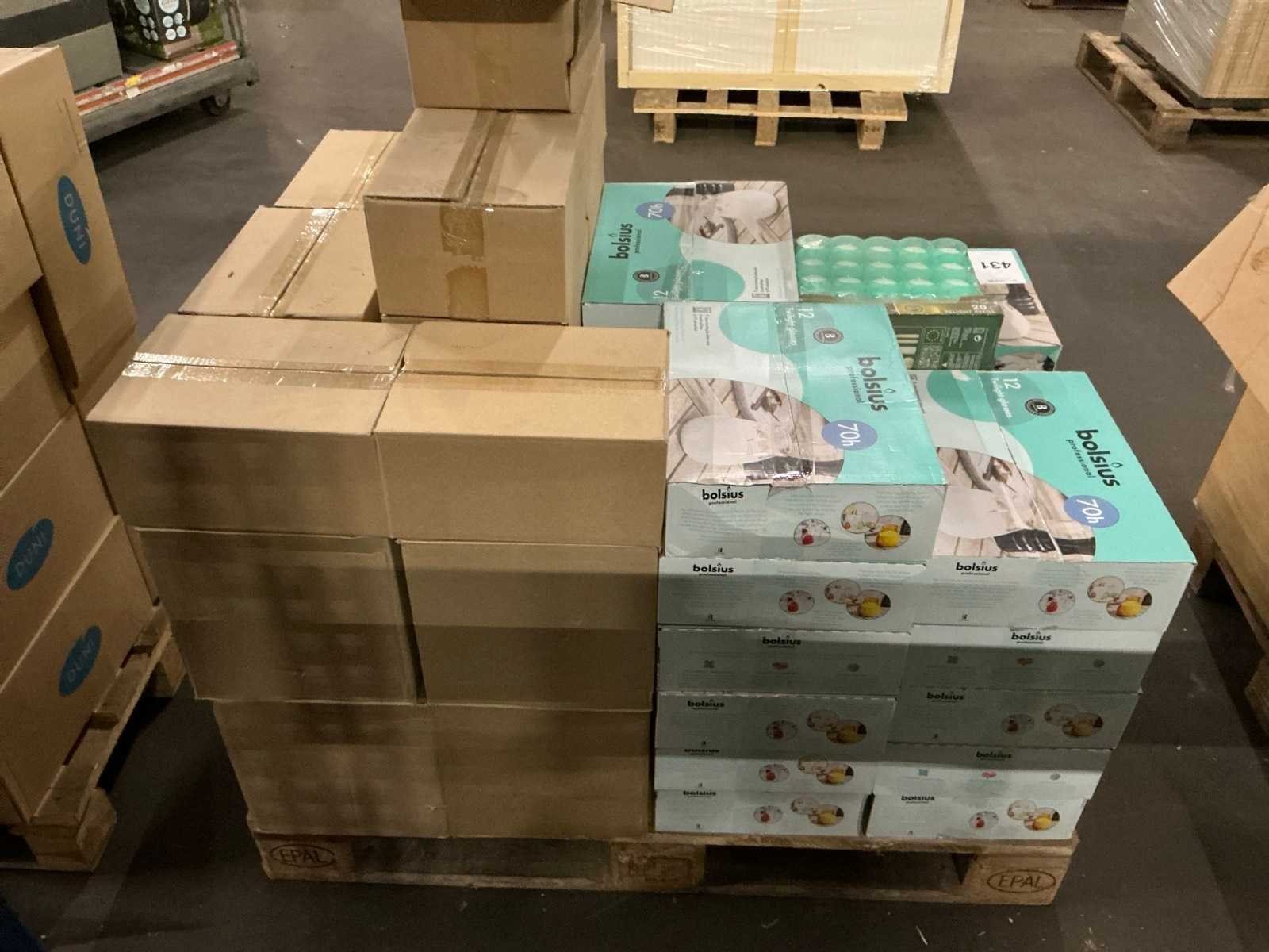 Ca 40 dozen met inhoud waaronder kaars met glas en stompkaarsen Nee