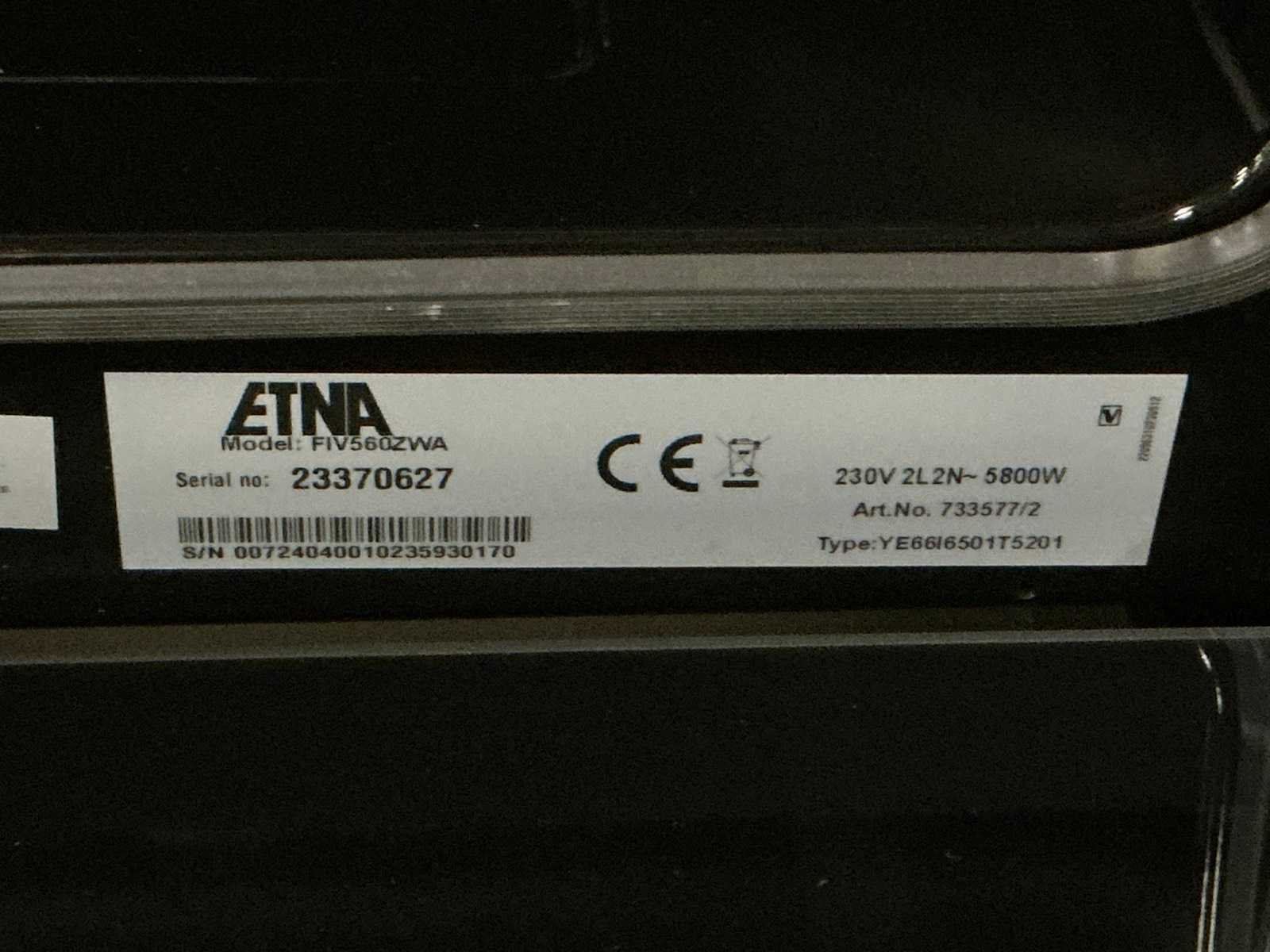 Voorzien van 4-pits inductiekookplaat en oven; 5800W-400V Nee Merk: ETNA Model: FIV560ZWA Product type: Inductieplaat met oven Kleur: Zwart Lengte: 660mm Breedte: 600mm Hoogte: 900mm