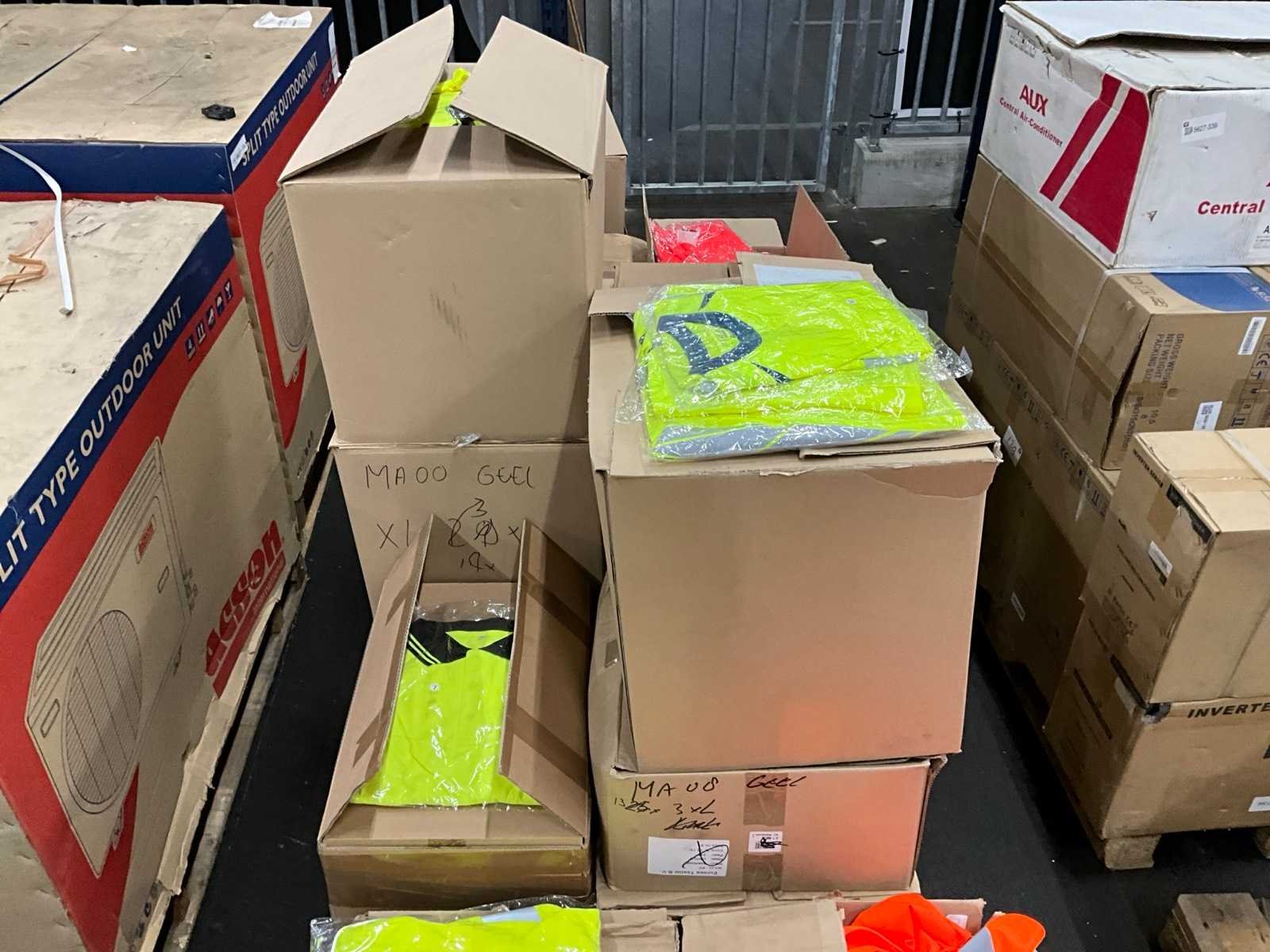 Op 3 pallets; bestaande uit diverse maten en soorten waaronder: Mascot L veiligheidsshirt, Mascot workwear 3XL, etc Nee