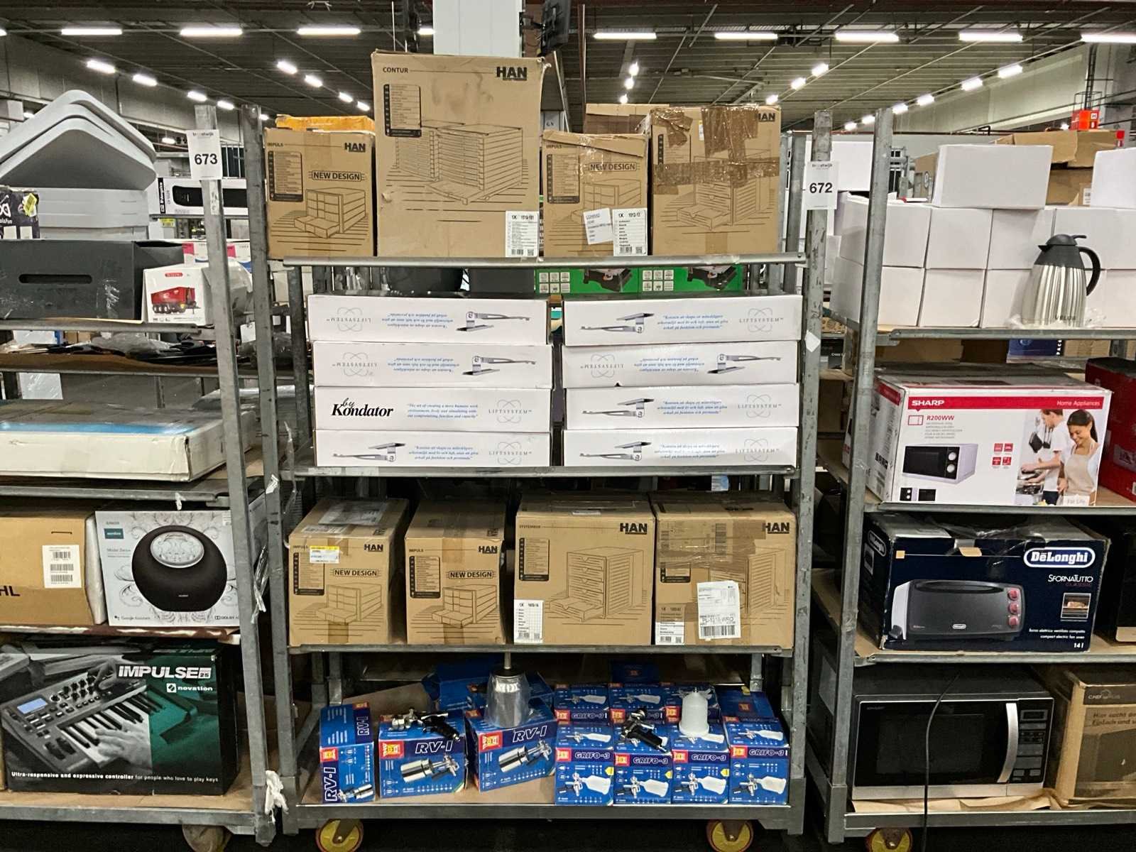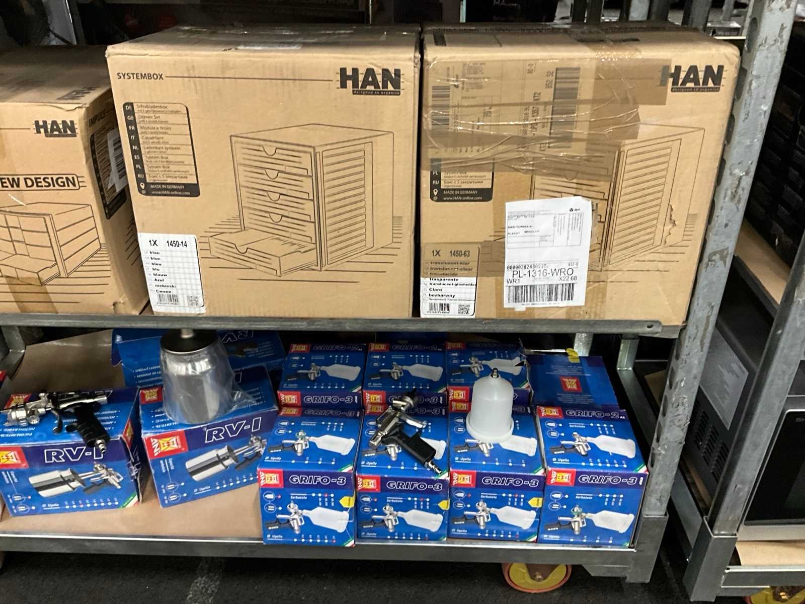 Partij kantoorartikelen en spuitpistolen retourgoederen