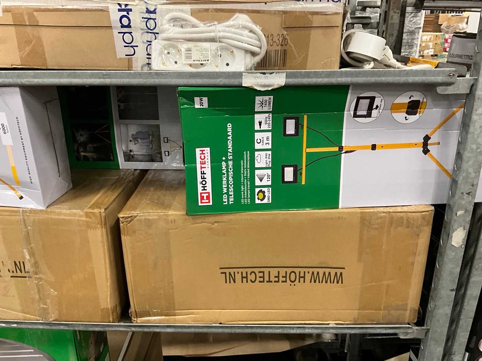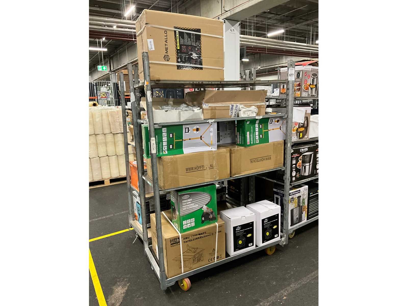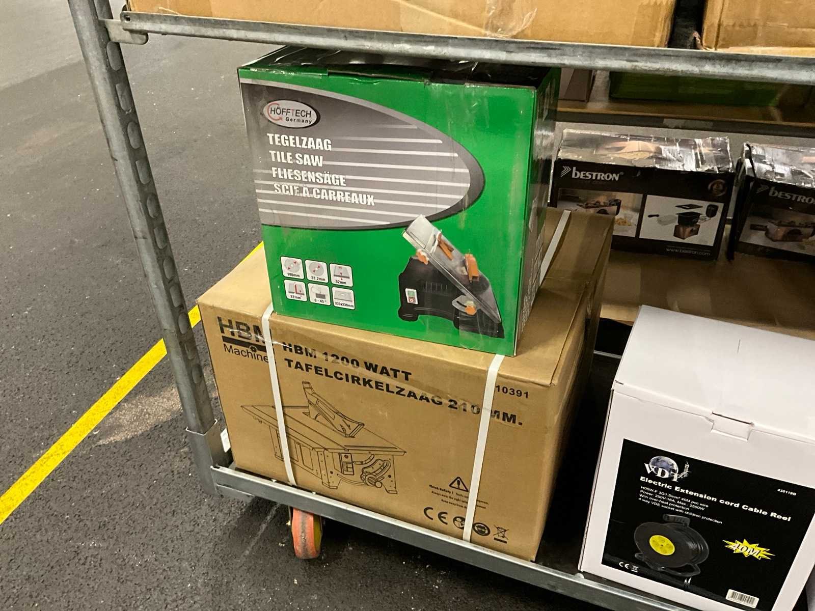 Waaronder: Metallo 202 pieces toolset, bevestigingsmateriaal, stekkerdozen, LED werklampen op standaard, Hofftech tegelzaag, VDT kabelhaspel, etc; Deense kar niet inbegrepen Nee