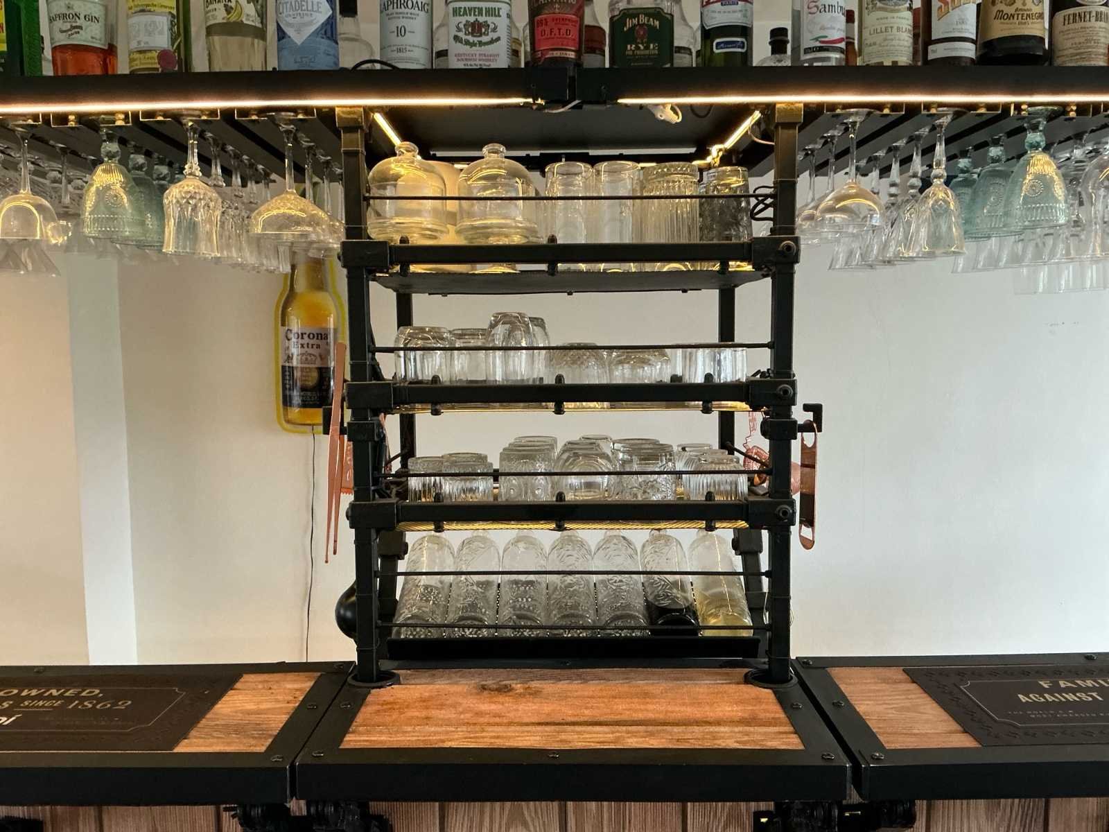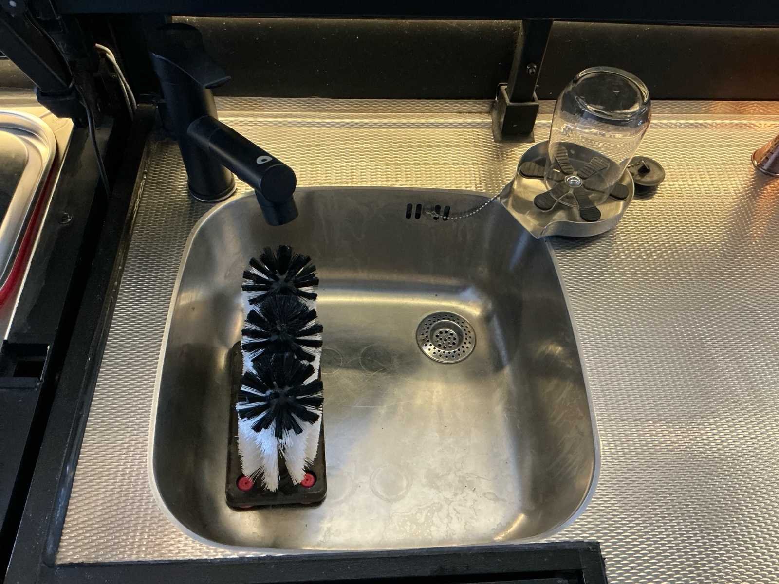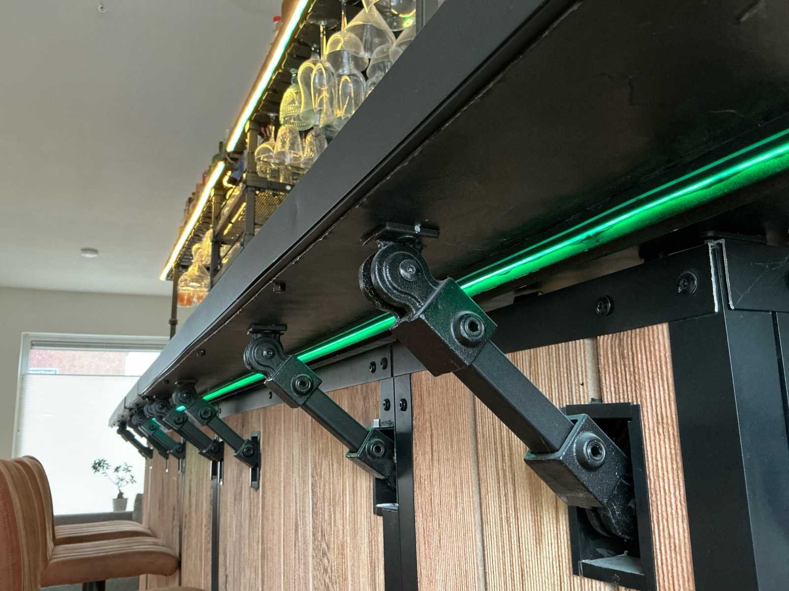 Bestaat uit: Volledig nieuwe professionele mobiele cocktailbar, Custom made constructie, volledig opgebouwd uit duurzame aluminium traanplaat en zwart gepoedercoat stalen frame, mobiel & flexibel: staat op wielen en is in slechts 6 delen snel af te breken, grootste deel is 1,2 m x 0,7 m – past door elke deurpost (≥ 80 cm) en in vrijwel elke lift, makkelijk te vervoeren in een bus en razendsnel op én af te bouwen op locatie, volledig uitgerust voor professioneel gebruik, tafelmodel vrieskast (ideaal voor ijsopslag), tafelmodel koelkast, RVS werkblad, wasbak met afvoer, mengkraan met warm/koud water + interne warmwaterboiler, glazenspoelunit + glazenschrobber, 2 speedrails (dranken & likeuren/siropen), flessen- en glazenopslag, glazen met voet bovenzijde, glazen zonder voet centraal, geïsoleerde gastronorm bakken met waterafvoer, 2× voor ijs (met deksel), 1 grote GN-bak voor gekoelde opslag (bijv. likeuren of garnituur), slim ontworpen werkplek, volledig grijswatersysteem, aan te sluiten op riool óf interne 150L opvangtank, werkverlichting (dimbaar) aan en onder het aanrechtblad, voorzijde met twee soorten dimbare verlichting, instelbaar in diverse kleuren (geel, rood, blauw, groen, warm wit, etc.), verlichte opberglades, dumpsystemen met afvalcontainers aan beide zijkanten, aansluitingen & gemak, werkt op enkel koudwateraansluiting en stroompunt, Inclusief: 25m koudwaterhaspel, 25m stroomhaspel, warm water wordt volledig intern voorzien, formaat & capaciteit: opgebouwd: ca. 4 m lang × 1,10 m diep × 2,20 m hoog, afgebroken: hoogste deel 1,2 m, geschikt voor 1 tot 4 barmensen aan de achterkant, wordt geleverd met 8 barkrukken (zoals op foto’s staan er 4, maar je ontvangt er 8!) perfect voor: cocktailcateraars, festival- en eventbedrijven, bruiloftleveranciers, mobiele bartenders, horecaondernemers die flexibiliteit nodig hebben. Nee Merk: Eigenbouw Type: Mobiele Cocktailbar Totale afmeting L: 4000mm Totale afmeting Breedte: 1100mm Totale afmeting Hoogte: 2200mm