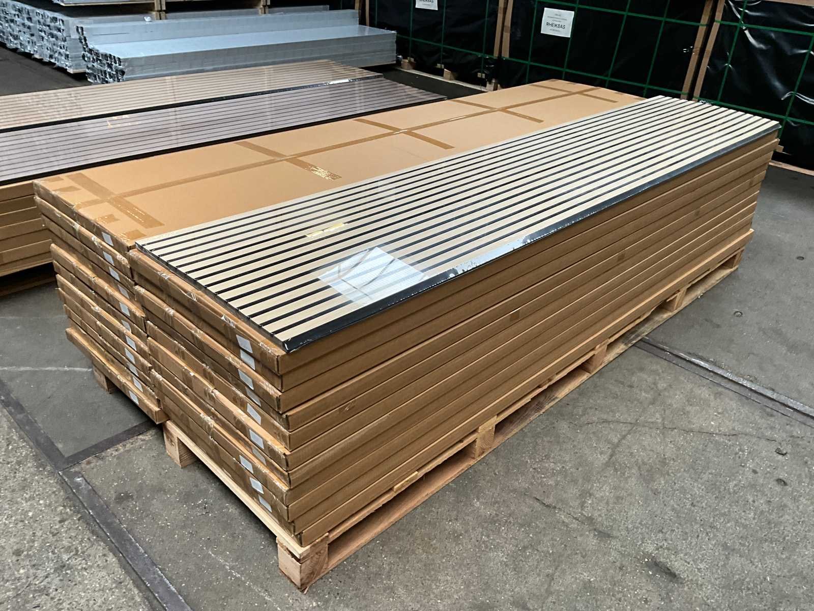 Bestaande uit totaal 22 dozen (2 stuks per doos); ongebruikt in verpakking Nee Merk: Akupanel Model: Eiken Lengte: 280cm Breedte: 60cm