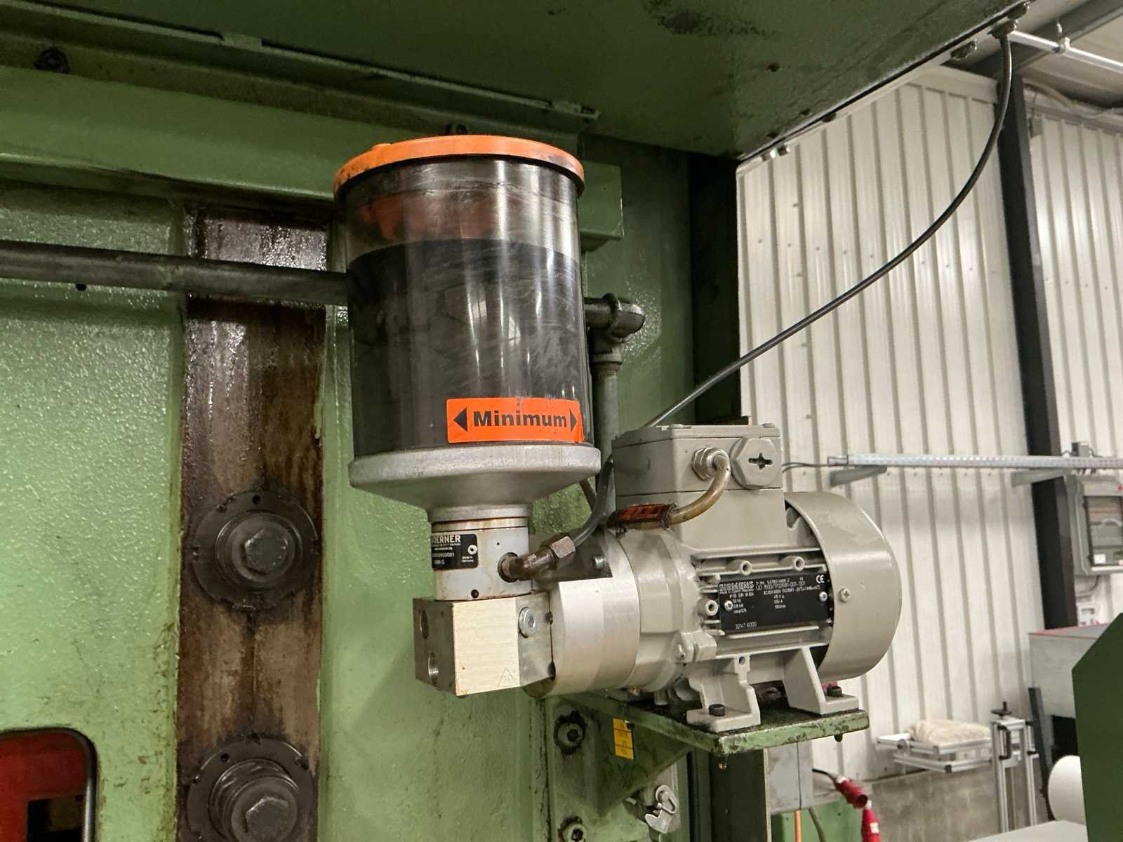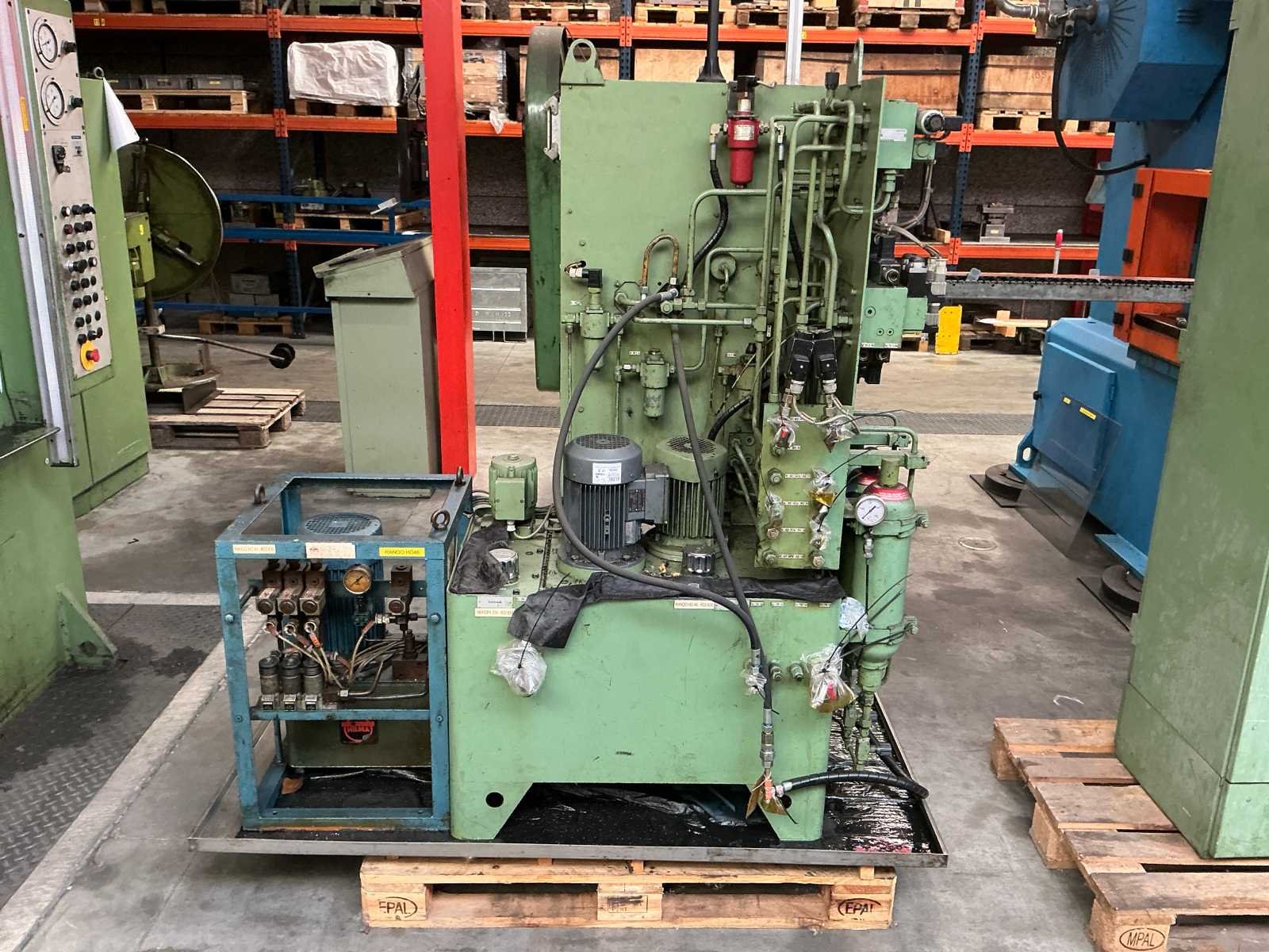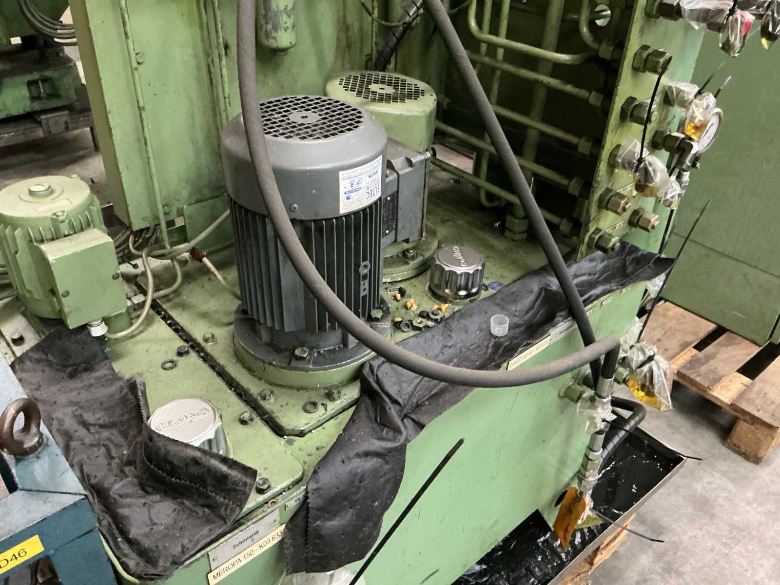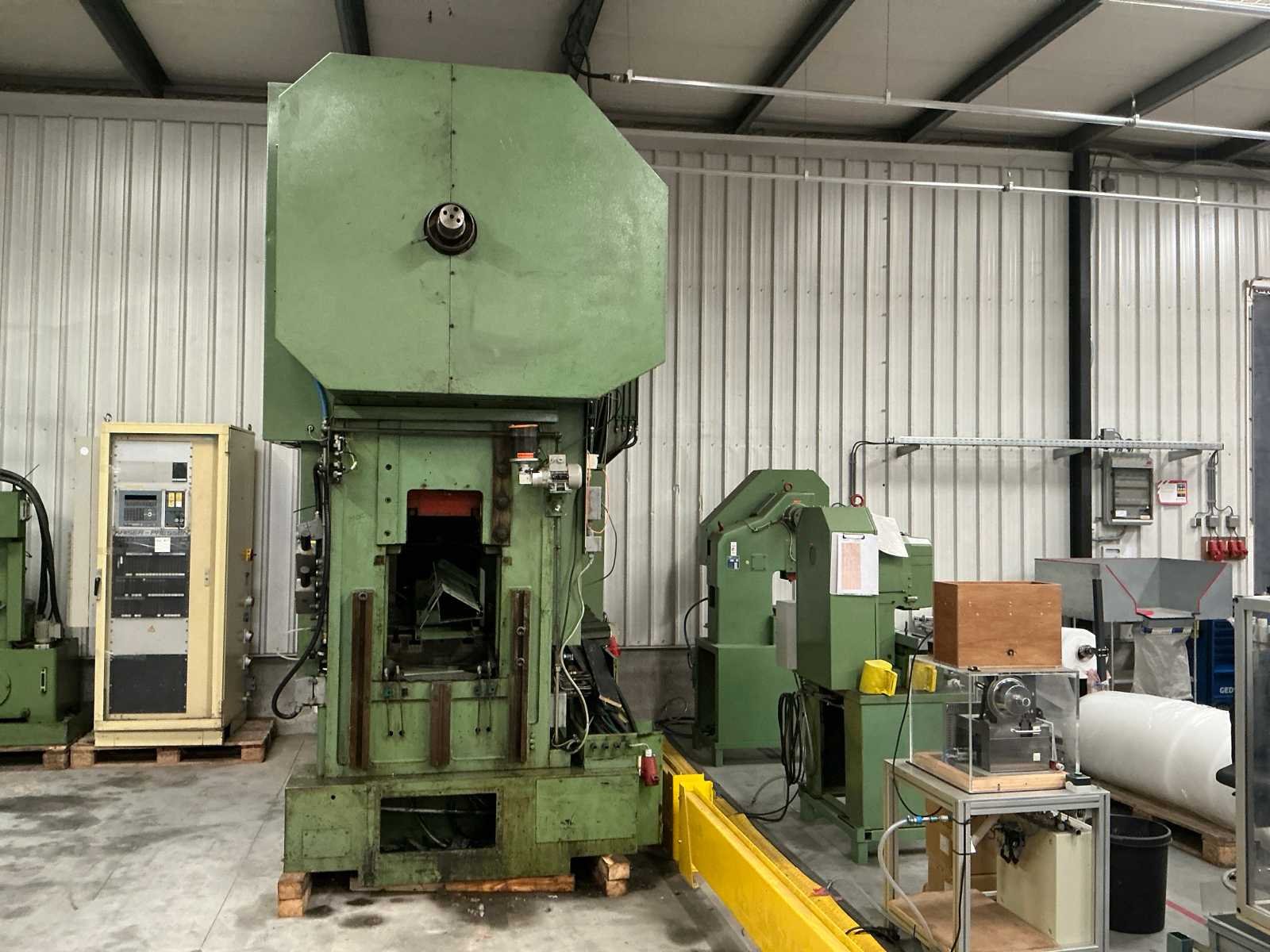 Voorzien van: slag 20-120mm, ruimte tussen kolommen 1500mm, tafelmaat 1420x900, tafelhoogte 890, No Merk: Kaiser Type: 160 T Bouwjaar: 1990 Serienummer: 131143 Capaciteit.: 160t Aansluiting: 400V Machinegewicht: 25000kg Afmeting l: 3500mm Afmeting b: 2200mm Afmeting h: 4000mm