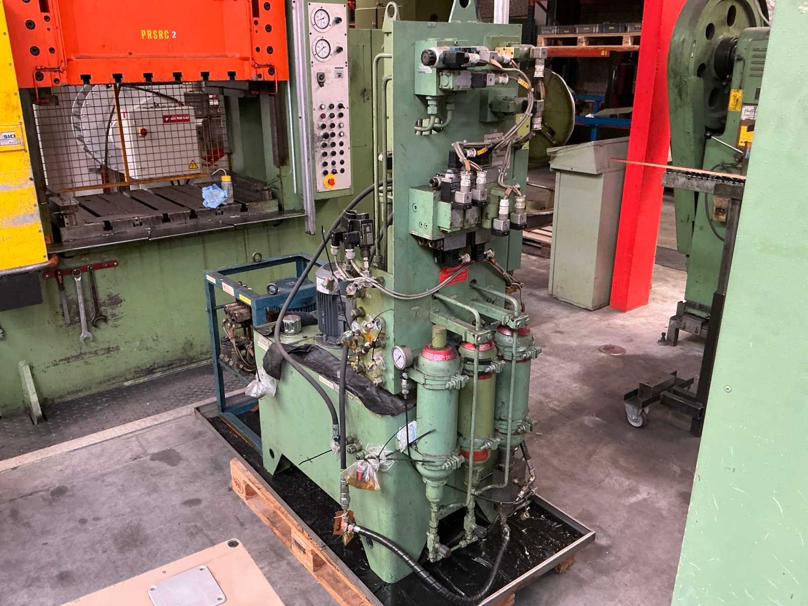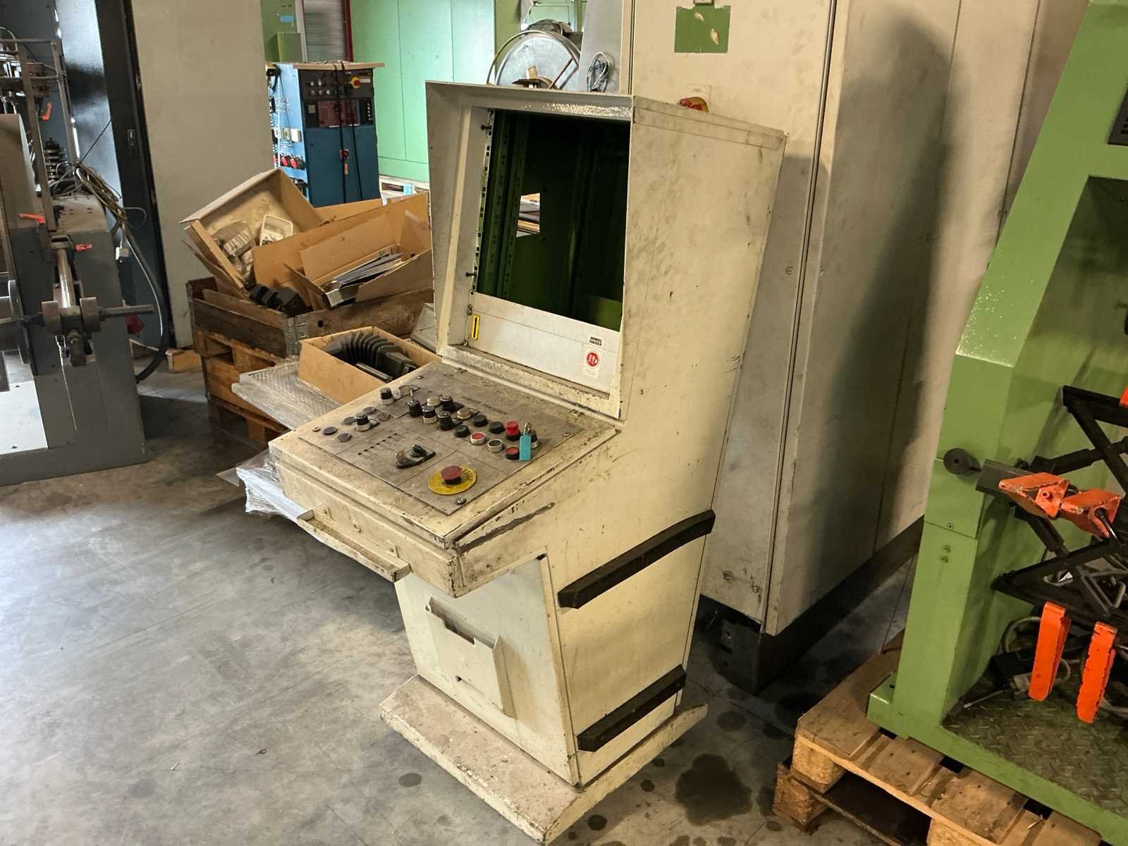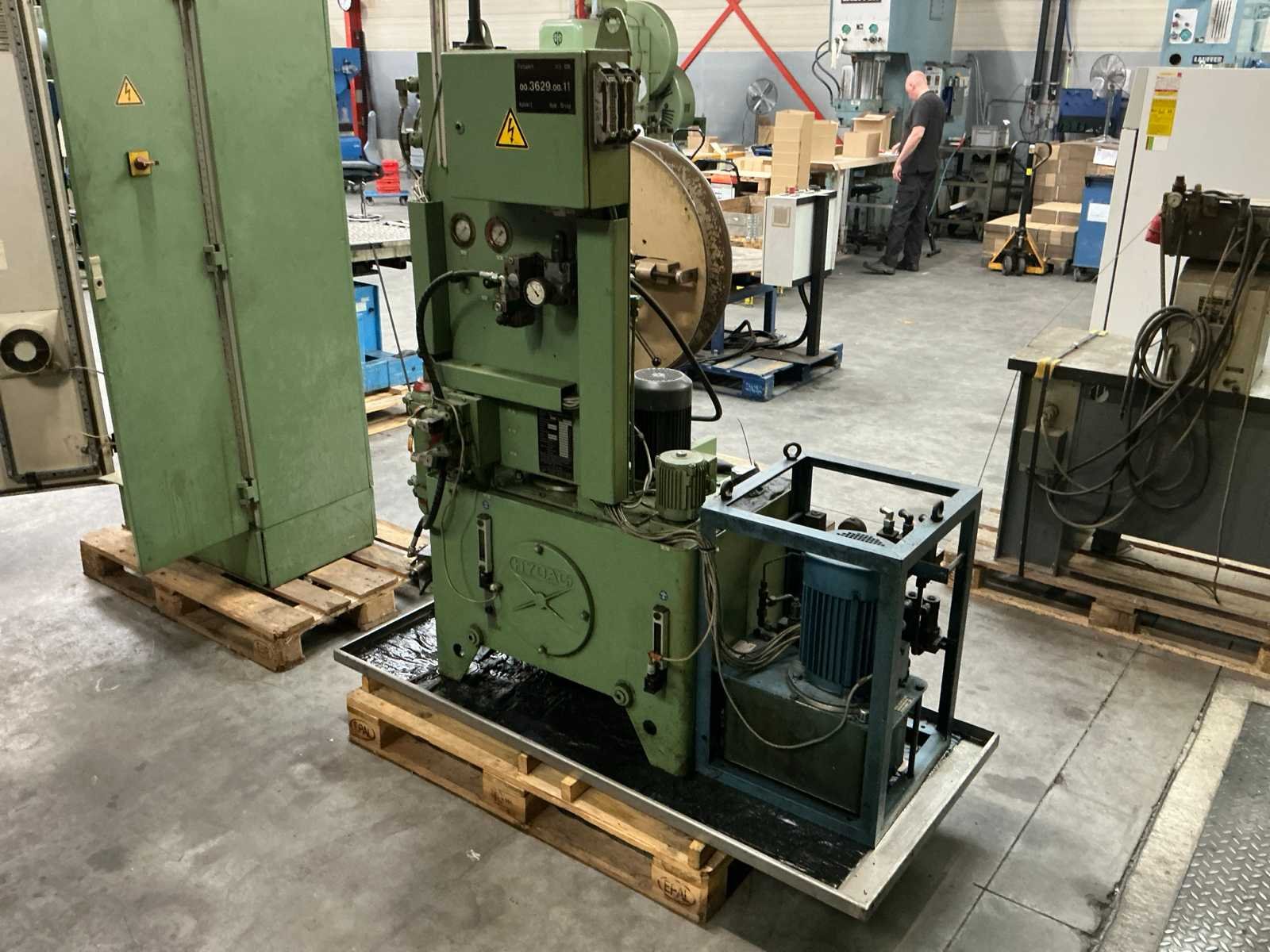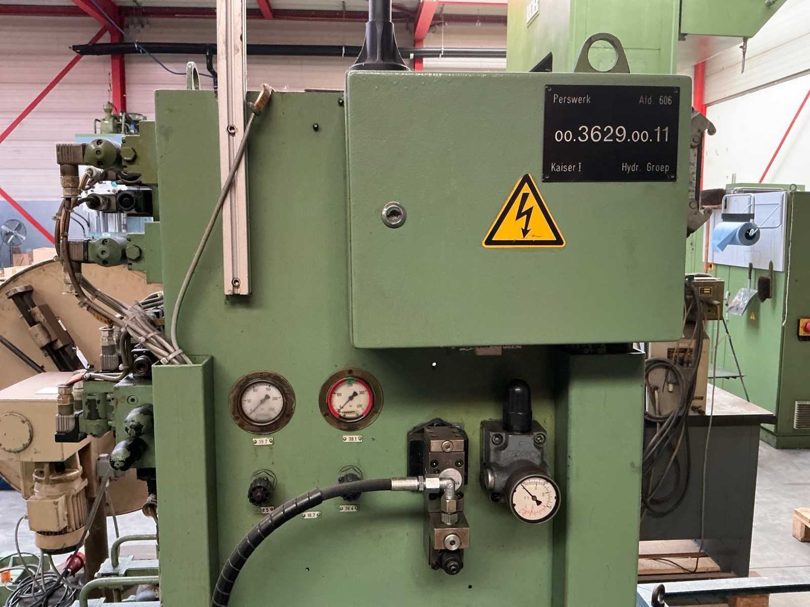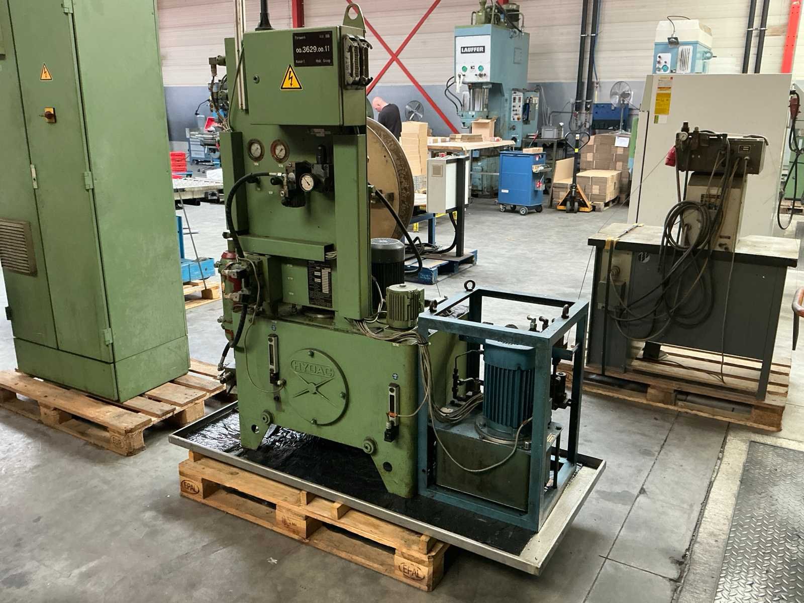 Voorzien van: slag 20-120mm, ruimte tussen kolommen 1500mm, tafelmaat 1420x900, tafelhoogte 890, No Merk: Kaiser Type: 160 T Bouwjaar: 1990 Serienummer: 131143 Capaciteit.: 160t Aansluiting: 400V Machinegewicht: 25000kg Afmeting l: 3500mm Afmeting b: 2200mm Afmeting h: 4000mm