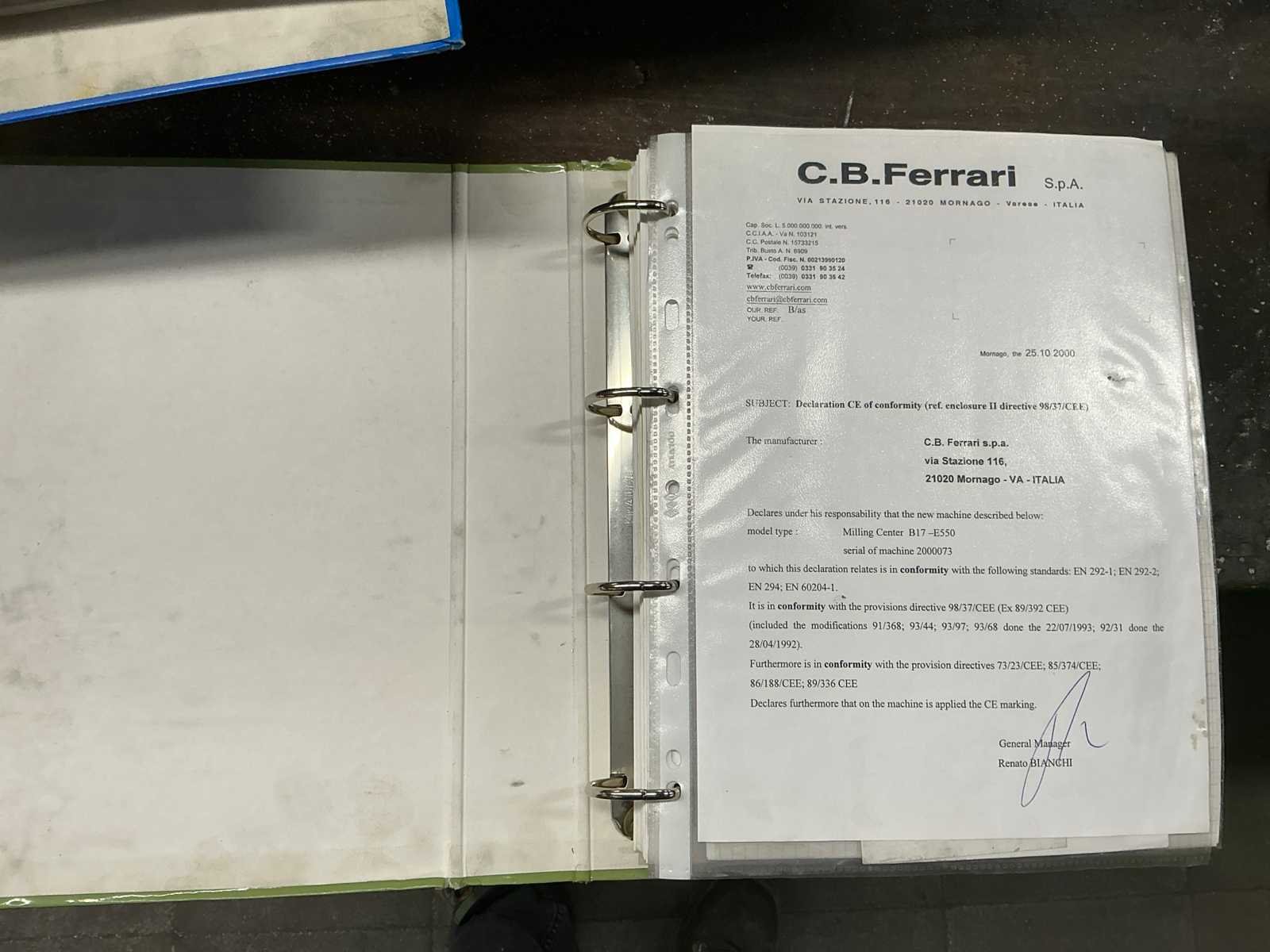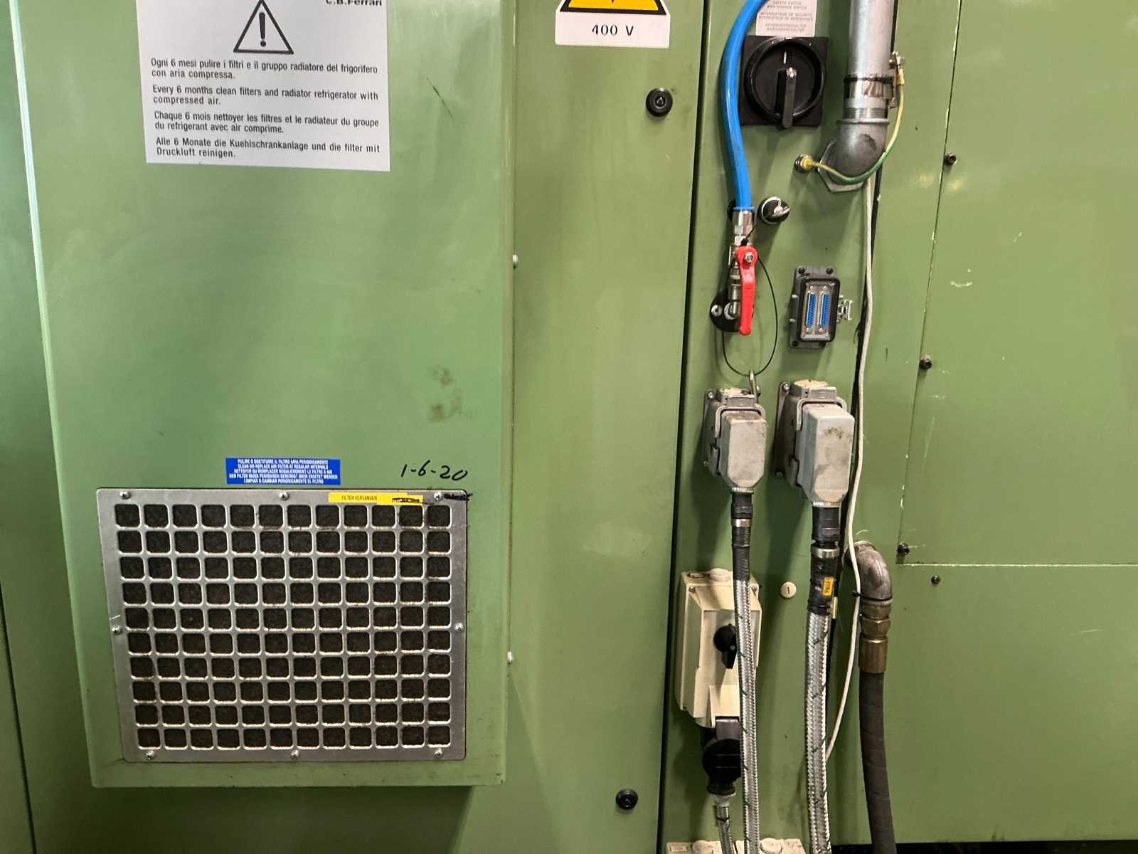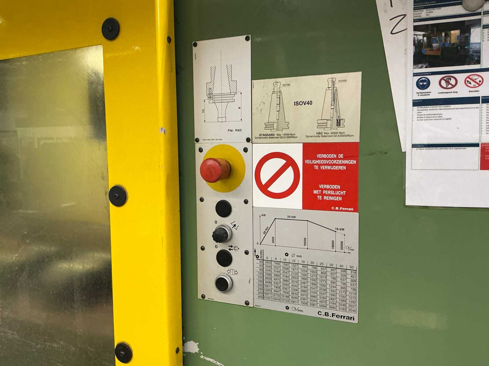 Voorzien van: 24 posities ATC, Langs X 1050 mm, Dwars Y 520 mm, Vertikaal Zn420 mm, Max. spilsnelheid 18000 rpm, Max. voeding 15000 mm/min, schema’s en handleiding aanwezig. No Merk: Ferrari Type: B17 Bouwjaar: 2000 Serienummer: 2000073 Koelmiddelpomp: true Machinegewicht: 7800kg