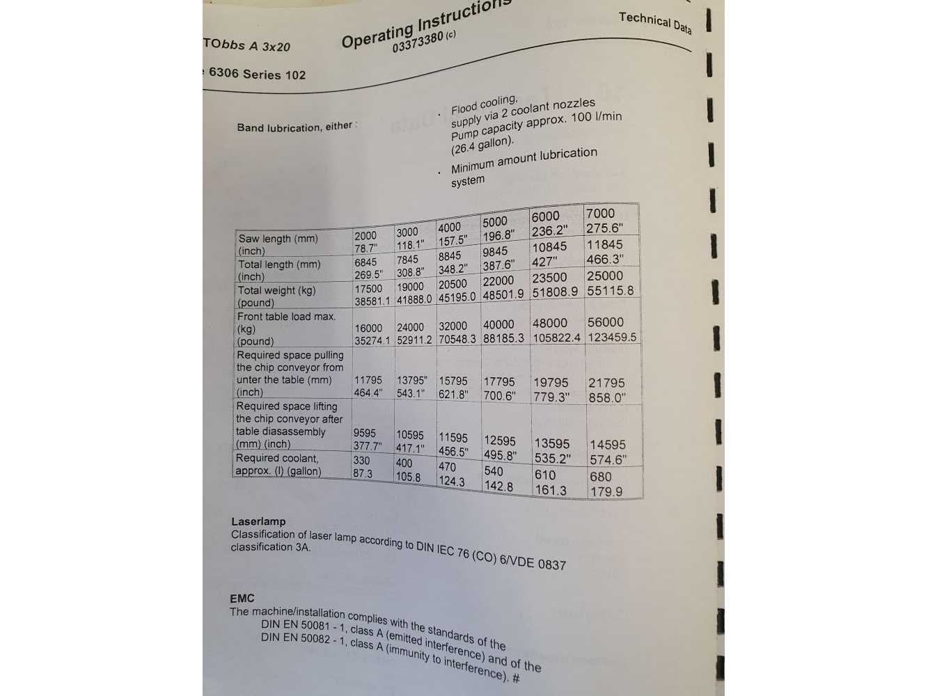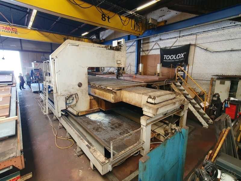 Handmatige modus: Zaaghoogte met bandcontrole, max. ............................. 360 mm Zaaghoogte zonder bandcontrole, max. ....................... 420 mm Zaagbreedte min. ................................................................. 10 mm Zaagbreedte max. ................................................................. 2.000 mm Zaaglengte max. …………………………………………………………….. 7.000 mm Automatische modus: Zaaghoogte (standaard) max. ............................................ 250 mm Zaaghoogte (optie) max. ..................................................... 350 mm Afkortbreedte min. ................................................................. 10 mm Afkortbreedte max. ................................................................. 2.000 mm Zaaglengte max. …………………………………………………………….. 7.000 mm Zaagbandsnelheid: traploos instelbaar Zaagvoeding: traploos instelbaar 0,5 – 250 mm/min Zaagbandafmetingen: 9.754 x 54 x 1,3 mm 9.754 x 54 x 1,6 mm Zaagsnede (kerf): 2,1 mm Zaagbandgeleiding: Hardmetaal, verwisselbaar en instelbaar Machine is geheel gedemonteerd i.v.m. plaats gebrek door verandering van werkzaamheden. Bezichtiging mogelijk op afspraak, echter weinig aan te zien omdat de machine in opslag staat. Verlading d.m.v. kraan (dus van boven af), uiteraard op afspraak. Let op.!!!! Benodigde transportmiddelen 2 x Trailer van 13,5 meter en 1 x Euro dieplader i.v.m. hoogte van het zaagframe (ca. 3,5 meter) Afhaallocatie wordt bekend gemaakt na sluiting van de veiling. Nee Merk: KASTO Type: BBS A3x20 Bouwjaar: 2008 Serienummer: 6306 102 009 Aansluiting: 400V Machinegewicht: 25000kg Afmeting l: 11500mm Afmeting b: 8800mm Afmeting h: 4080mm