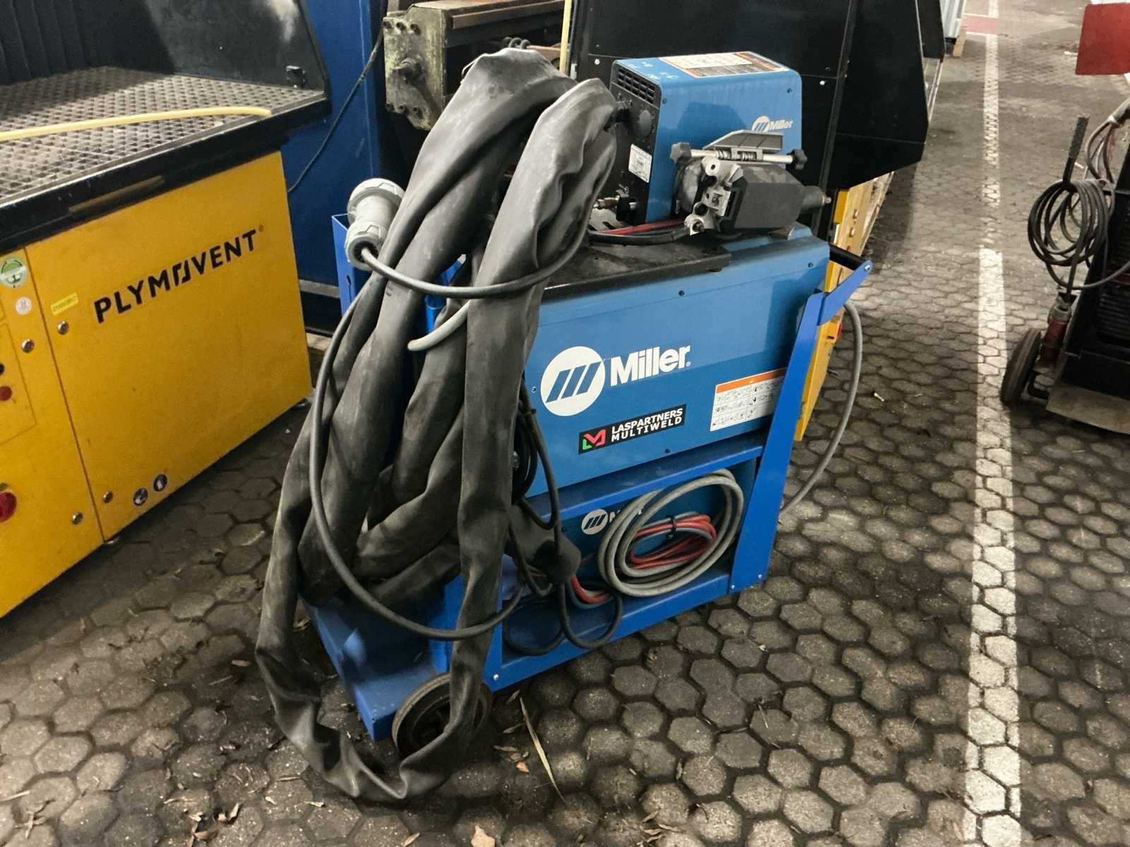 Miller XMT 450 MPa lasbron (400V, 3-fase, 600A @ 60%, 450A @ 100%), bouwjaar circa 2016 S-74 MPa Plus draadaanvoerunit met bedieningsconsole, incl. gasaansluiting en aansluitpunt voor watergekoelde toorts, bouwjaar circa 2015 HydraCool 2 waterkoeler (115V, 1,76 kW koelvermogen), bouwjaar 2017 Compleet op verrijdbare kar, incl. slangenpakket en industriële CEE 400V stekker No Merk: Miller Type: XMT 450 MPa Bouwjaar: 2015 Serienummer: ME382576U Aansluiting: 400V Draadaanvoerunit: true Machinegewicht: 55kg Afmeting l: 1100mm Afmeting b: 600mm Afmeting h: 1250mm