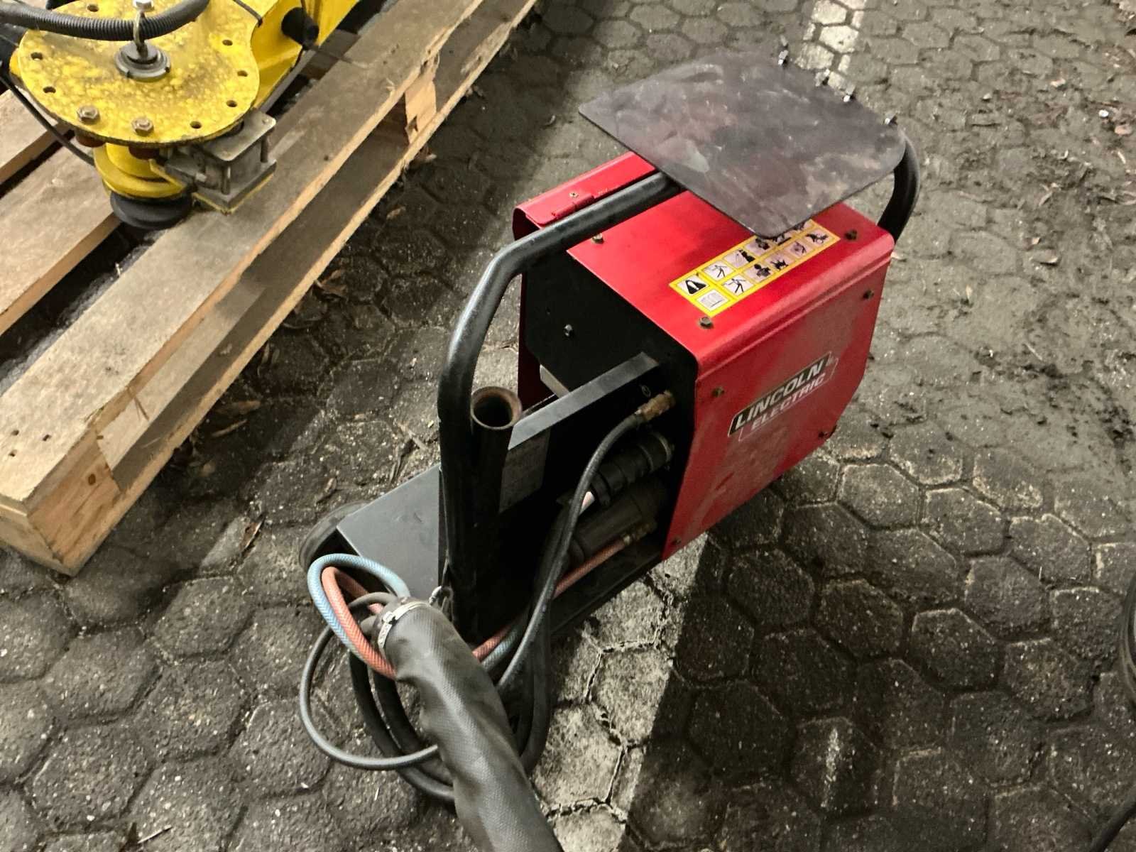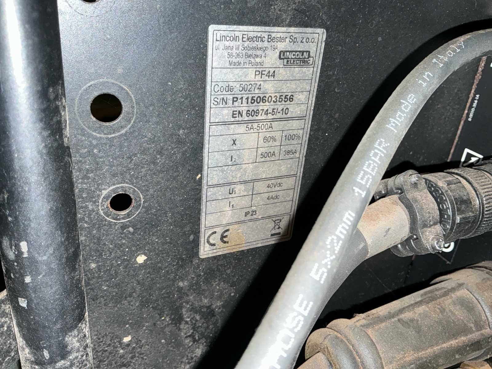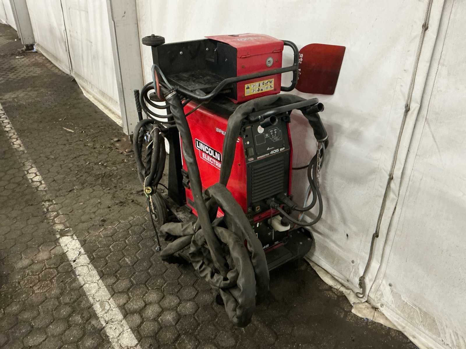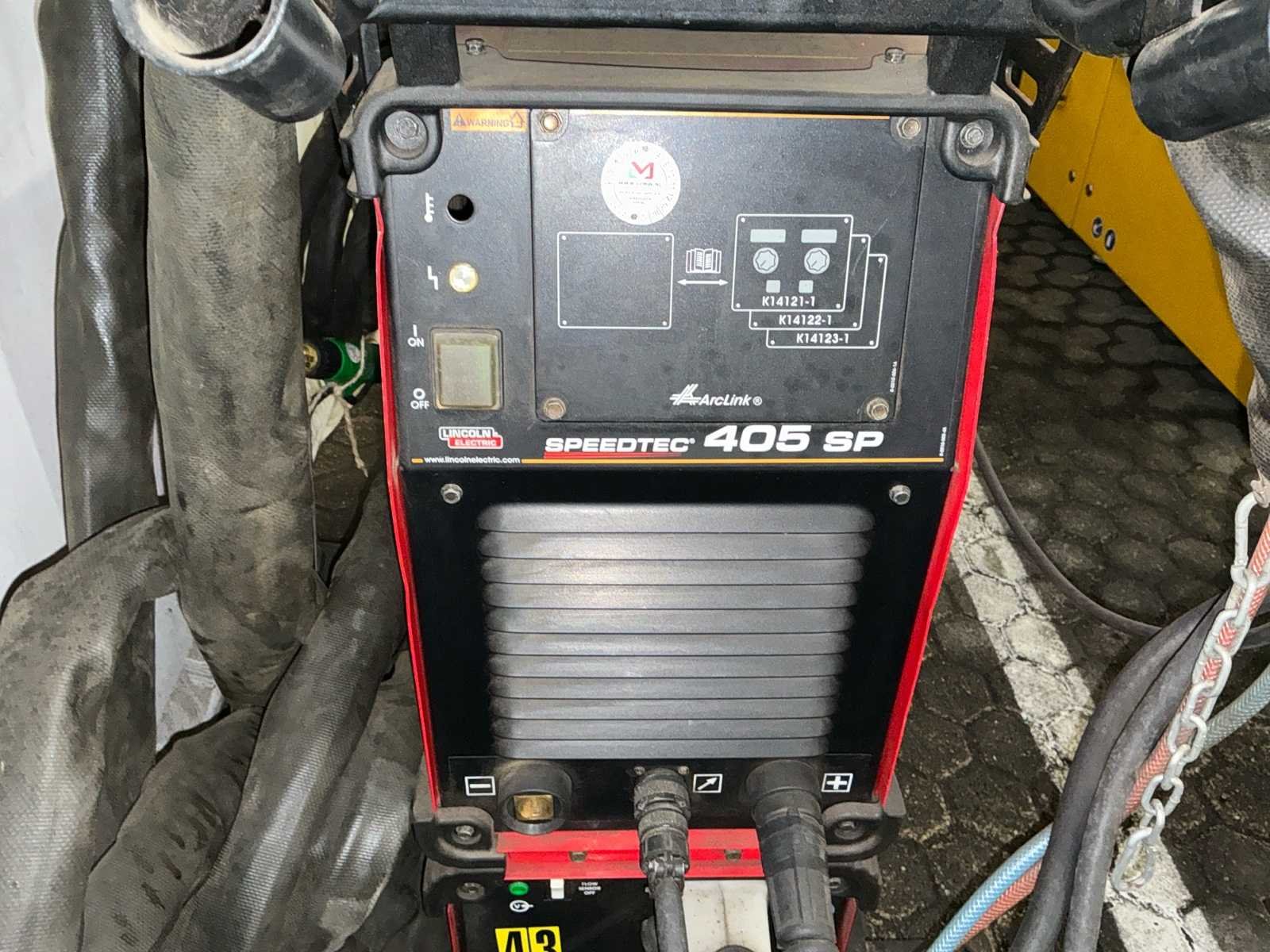 Lasbron Speedtec 405S, 500A MIG/MAG stroombron, 3-fase 400V voeding, bouwjaar 2016 Draadaanvoerunit PF44, incl. kabelset en MIG/MAG lastoorts met bediening, bouwjaar 2016 Waterkoeler CoolArc 46, 1,0 kW, geschikt voor 230V/400V, aangesloten op toorts, bouwjaar 2016 Volledig gemonteerd op verrijdbare kar met gasslanghouder, ketting, CEE-stekker en vloeistofreservoir Keuring uitgevoerd door LPMW.nl, geldig tot maart 2026 conform NEN-EN-IEC 60974-4 Toorts in nette staat, met koperen gasmondstuk, koeling zichtbaar aangesloten Geschikt voor zwaar MIG/MAG-werk, staalconstructie, lasopleiding of industriële productie Nee Merk: Lincoln Electric Type: Speedtec 405S Bouwjaar: 2016 Serienummer: P1160603556 Aansluiting: 400V Digitale uitlezing: true Draadaanvoerunit: true Afmeting l: 1100mm Afmeting b: 550mm Afmeting h: 1000mm