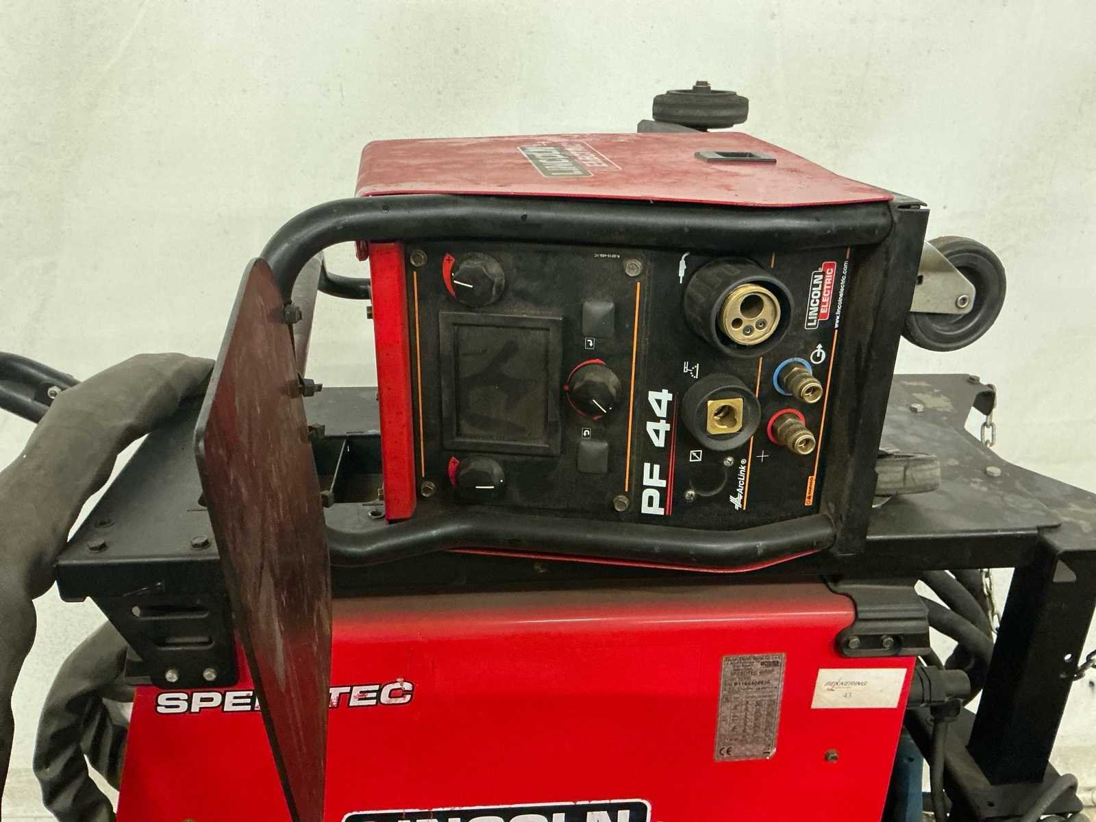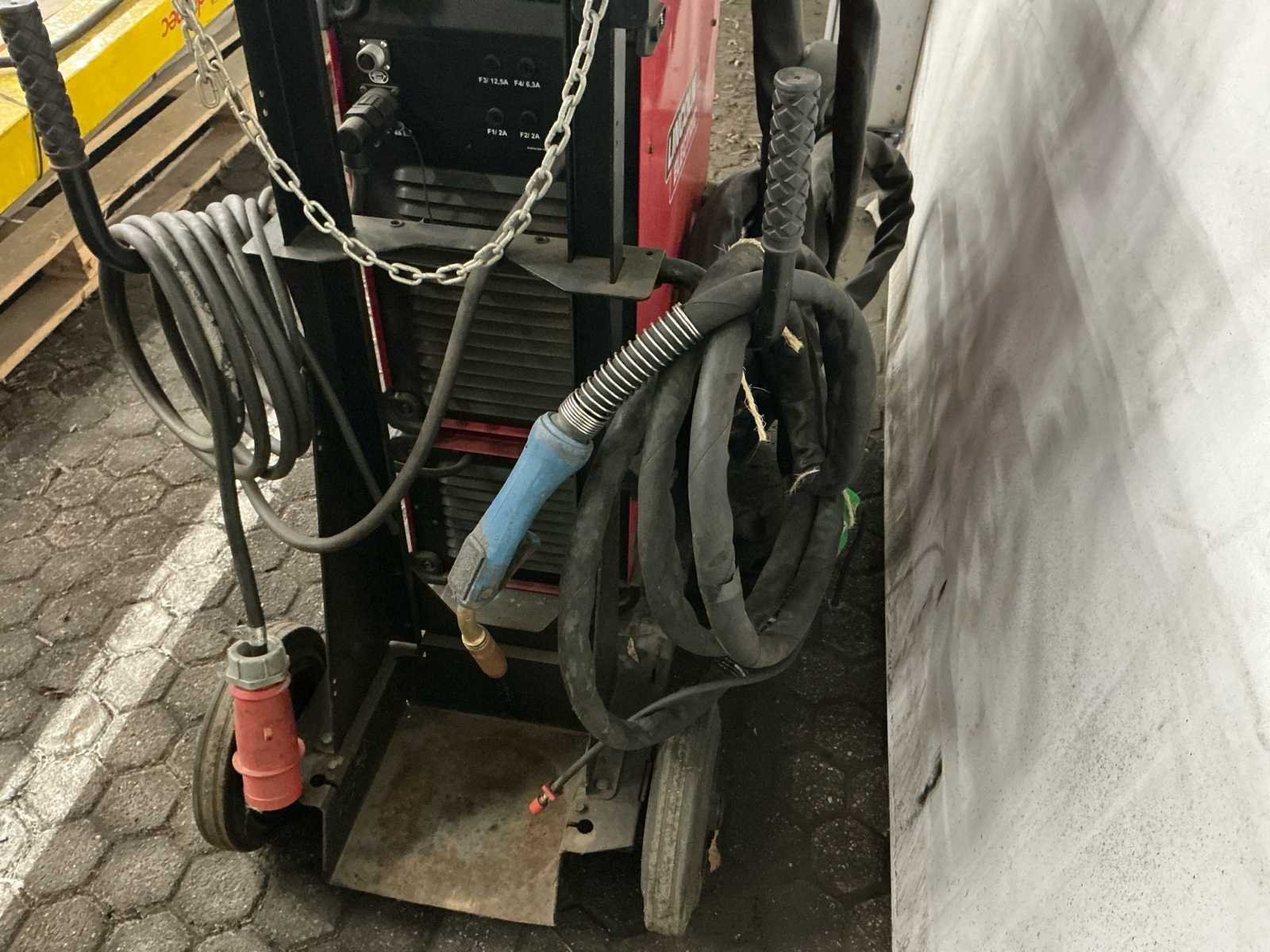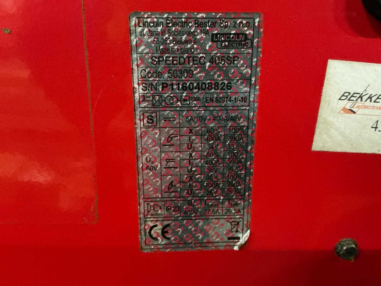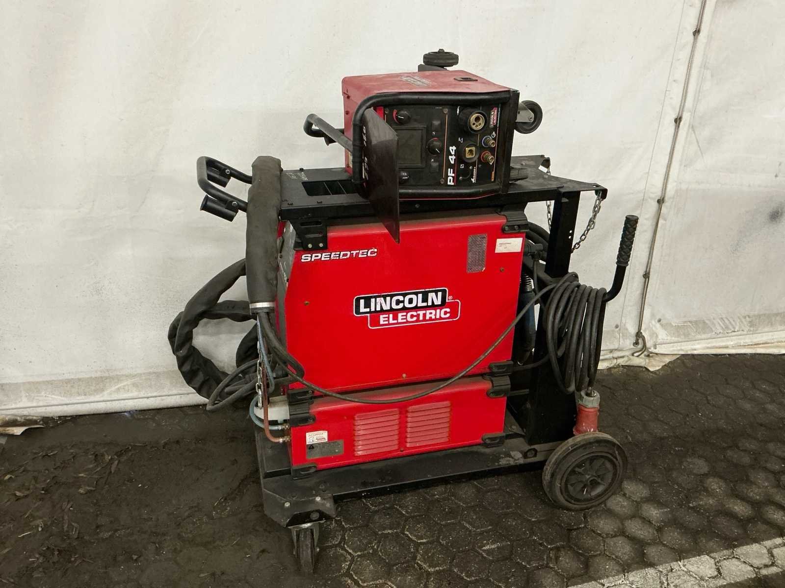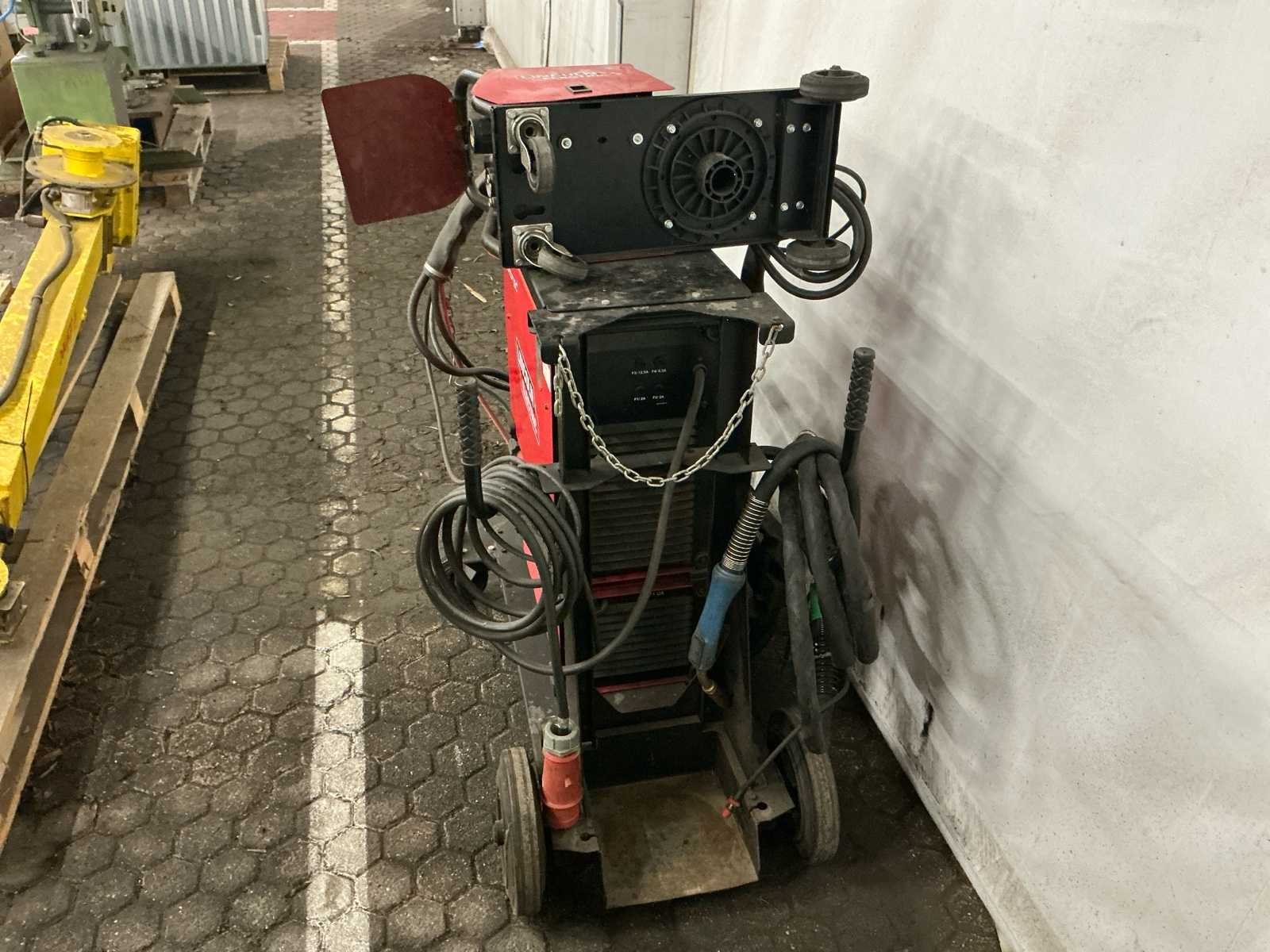 Lasbron Speedtec 405S, 500A MIG/MAG stroombron, 3-fase 400V voeding, bouwjaar 2016 Draadaanvoerunit PF44, incl. kabelset en MIG/MAG lastoorts met bediening, bouwjaar 2016 Waterkoeler CoolArc 46, 1,0 kW, geschikt voor 230V/400V, aangesloten op toorts, bouwjaar 2016 Volledig gemonteerd op verrijdbare kar met gasslanghouder, ketting, CEE-stekker en vloeistofreservoir Keuring uitgevoerd door LPMW.nl, geldig tot maart 2026 conform NEN-EN-IEC 60974-4 Toorts in nette staat, met koperen gasmondstuk, koeling zichtbaar aangesloten Geschikt voor zwaar MIG/MAG-werk, staalconstructie, lasopleiding of industriële productie Nee Merk: Lincoln Electric Type: Speedtec 405S Bouwjaar: 2016 Serienummer: P1160603556 Aansluiting: 400V Digitale uitlezing: true Draadaanvoerunit: true Afmeting l: 1100mm Afmeting b: 550mm Afmeting h: 1000mm