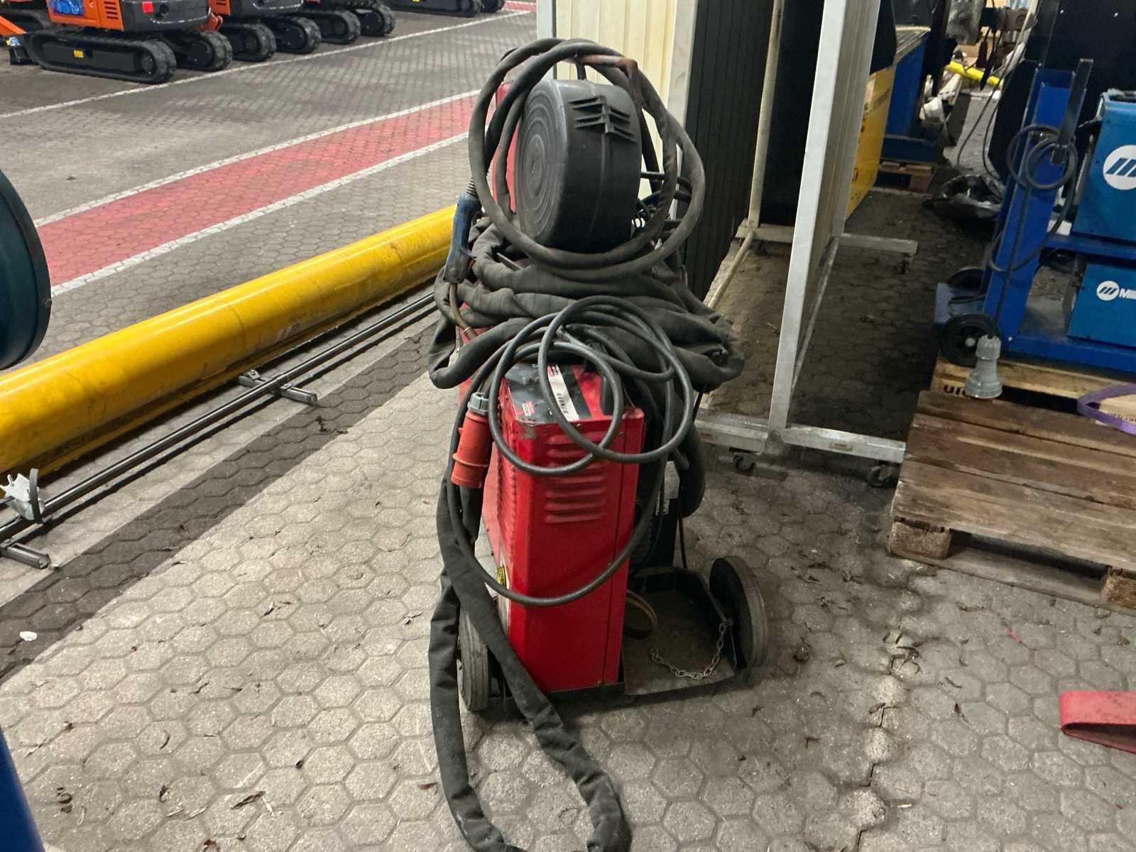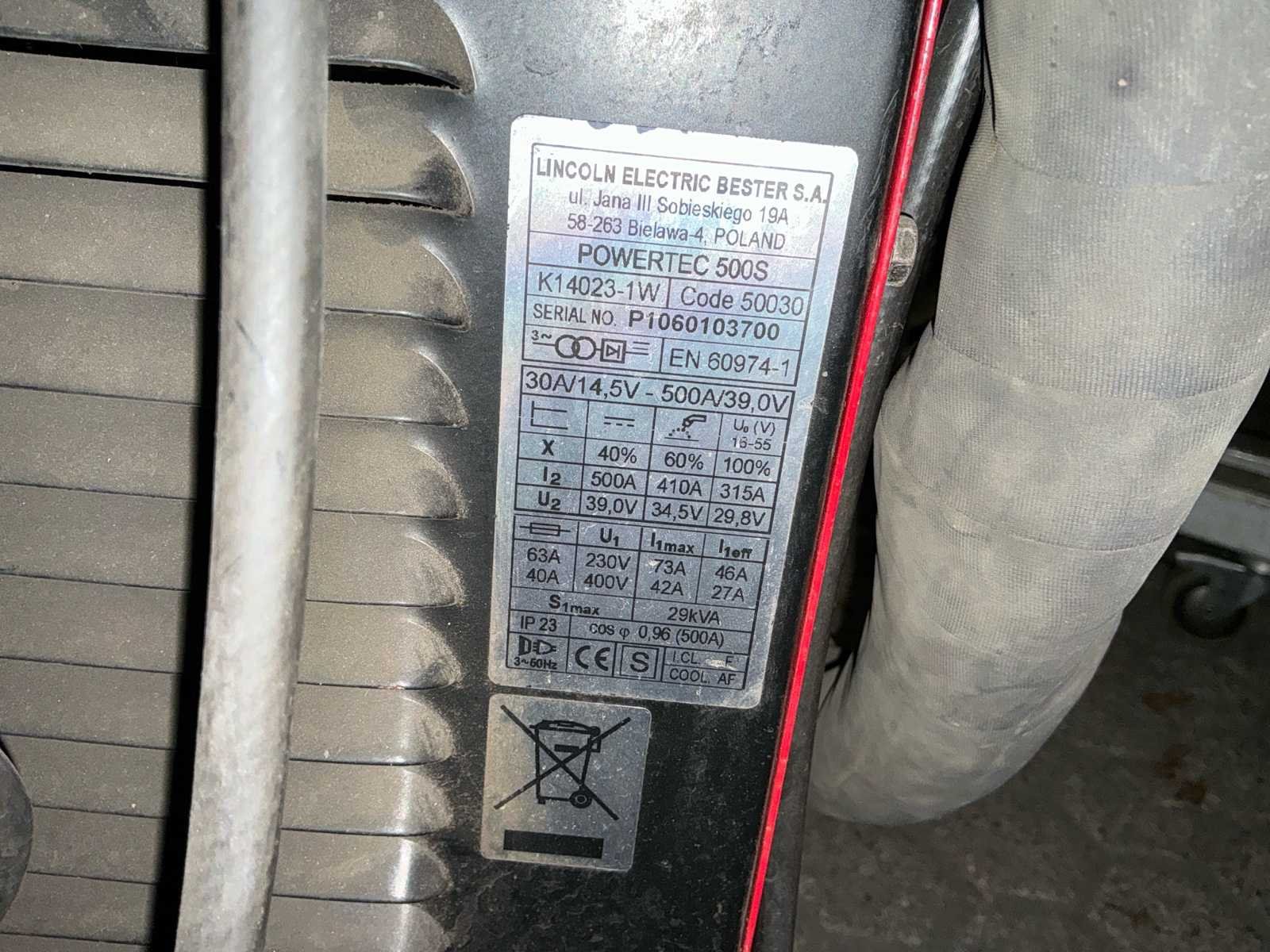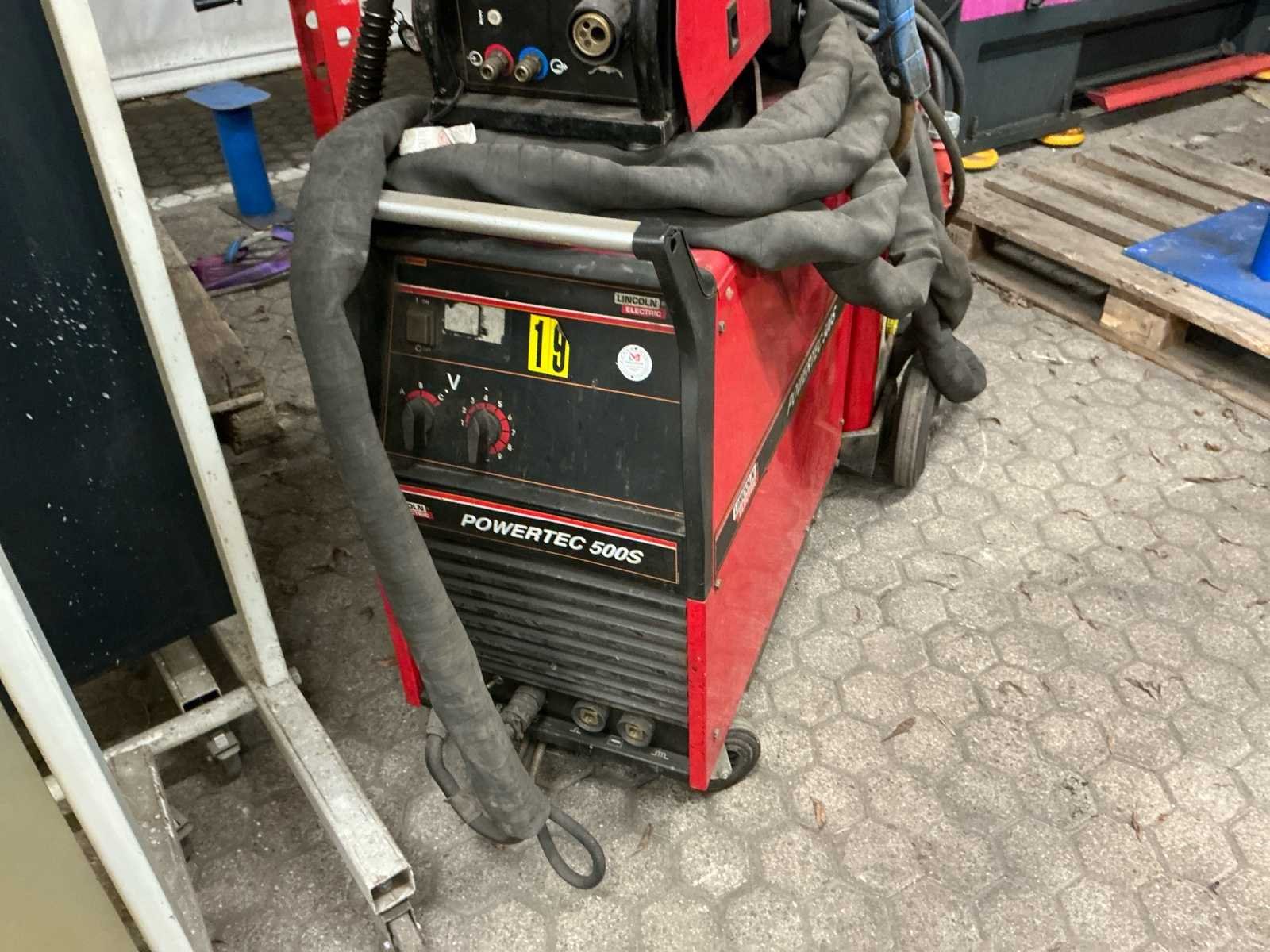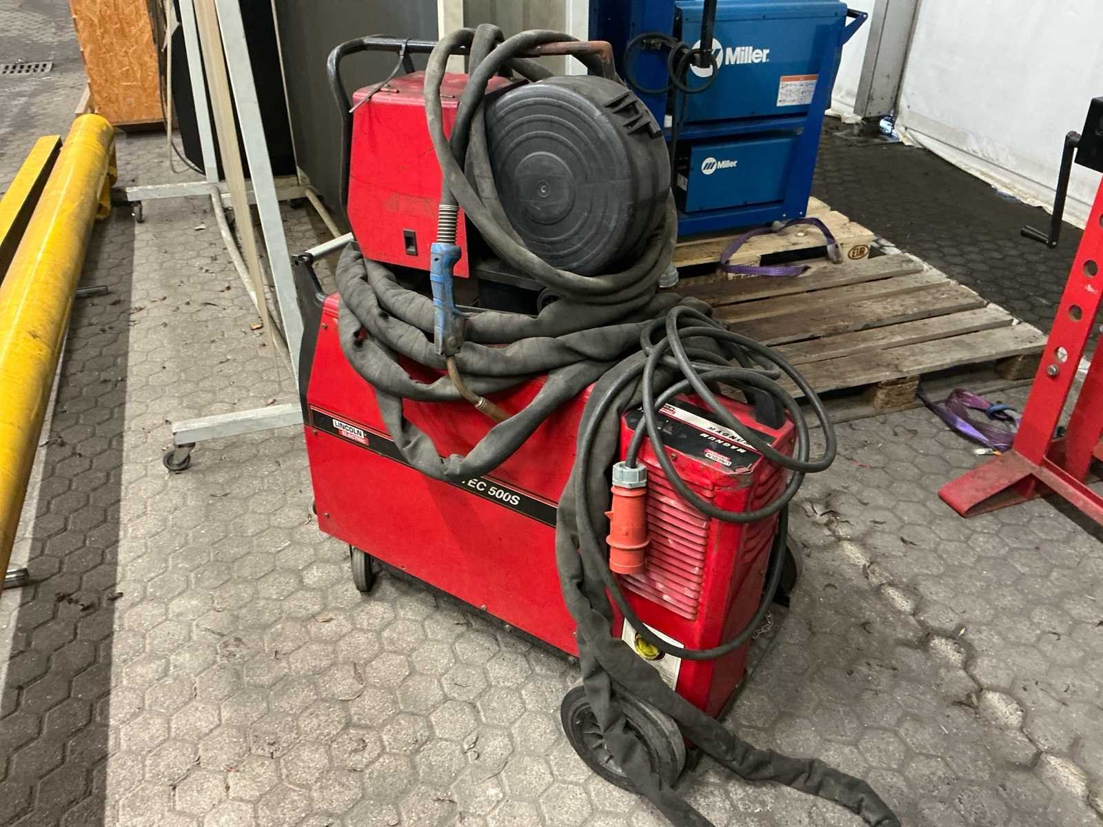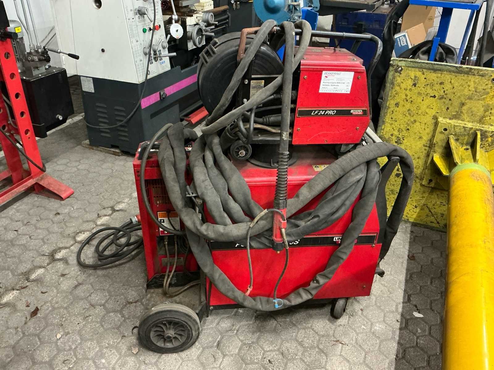 Lasbron Powertec 500S (500A @ 60%, 3-fase, 400V), bouwjaar 2010 Draadaanvoerunit LF-24 PRO, incl. kabelset en aangesloten lastoorts, bouwjaar ca. 2010–2011 Slangenpakket en toorts inbegrepen, visueel compleet en aangesloten Mobiel frame met grote transportwielen Ingesteld op standaard MIG/MAG-systeem met 2-rol draadaanvoer en lastoortsbediening Voeding via CEE 5-polige industriële stekker Voorzien van keuring, verloopt per maart 2026 Nee Merk: Lincoln Electric Type: Powertec 500S Bouwjaar: 2010 Serienummer: P1060103700 Afmeting l: 1020mm Afmeting b: 680mm Afmeting h: 1250mm