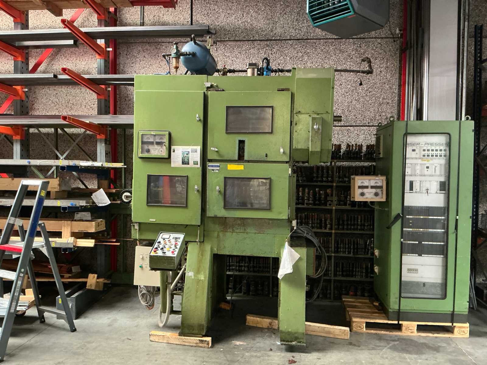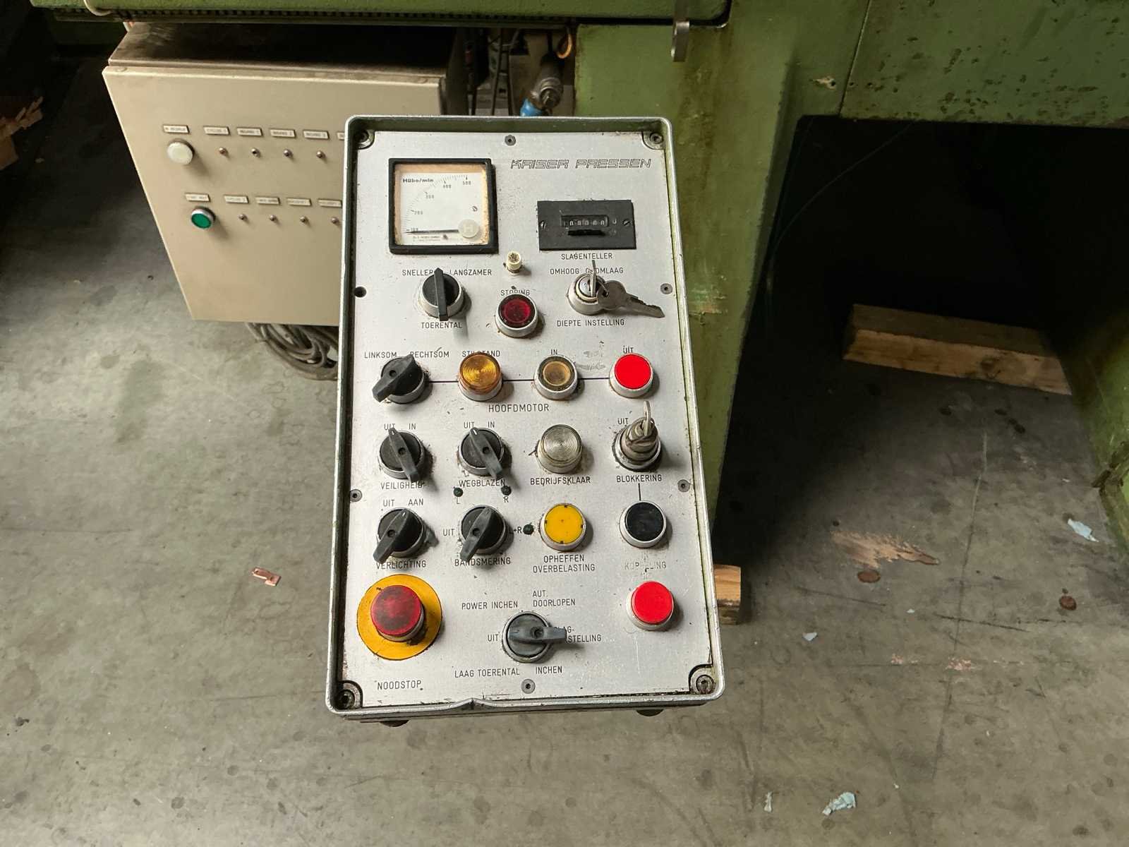 Kaiser pers 32T voor onderdelen, of revisie, schakelkast en hydraulische unit compleet. Nee Merk: Kaiser Type: 32T Bouwjaar: 1979 Serienummer: 130744 Capaciteit.: 32t Slag: 50mm Aansluiting: 400V Machinegewicht: 6kg