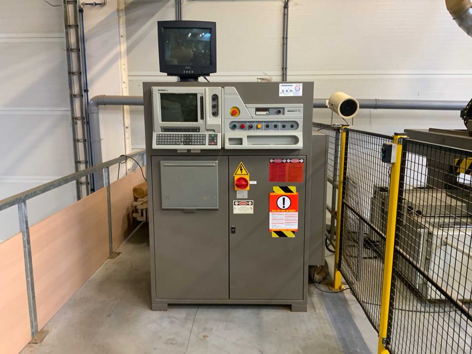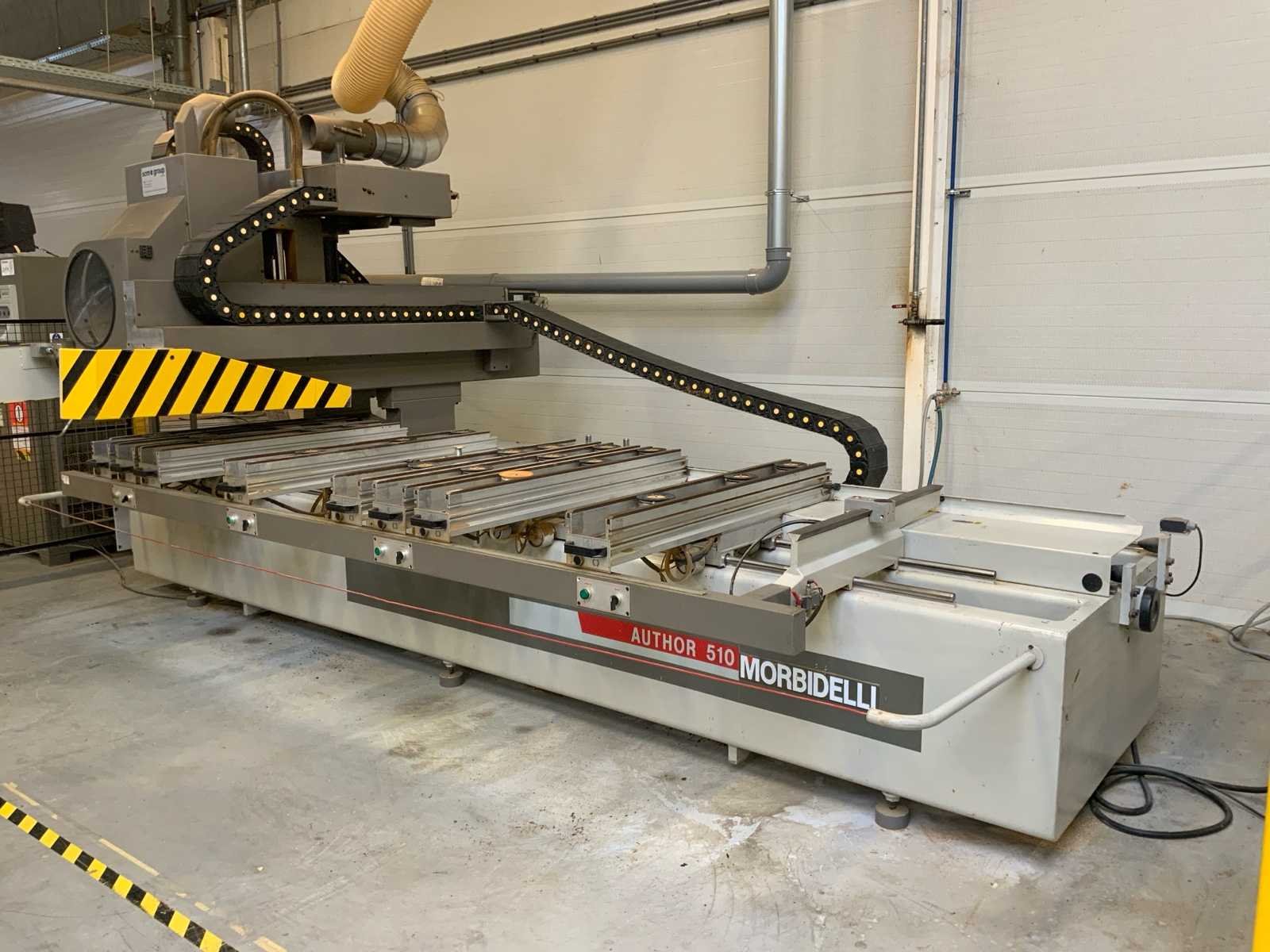 Werkbereik (X × Y × Z, typisch aangegeven): ca. 3.630 × 1.250 × 120 mm *.voorzien van ingebouwde snelwisselaar / revolver (toolchanger) met 10 posities * Tafeltype: beam / staven-tafel met meerdere vacuum-pods of klemsteunen * Max. toerental hoofdspi 12000RPM * X-Y-Z as * voorzien van veiligheids hekwerk en noodstop kabel * afmeting machine circa 475x265x235cm * afmeting besturingskast circa 135x75x215cm * voorzien van vacuümpomp Nee Merk: Morbidelli Type: Author 510 Bouwjaar: 1992 Serienummer: A1-645 CNC-besturing, merk, type: Morbidelli Aansluiting: 380V Machinegewicht: 4000kg Leveringsvoorwaarden: Gratis op vrachtwagen