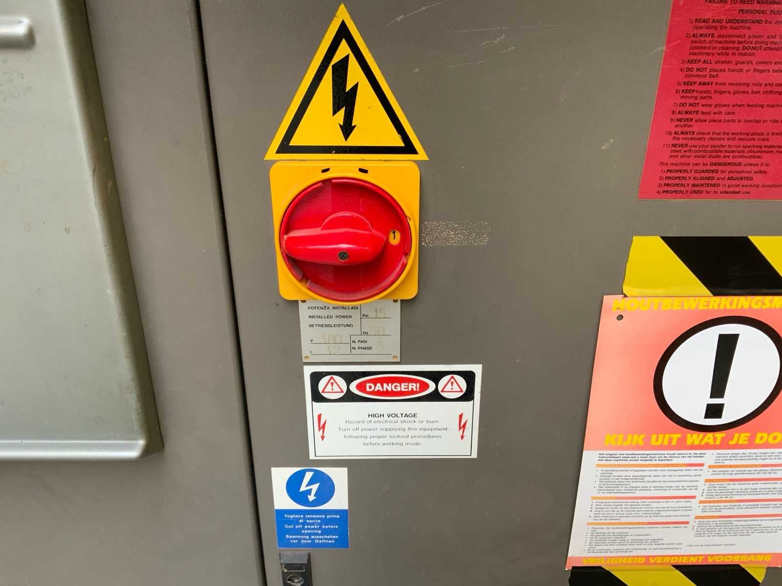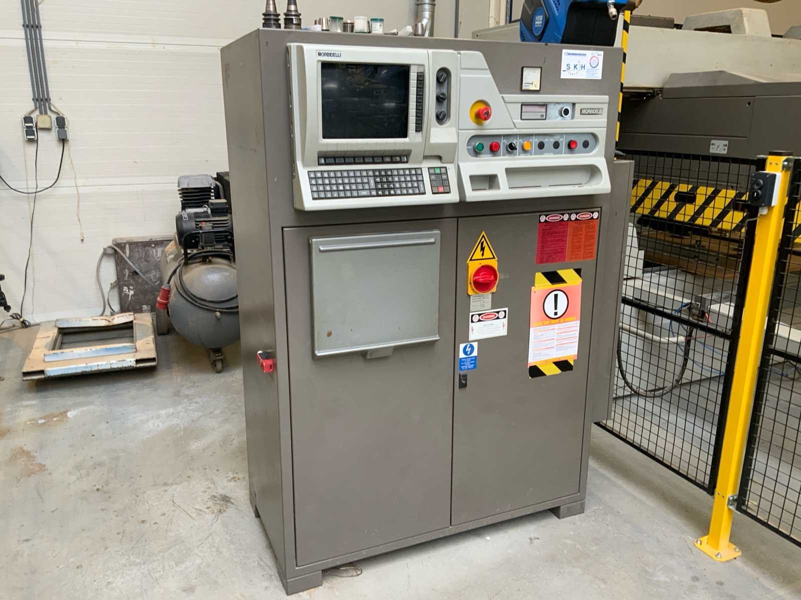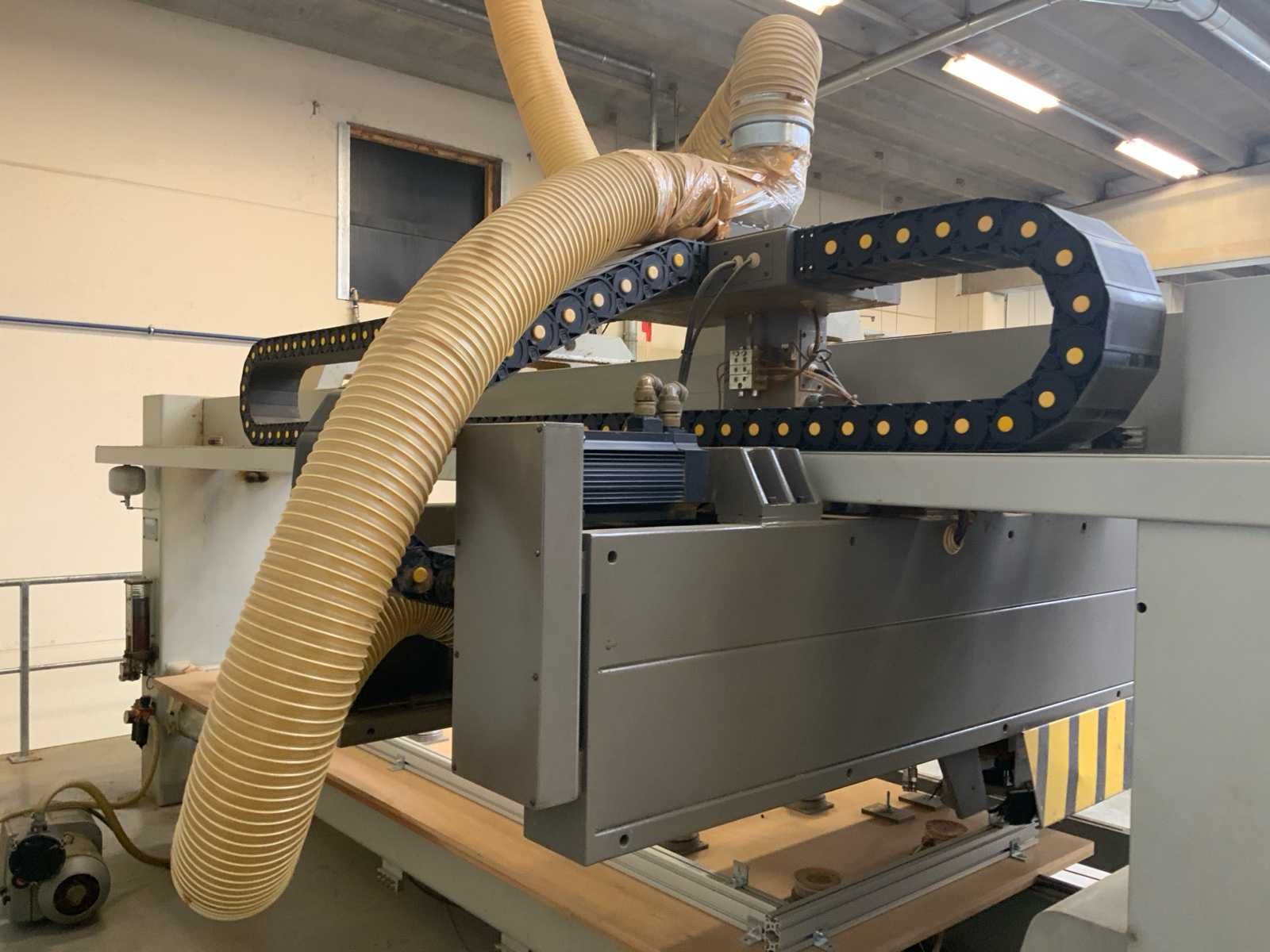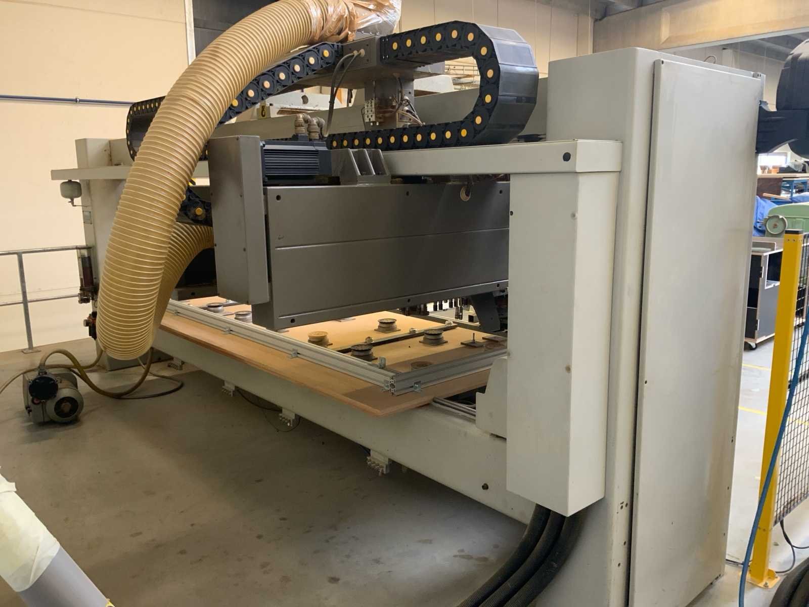 Volautomatisch CNC-bewerkingscentrum voor hout- en plaatmateriaal voor boren, frezen, profileren en zaagbewerkingen * Werkbereik (X × Y × Z): ca. 3.300 × 1.250 × 120 mm • Hoofdspilvermogen: 7,5 kW • Toerental hoofdspil: max. 12.000 t/min • Verticale boorkop: ca. 29 spindels • Horizontale boorspindels: ca. 6 – 12 • Gereedschapwisselaar: revolver-type, 8 – 10 posities • Tafel: vacuümtafel met podsysteem • CNC-besturing: ESA TRIA / Morbidelli origineel bedieningspaneel • Vacüumpomp: geïntegreerd (droogpomp, ca. 40 m³/h) • Machinegewicht: ± 3.500 kg Inclusief Vacuümpomp, hekwerk en besturingskast Nee Merk: Morbidelli Type: U550 Bouwjaar: 1992 Serienummer: AL1845 CNC-besturing, merk, type: Morbidelli Aansluiting: 380V Totale afmeting L: 5300mm Totale afmeting Breedte: 3000mm Totale afmeting Hoogte: 2200mm Leveringsvoorwaarden: Gratis op vrachtwagen