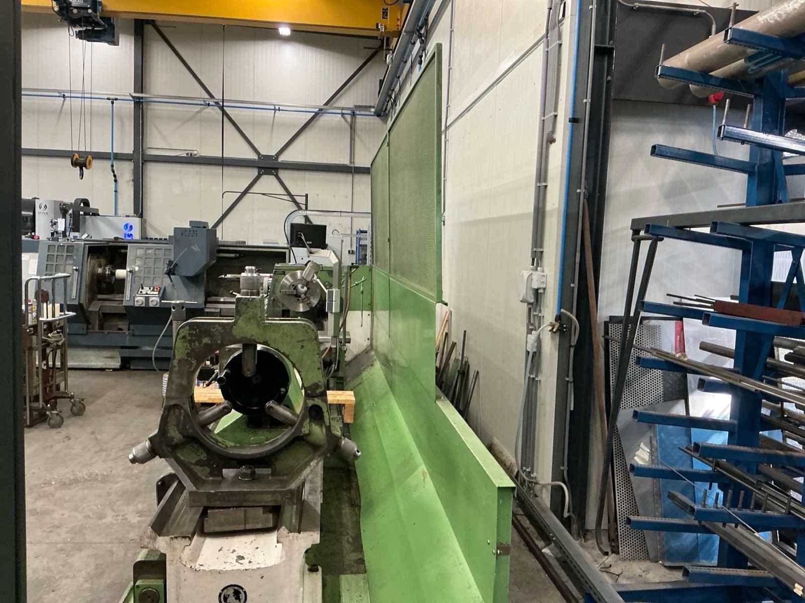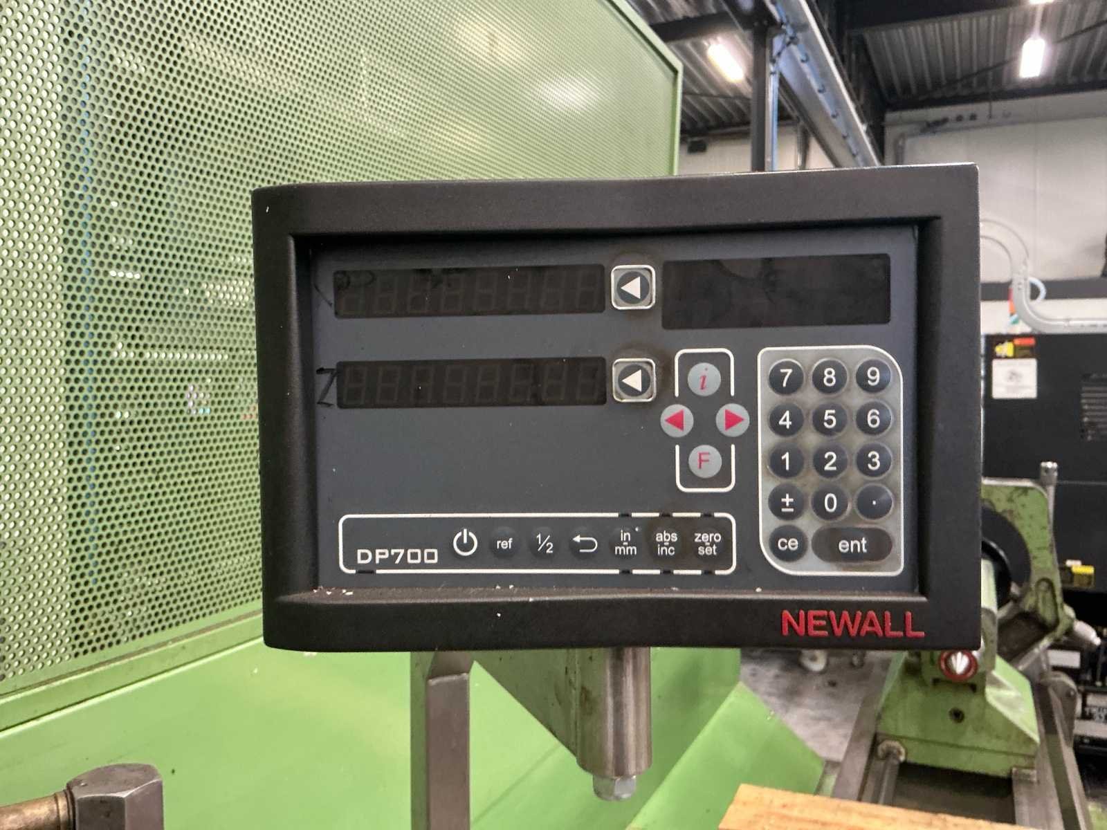Voorzien van: Met 2 extra opzet stukken, Colchester Magnum 1250 met Newall DP700 digitale uitlezing is een zware conventionele draaibank met 2-assige precisieweergave tot 0,005 mm nauwkeurig, Colchester Magnum 1250 is een zware precisiedraaibank uit 1981 met een draailengte van 2 – 3 m, draaidiameter tot 600 mm, spindelboring van 105 mm, toerentalbereik 25 – 2000 rpm en 11 – 15 kW motorvermogen De Newall DP700 is een 2- of 3-assige digitale uitlezing (DRO) met een resolutie van 0,005 mm, een dubbel LED-display voor X/Z-as, compatibel met Spherosyn- of Microsyn-encoders, voorzien van functies zoals absoluut/incrementeel meten, radius-/diametermodus, middenpuntzoeker, boog- en pitchberekening en geheugen voor nulpunten, bediend via een numeriek toetsenbord, werkend op 100–240 V AC (50/60 Hz) met een nauwkeurigheid van ±5 µm, geschikt voor draaibanken, freesmachines en slijpmachines, en uitgevoerd in een stof- en spatwaterdichte behuizing (IP53). No Merk: Colchester Lathe Type: Magnum 1250 Bouwjaar: 1981 Serienummer: 9/0006A/00110 - 4-gap-04/006/01-803 Besturing, merk, type: Newall DP700 Aansluiting: 380V Machinegewicht: 5500kg Afmeting l: 6000mm Afmeting b: 1800mm Afmeting h: 1700mm