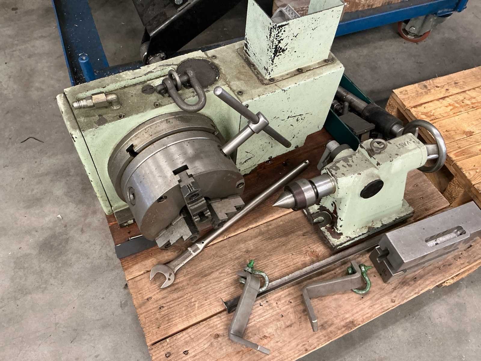 Voorzien van: Met hydraulische pomp, Tanshing MRNC-255 is een CNC-gestuurde roterende tafel met een 255 mm schijf, 55 mm centerboring, 1:90 wormoverbrenging, 30 rpm maximumsnelheid, ± 4 arcsec nauwkeurigheid en 800 Nm klemmoment, bedoeld als vierde as voor freesmachines. 2 kleine pallets van 60x80cm. Nee Merk: Tanshing Type: MRNC-255 Serienummer: B1A6A002011