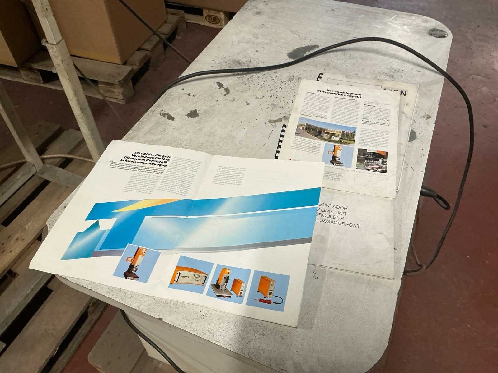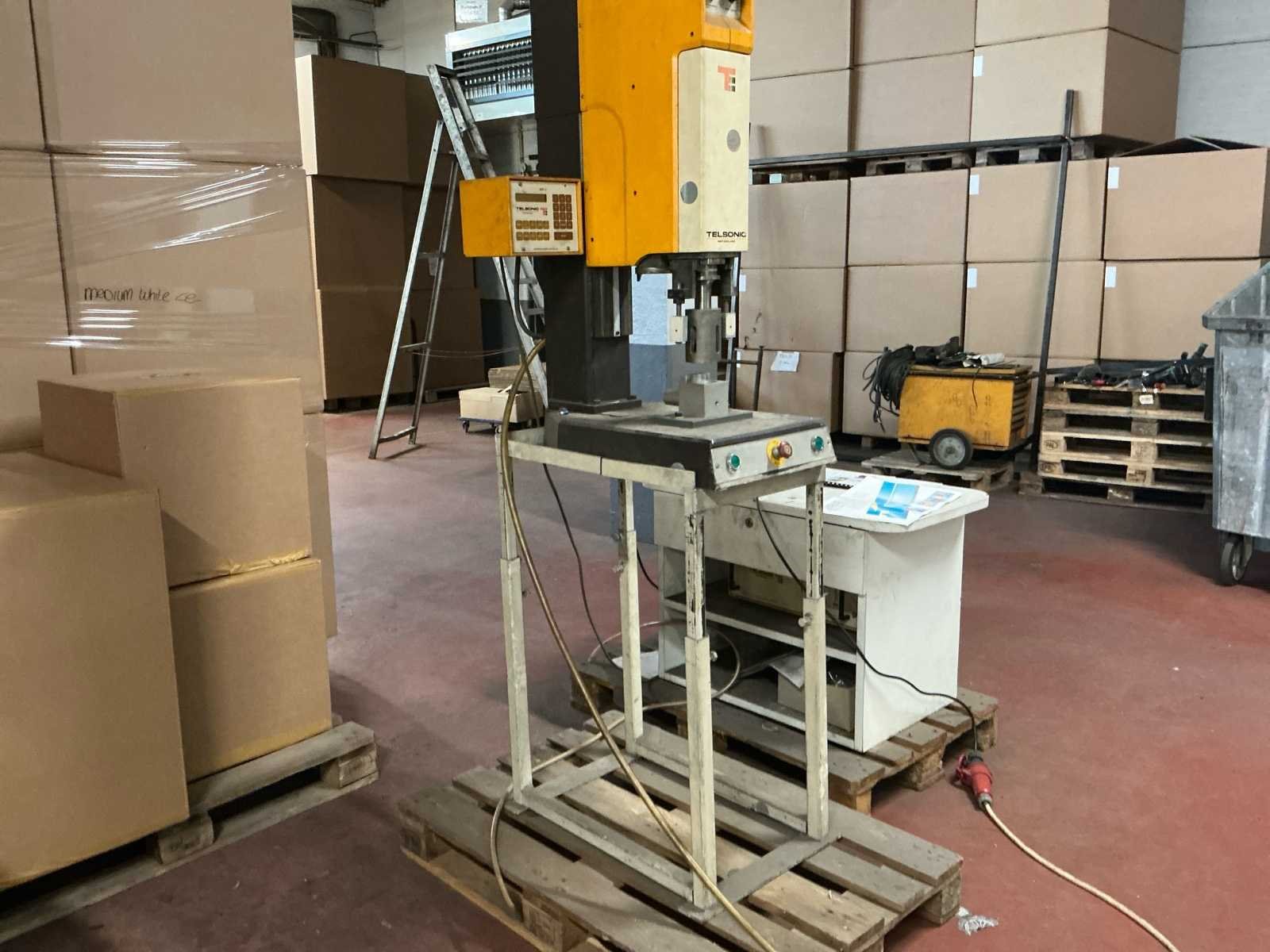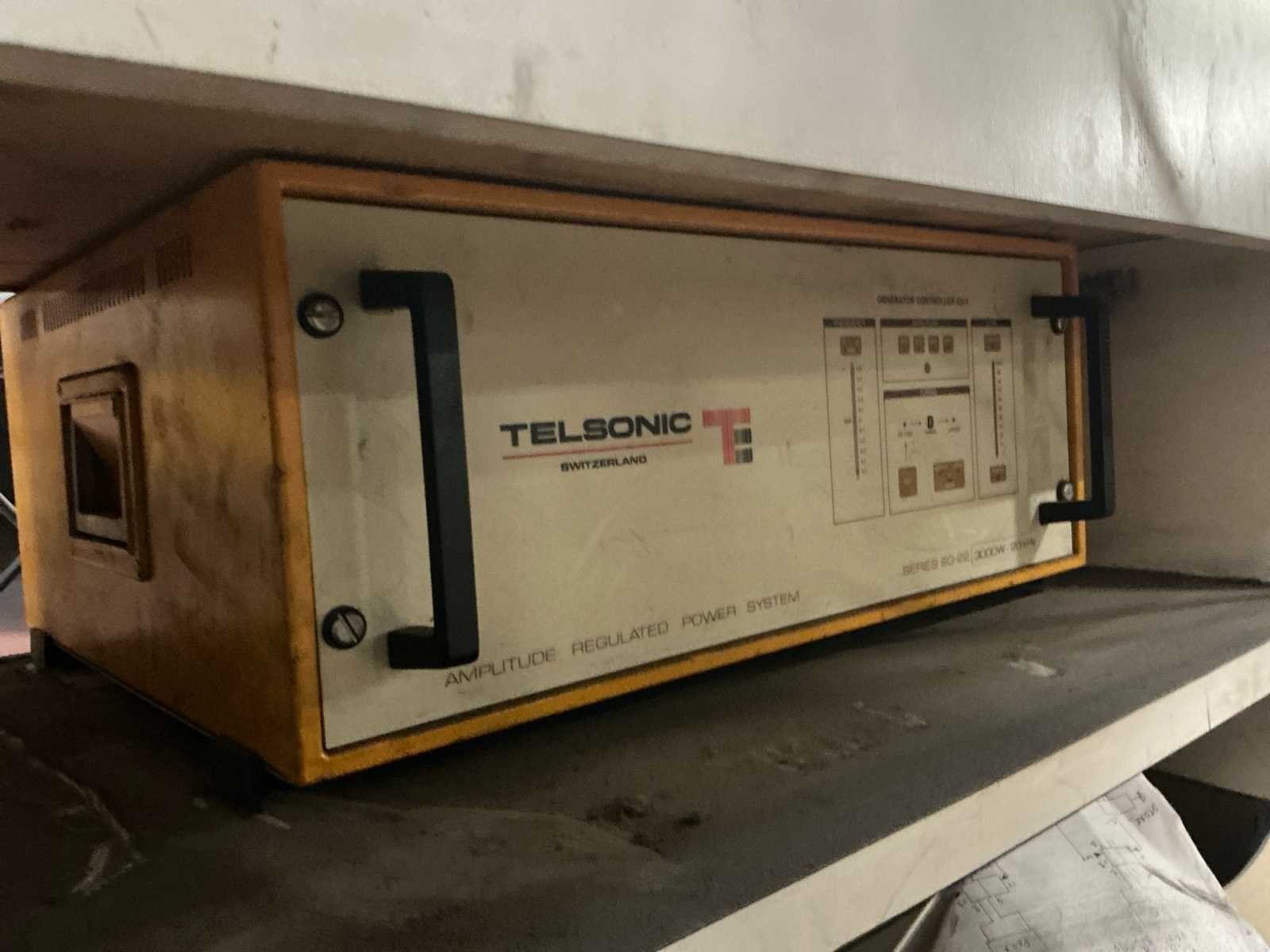 Voorzien van: Telsonic AG USP-2500 T ultrasoon lasmachine (type 93-2301, serienr. 91311) met ultrasoon frequentie 20 kHz, maximaal vermogen 3000 W, voeding 3×380 V, maximale stroom 3×8 A, industriële persuitvoering voor het lassen van kunststofcomponenten. Met: microprocessor Telsonic MPS-2 en Telsonic generator controller CU-1. Nee Merk: Telsonic Type: USP-2500 T Serienummer: 91311 Vermogen: 3000kW Aansluiting: 380V Machinegewicht: 500kg Totale afmeting L: 750mm Totale afmeting Breedte: 440mm Totale afmeting Hoogte: 2000mm