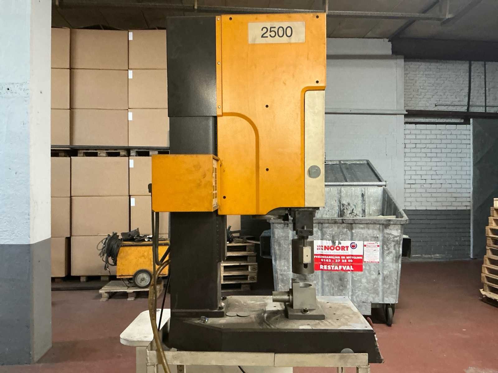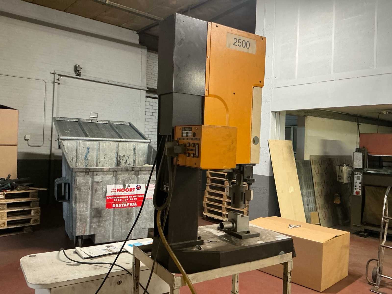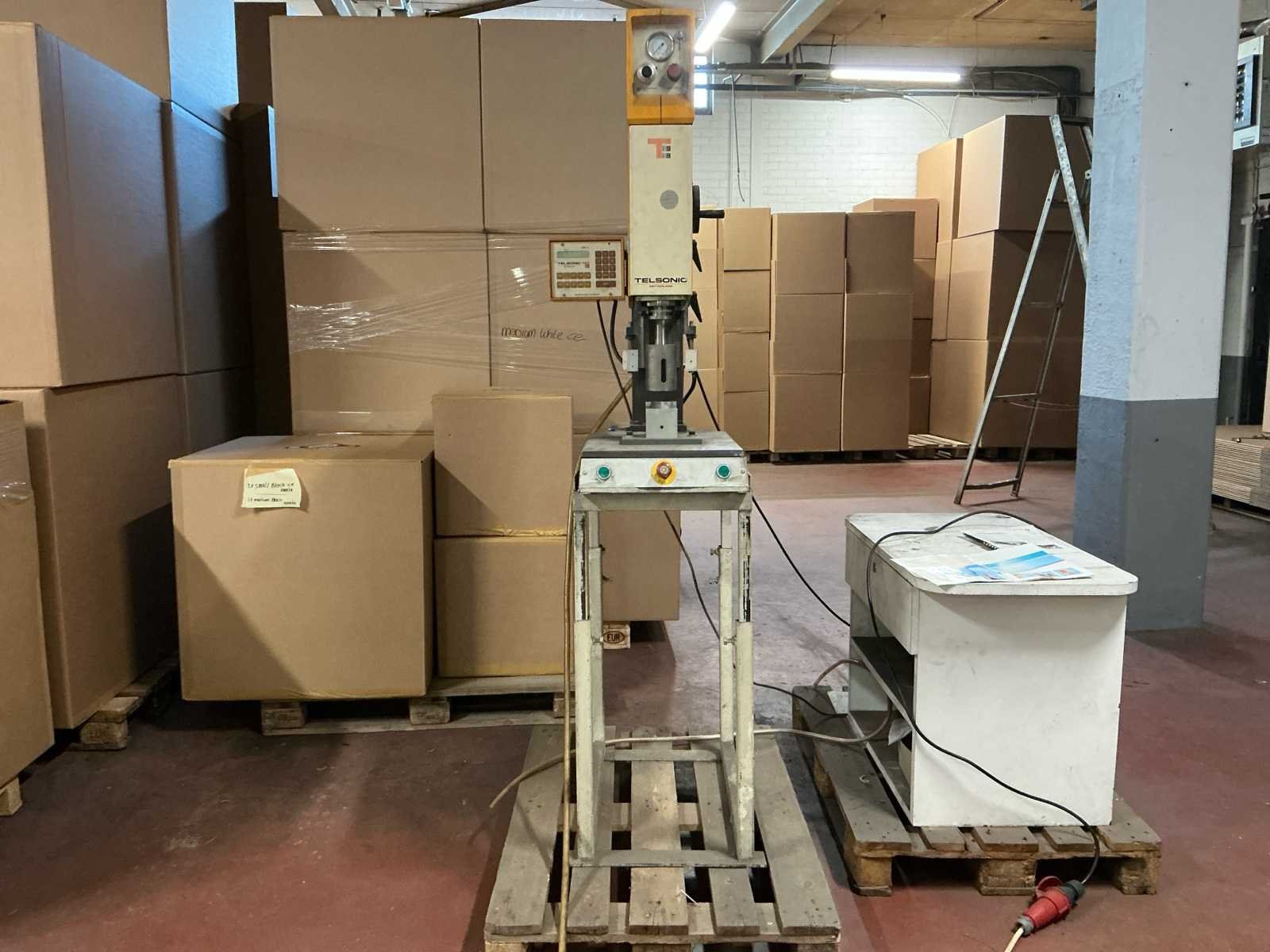 Voorzien van: Telsonic AG USP-2500 T ultrasoon lasmachine (type 93-2301, serienr. 91311) met ultrasoon frequentie 20 kHz, maximaal vermogen 3000 W, voeding 3×380 V, maximale stroom 3×8 A, industriële persuitvoering voor het lassen van kunststofcomponenten. Met: microprocessor Telsonic MPS-2 en Telsonic generator controller CU-1. Nee Merk: Telsonic Type: USP-2500 T Serienummer: 91311 Vermogen: 3000kW Aansluiting: 380V Machinegewicht: 500kg Totale afmeting L: 750mm Totale afmeting Breedte: 440mm Totale afmeting Hoogte: 2000mm