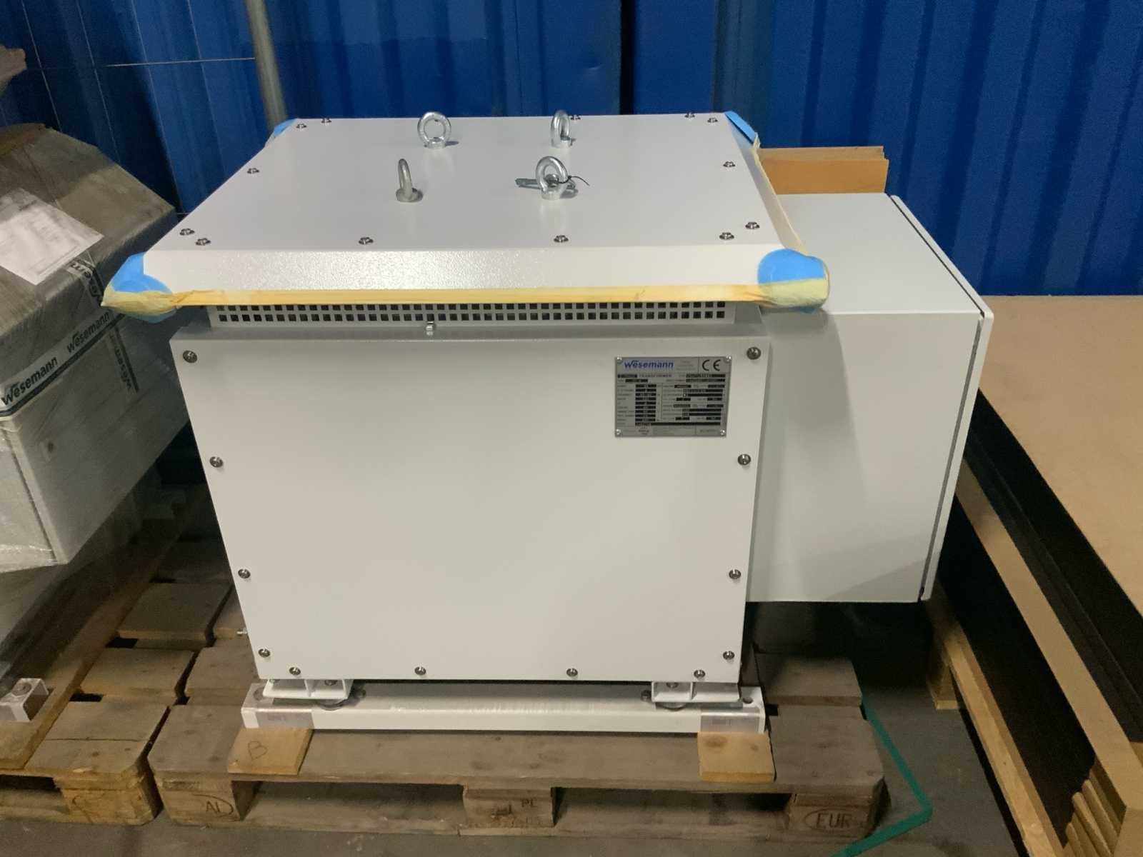 Betreft een ongebruikte machine in nieuwstaat op en inclusief 1 pallet * Spanning 3x690V/3x230V * IP 23 Lloyds * Nee Merk: Wesemann Type: 3-fasen Gewicht: 490kg Lengte: 115cm Breedte: 75cm Hoogte: 87cm Bouwjaar: 2014 Vermogen: 99kVA Leveringsvoorwaarden: Gratis op vrachtwagen