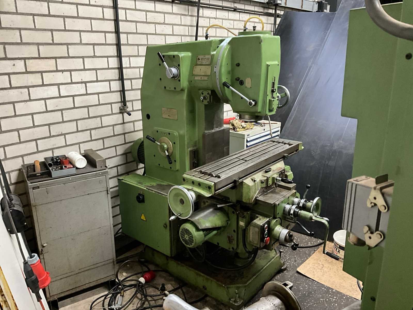 380V/50Hz;14,4A; LET OP: Koper is zelf verantwoordelijk voor het uithuizen van het kavel. Er is een heftruck aanwezig! Nee Merk: CCCP Mockba Type: 6P11 Serienummer: 1258 Hoekinstelling (graden): 90 Verplaatsing x-as: 750mm Verplaatsing y-as: 250mm Verplaatsing z-as: 350mm Opname iso: 40/DIN2080 Opname: DIN2080 Aantal snelheden: 16 Snelheid van n =: 50rpm Snelheid tot n =: 1600rpm Aansluiting: 380V Afmeting l: 2000mm Afmeting b: 1400mm Afmeting h: 2000mm