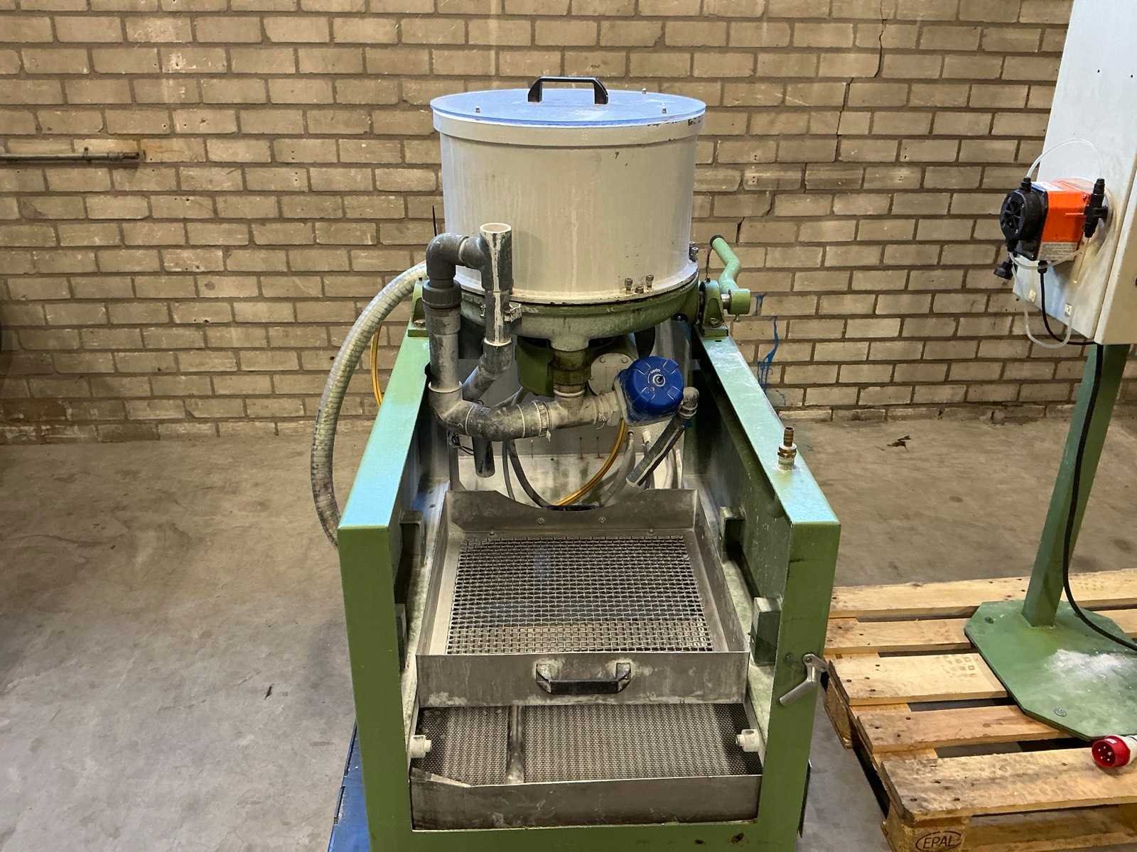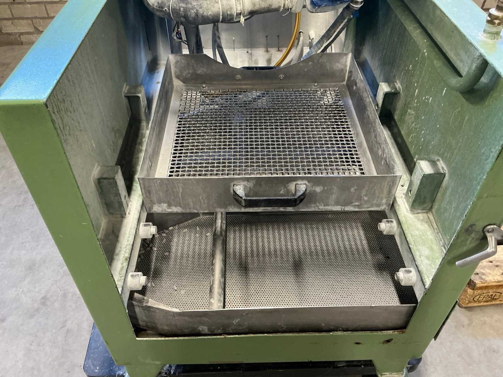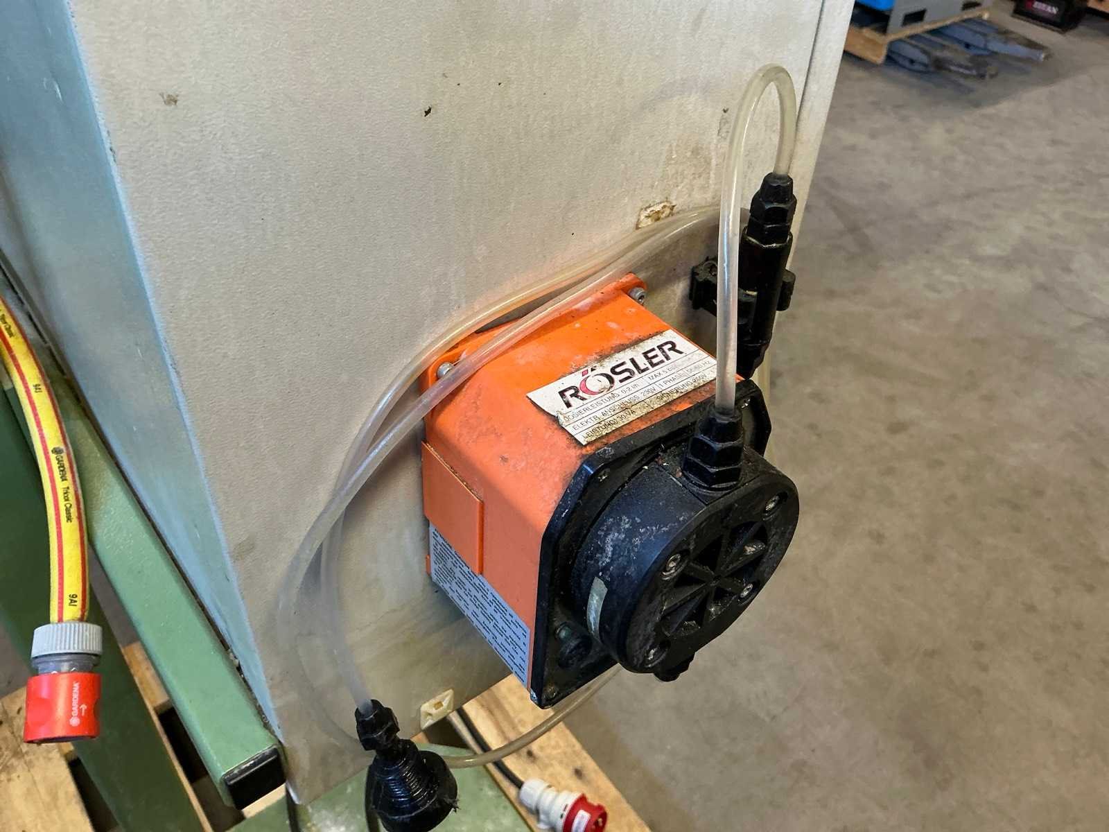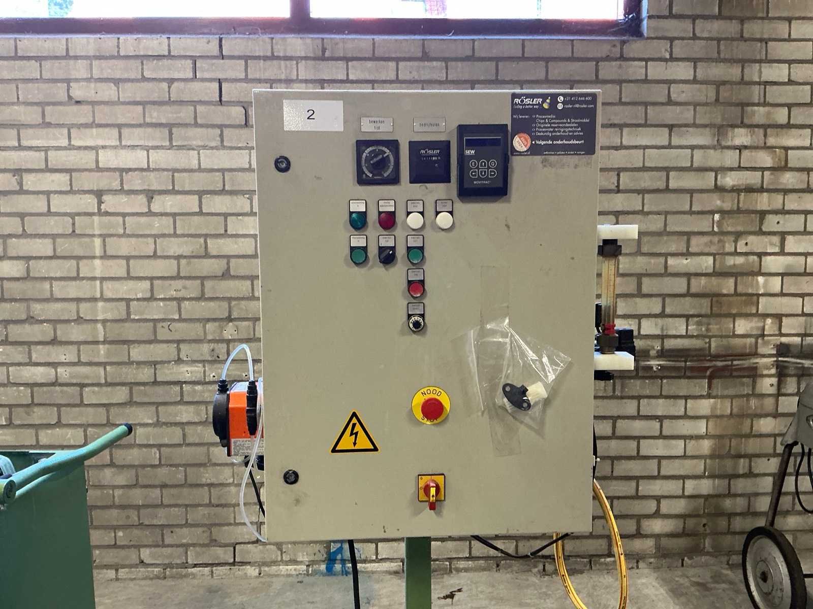 Voorzien van: besturingskast, tijdklok, urenteller, 2 zeefdekken, wateraansluiting, dosering, elektrisch schema, kast 1800x800x 450. Nee Merk: Rösler Type: FKS-04-1-1 Model: 50242/01-06 Bouwjaar: 2001 Lengte: 1350cm Breedte: 900cm Hoogte: 1300cm Serienummer: 50242/01-06