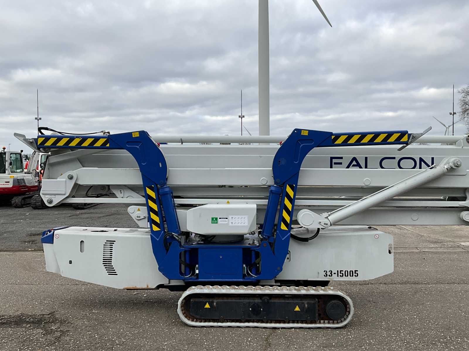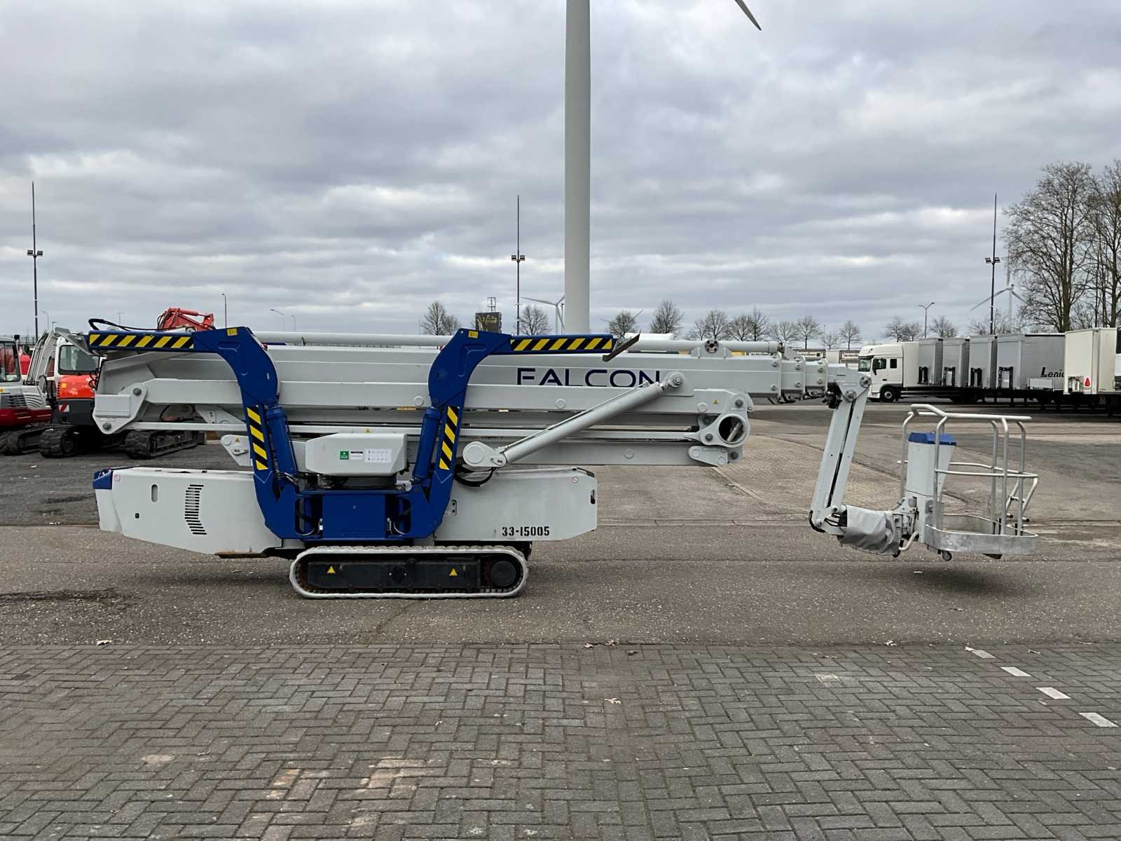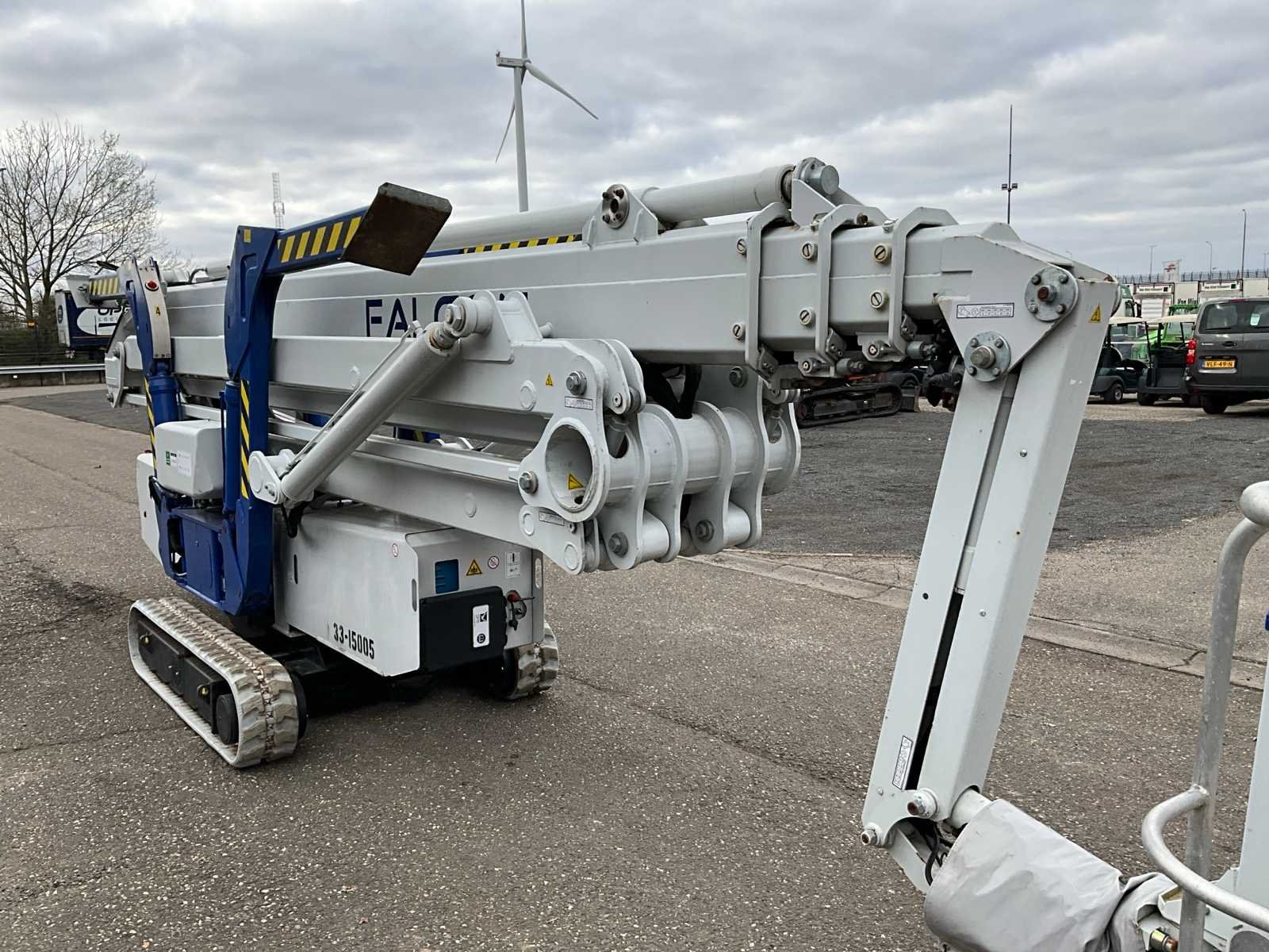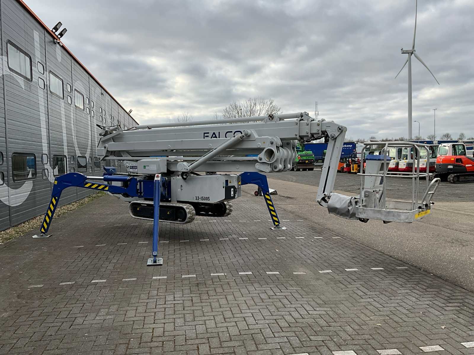 Voorzien van, 3 cyl Kubota Diesel motor, 4x stempels met automatische waterpas afstempeling, Jip-arm 110Gr, 375Gr rotatie, 90Gr werkbak rotatie, Hydraulisch verstelbaar rupsonderstel van 110-150cm, non marking tracks, draadloze afstandbediening Nee Merk: Falcon Type: Spider FS330Z Hybride 33mtr Bouwjaar: 2015 Serienummer: 15005 Diesel: true Elektrisch: true Motorvermogen (kW): 21.7kW Telescoop hoogwerker: true Knikarm hoogwerker: true Werkhoogte: 33000mm Horizontale rijkwijdte: 19000mm Plateau afm. l: 750mm Plateau afm. b: 1400mm Afgelezen urenstand: 1410 Eigen gewicht: 6030kg Totale afmeting L: 73000mm Totale afmeting Breedte: 1250mm Totale afmeting Hoogte: 1990mm