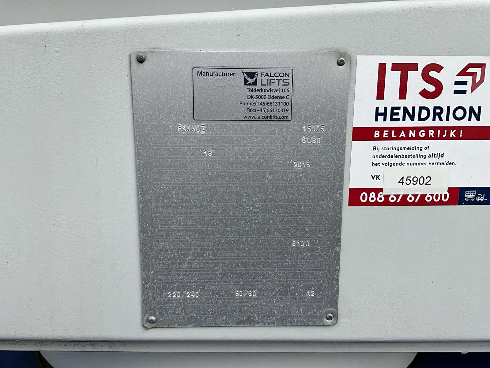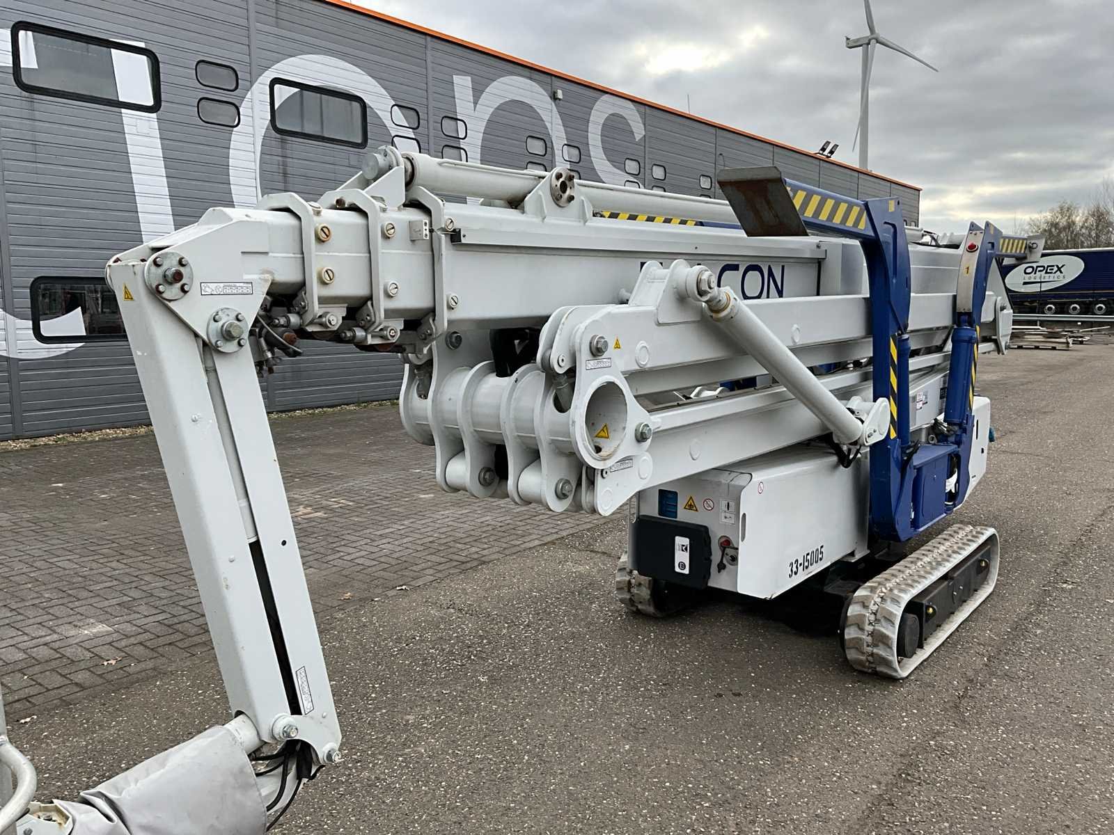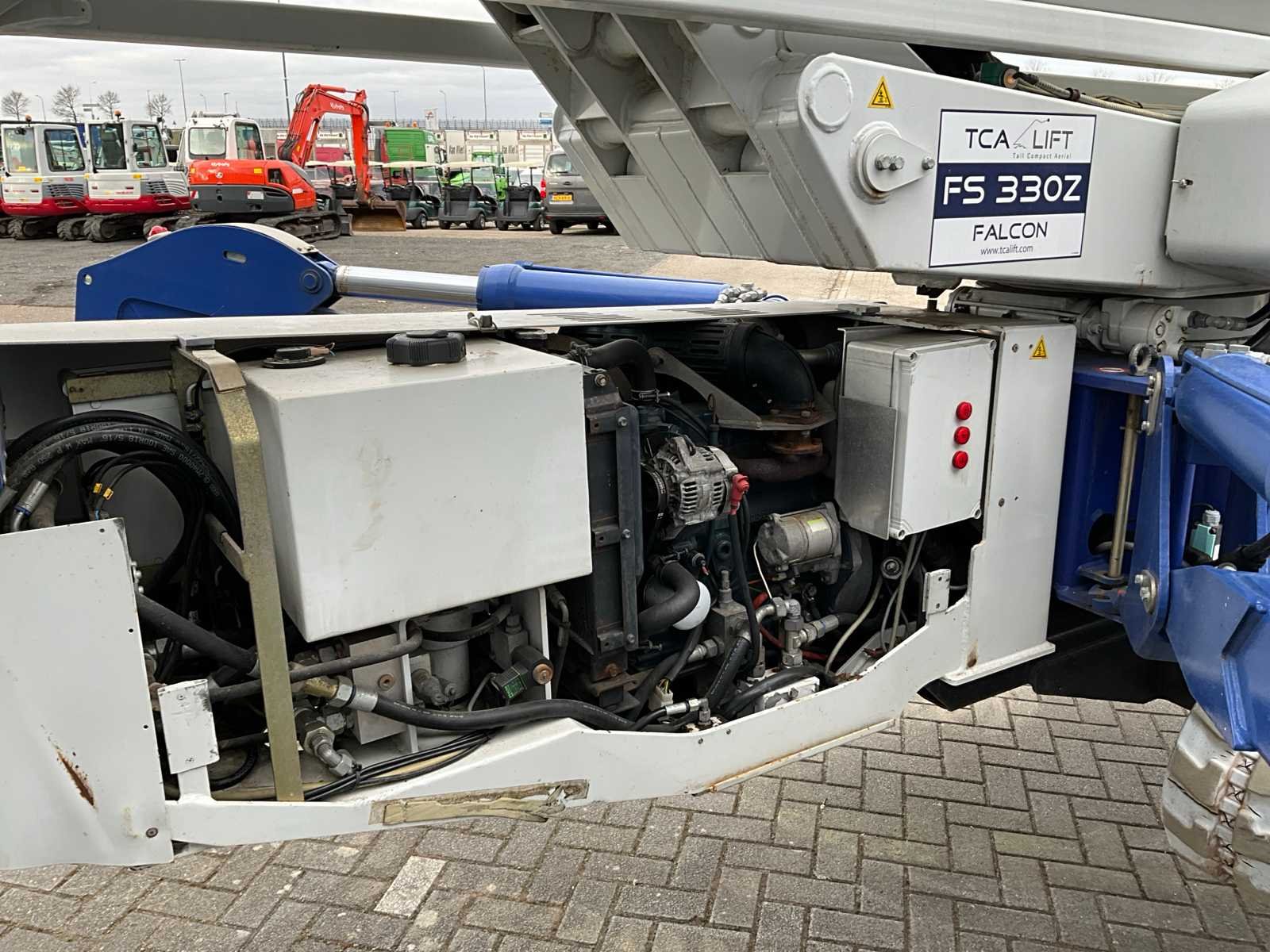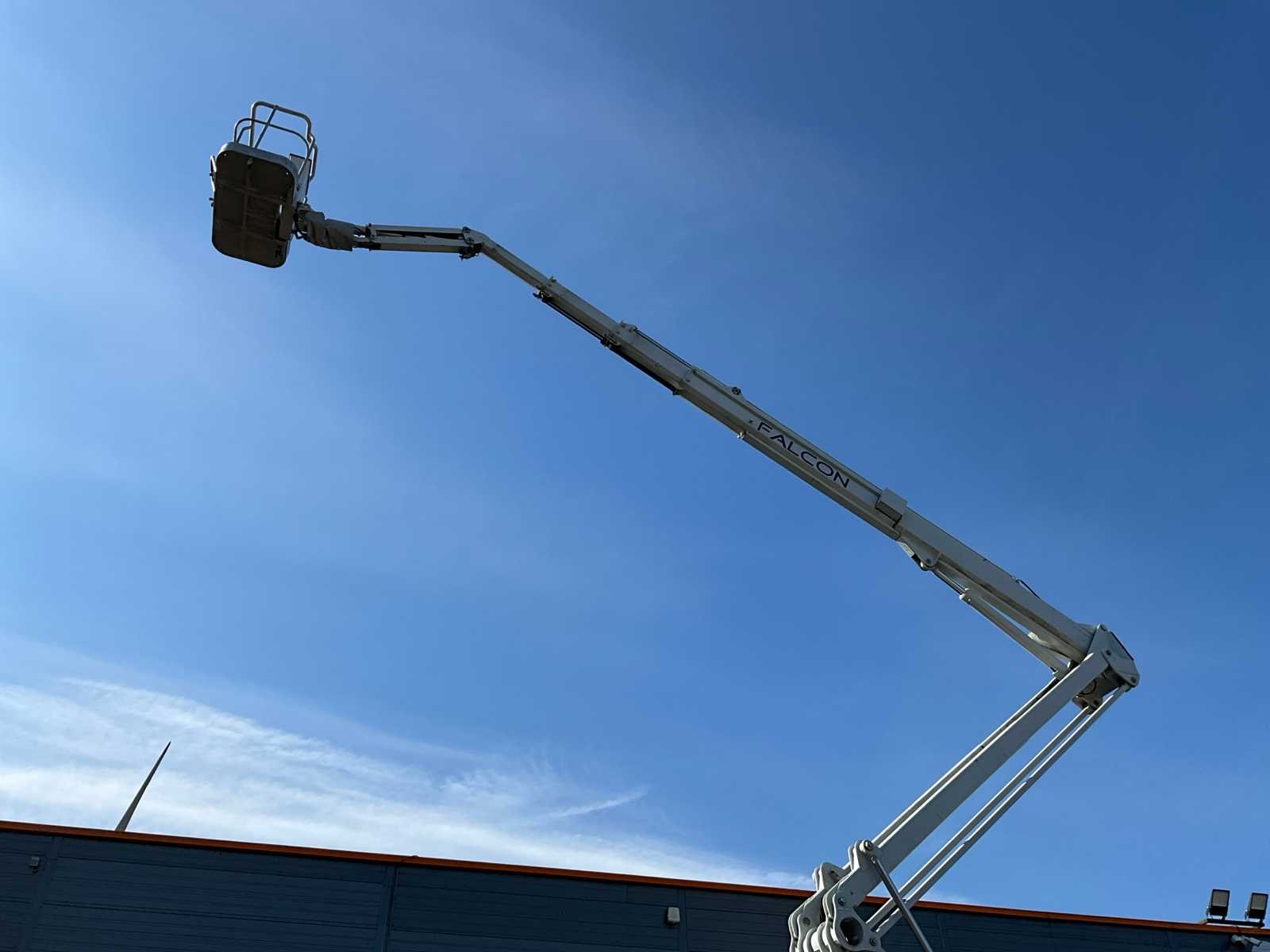 Voorzien van, 3 cyl Kubota Diesel motor, 4x stempels met automatische waterpas afstempeling, Jip-arm 110Gr, 375Gr rotatie, 90Gr werkbak rotatie, Hydraulisch verstelbaar rupsonderstel van 110-150cm, non marking tracks, draadloze afstandbediening Nee Merk: Falcon Type: Spider FS330Z Hybride 33mtr Bouwjaar: 2015 Serienummer: 15005 Diesel: true Elektrisch: true Motorvermogen (kW): 21.7kW Telescoop hoogwerker: true Knikarm hoogwerker: true Werkhoogte: 33000mm Horizontale rijkwijdte: 19000mm Plateau afm. l: 750mm Plateau afm. b: 1400mm Afgelezen urenstand: 1410 Eigen gewicht: 6030kg Totale afmeting L: 73000mm Totale afmeting Breedte: 1250mm Totale afmeting Hoogte: 1990mm