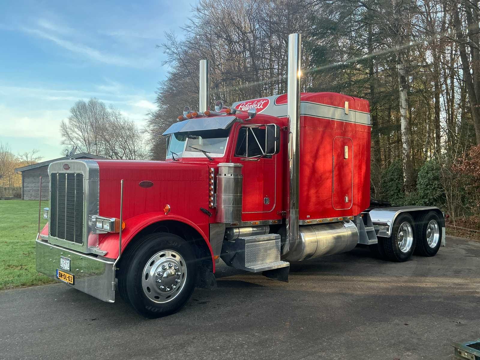 Mooie Peterbilt 379, Bouwjaar: 1992, Voorzien van 12,7 liter Detroit 60-serie, 455 pk, Eaton Fuller 15 gang versnellingsbak, 825.000 Miles, Banden voor: 80%, Banden achter: 90%, Luchtvering voor en achter, Nieuwe 8-inch uitlaatpijpen. Voorzien van 24v verlichtingsysteem voor de oplegger. Zeer goed onderhouden. Nee Kenteken: BN-DL-02 Merk: Peterbilt Type: 379 Bouwjaar: 1992 Cilinderinhoud: 12700cc APK vervaldatum: 2025-09-18 Datum eerste toelating: 1992-02-28 Datum eerste toelating (NL): 2002-07-26 Type transmissie: Handmatig Asconfiguratie: 6x4 Fuel Type: Diesel Laadvermogen: 13700kg Afgelezen mijlenstand: 825000mi Aantal sleutels: 2 Emissieklasse: 0 Slaapcabine: true Startinformatie: Ja Nationaliteit documenten: NL Kentekenpapieren compleet?: true Aantal zitplaatsen: 2 Diesel: true