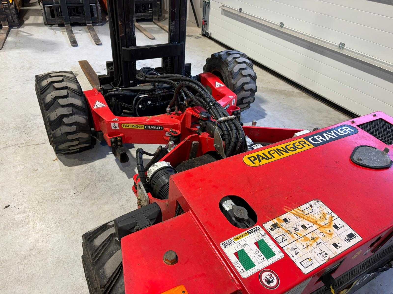 Voorzien van: 4-wielaandrijving, offroad banden, nominaal hefvermogen 2.100 kg bij 600 mm lastzwaartepunt, eigen gewicht 2.095 kg, maximale hydraulische werkdruk 22,5 / 35,0 MPa, CE-markering, serienummer 100057995 en een urenstand van 525 uur. Nee Merk: Palfinger Crayler Type: BM214 Bouwjaar: 2007 Serienummer: 100057995 Diesel: true Aantal wielen: 4 Hefvermogen: 2100kg Hefhoogte: 3700mm Lepellengte: 1200mm Duplex mast: true Free-lift: true Luchtbanden: true Afgelezen urenstand: 525 Eigen gewicht: 2025kg Totale afmeting L: 3700mm Totale afmeting Breedte: 2050mm Totale afmeting Hoogte: 2300mm