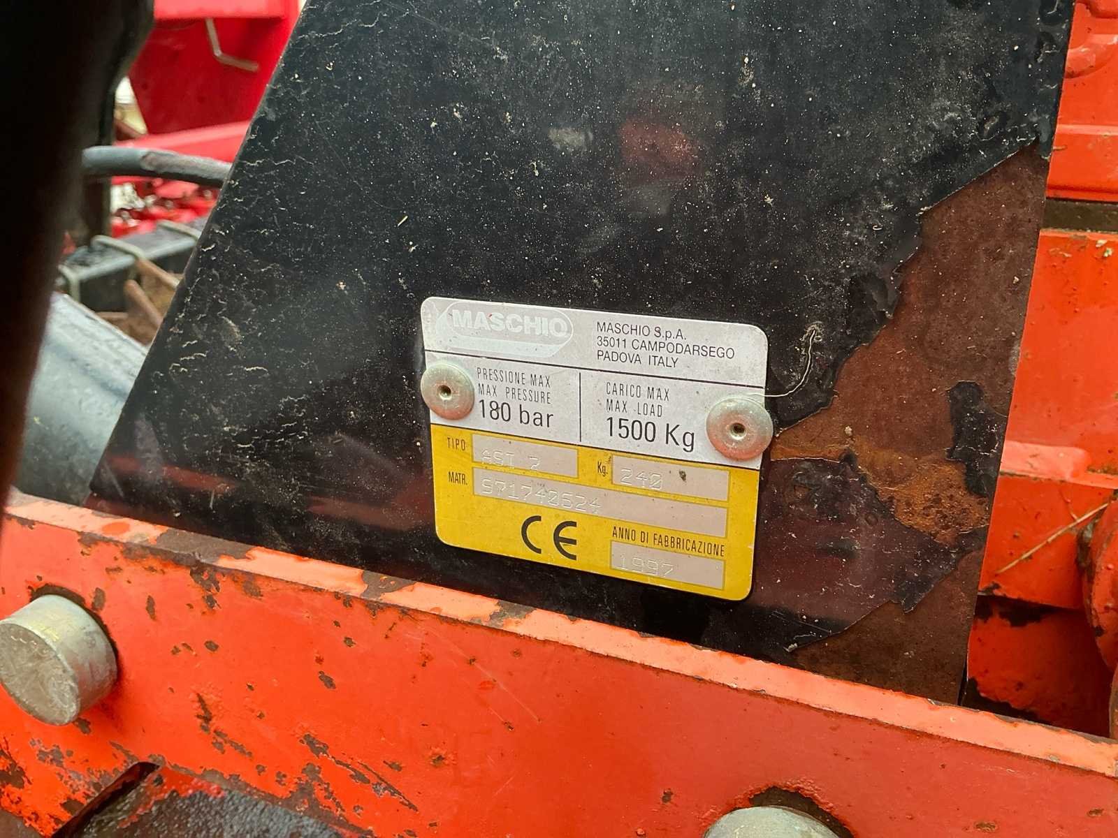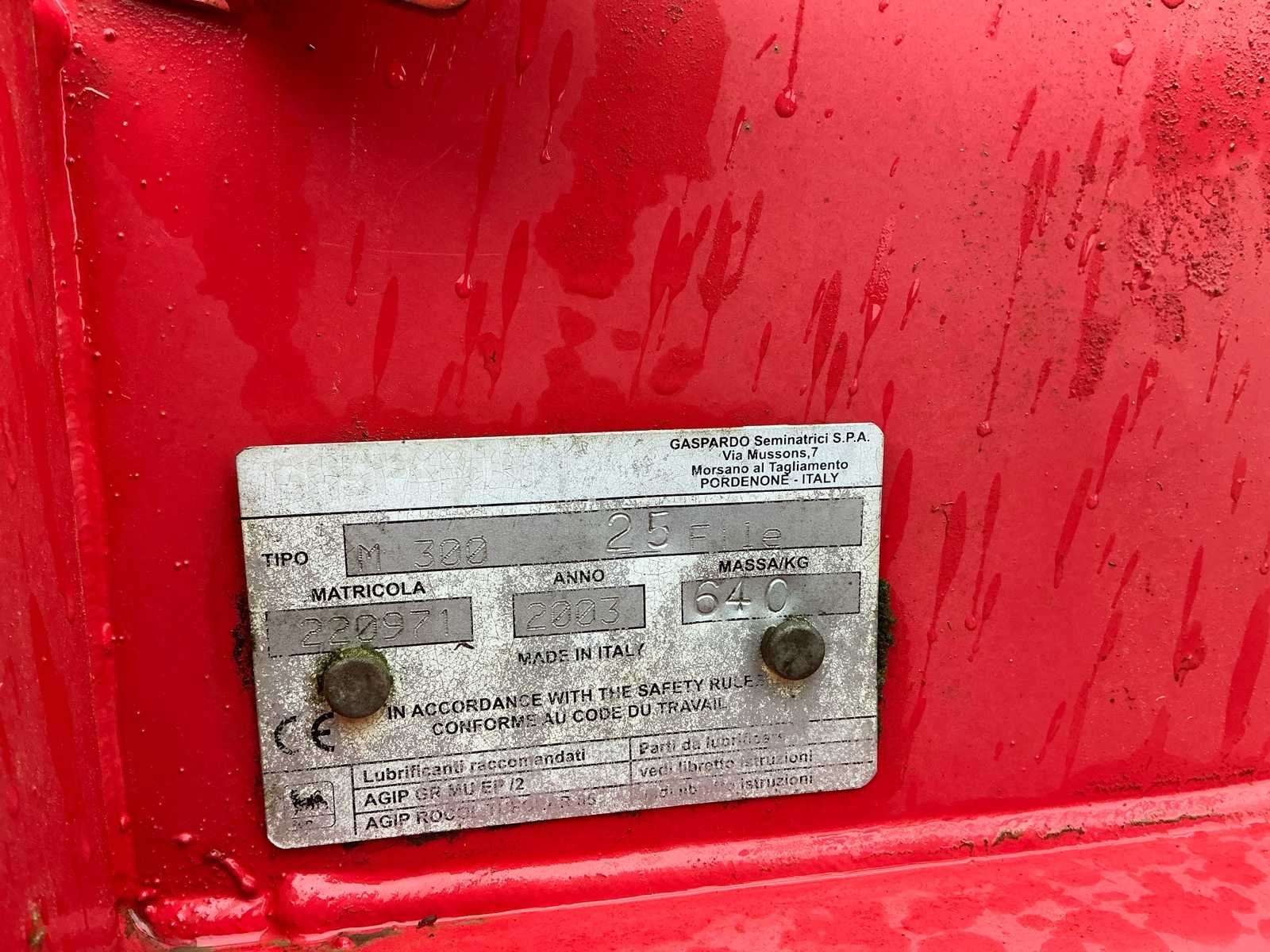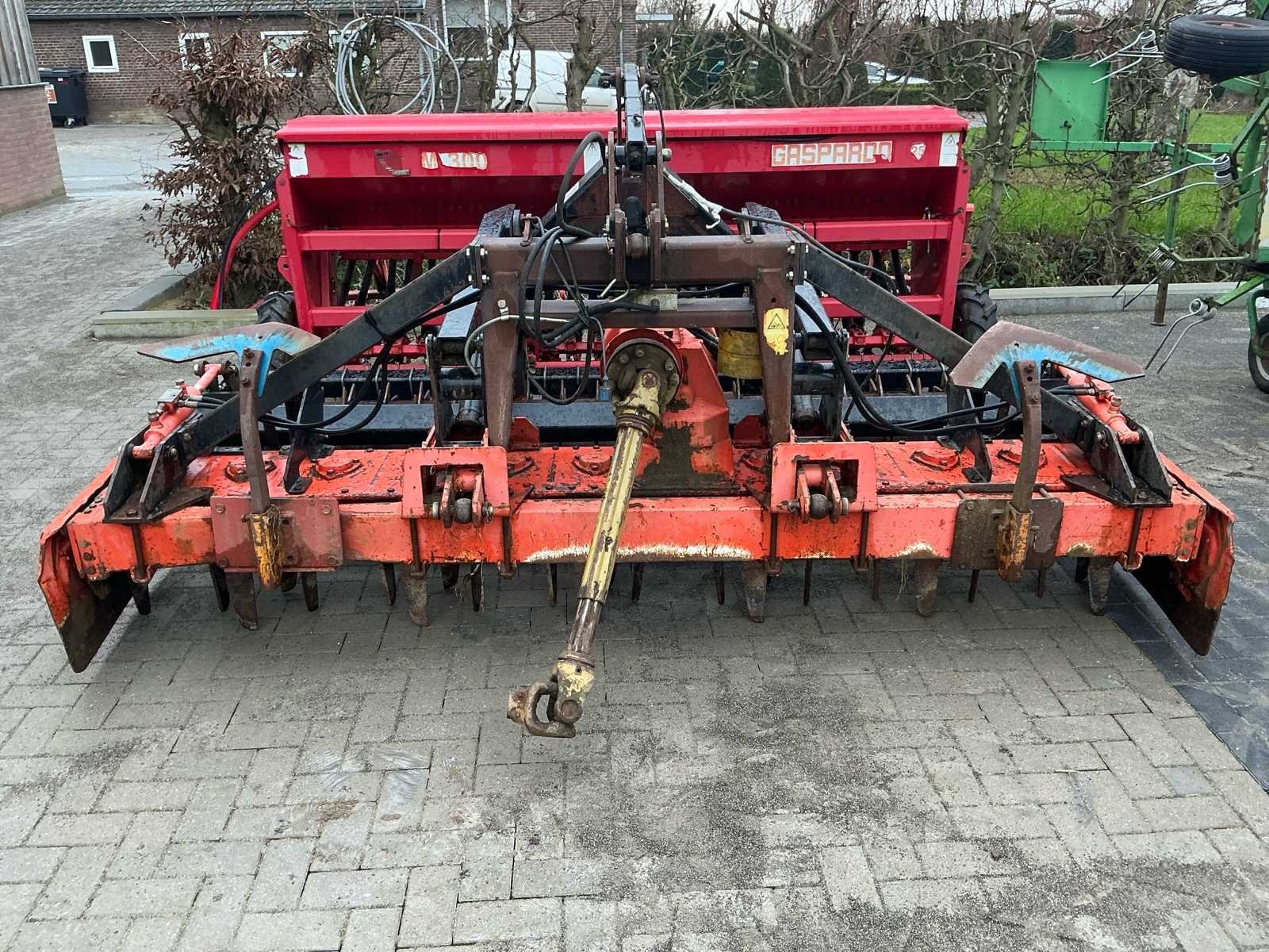 Bestaat uit: Maschio Erpice rotante DM3000, werkbreedte: 300 cm, aantal rotoren: 12, packerrol: 50 cm, 3-punts hef, Gaspardo M300 25File, mechanische/pneumatische zaaimachine, 25 rijen, werkbreedte: 3 meter (300 cm)., aantal rijen: 25, gewicht: Circa 640 kg. Gaspardo pijpenzaaier, Nee Merk: Maschio Type: Erpice rotante DM3000 Bouwjaar: 1997 Serienummer: 979260503 Werkbreedte: 3000mm Opklapbaar: true Totale afmeting L: 3400mm Totale afmeting Breedte: 3000mm Totale afmeting Hoogte: 1600mm