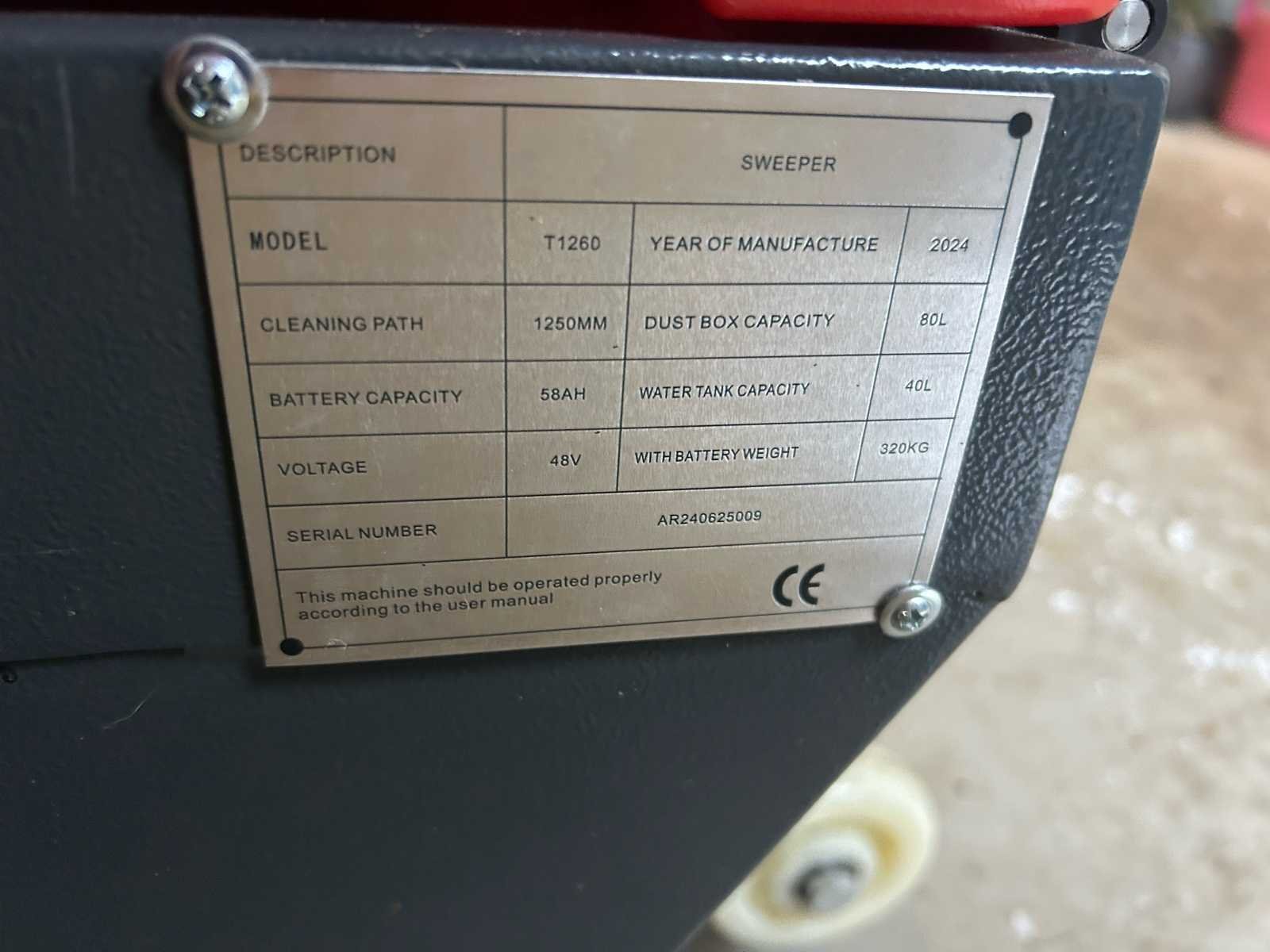 Staat: ongebruikt, zo goed als nieuw. Drivepower: 800W. Accu continue capaciteit : 3 uur. Snelheid: 12km/uur. Beschikt over werkverlichting. Accu: 48V. Veegt 8750 m2 per uur. Nee Merk: EP Type: T1260 Bouwjaar: 2024 Elektrisch: true Afgelezen urenstand: 1hr Accu lader: true Eigen gewicht: 380kg Totale afmeting L: 1400mm Totale afmeting Breedte: 1250mm Totale afmeting Hoogte: 1350mm