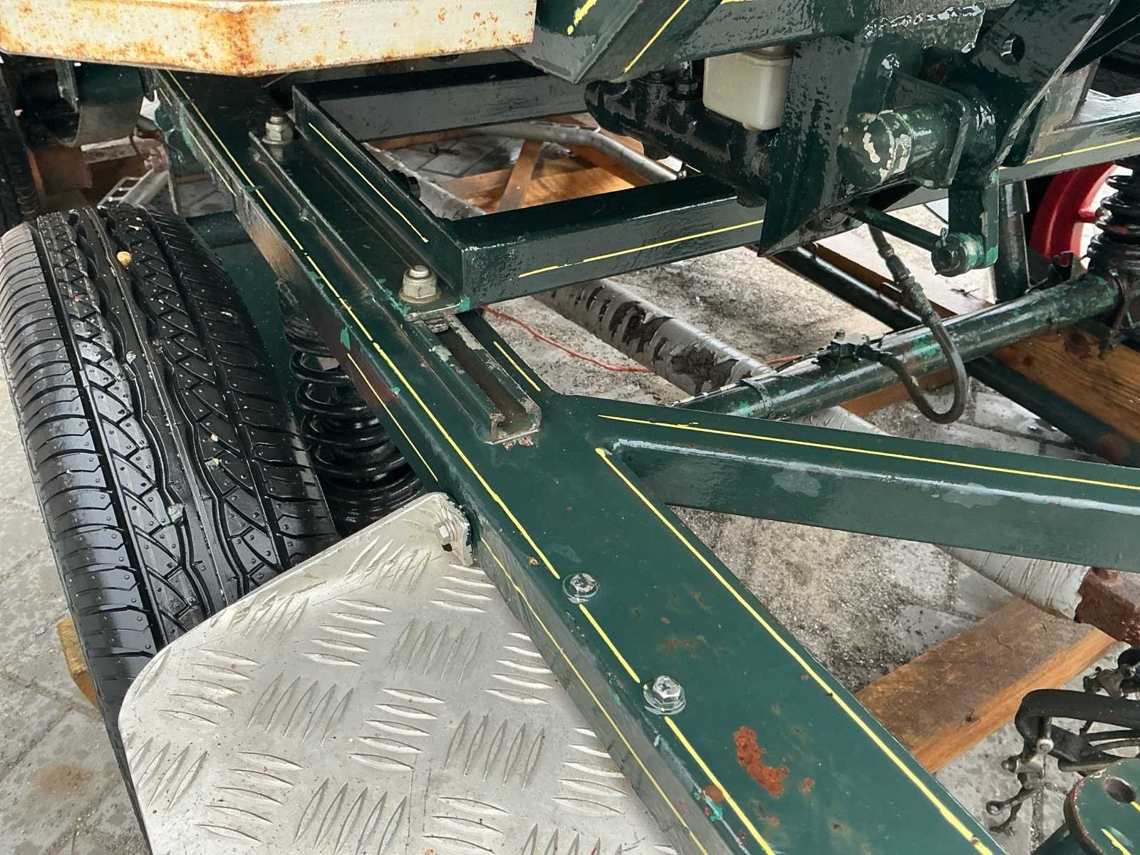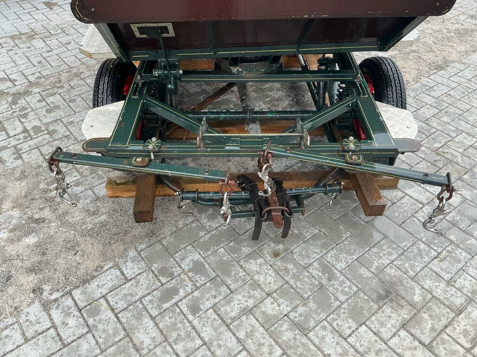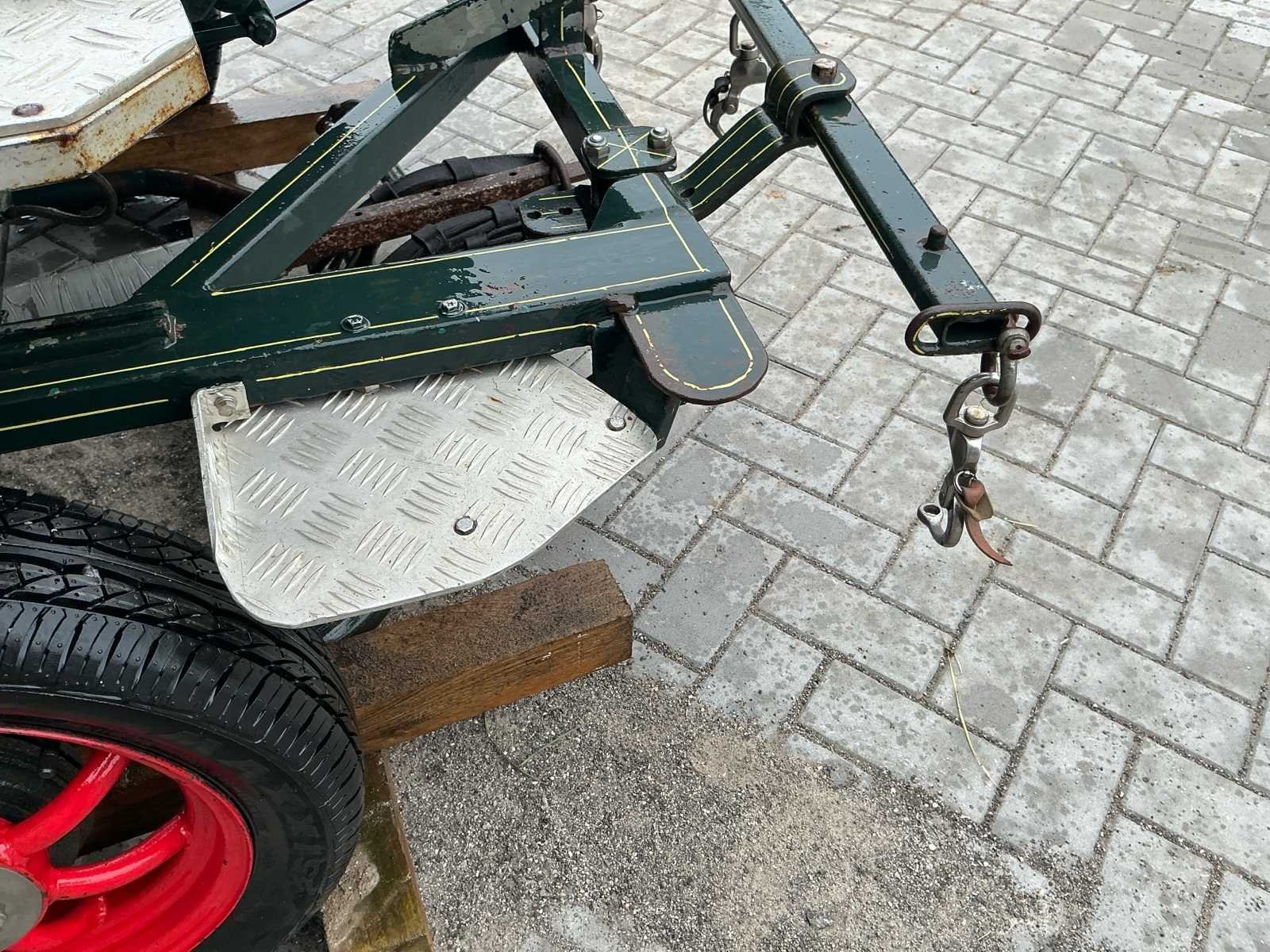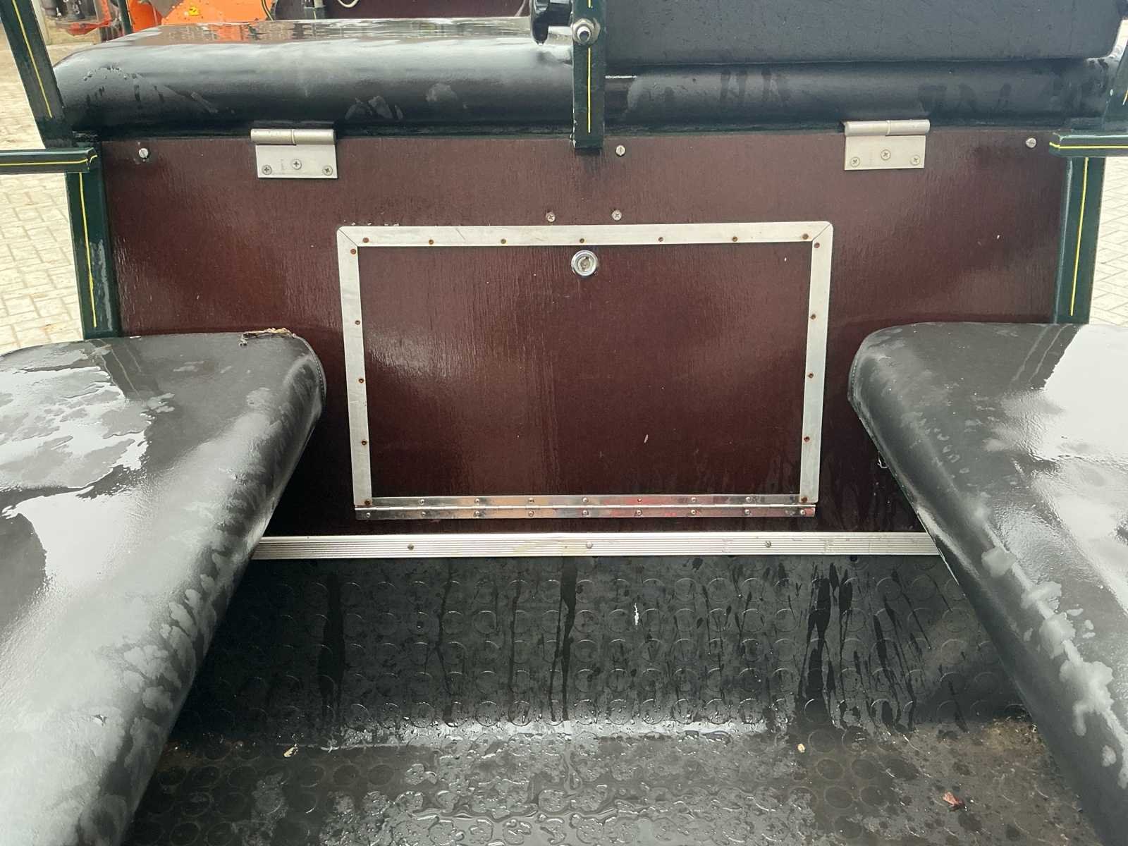 Voorzien van: Merk : enkel en Tweespan, wielmaat 135/70R15, voor en achter geremd, voor en achter geveerd, opbergbakken onder voorbank, achterbanken 120cm , bokzithoogte circa 1300mm, spoorbreedte 1300, kleur : donker groen, handrem, banken met rugleuning, verstelbare dissel, aluminium antislip opstappen, reflectoren, voetrem, verhoogd zitkussen. Nee Merk: Onbekend Kleur: Groen Lengte: 3000cm Breedte: 1450cm Hoogte: 1650cm