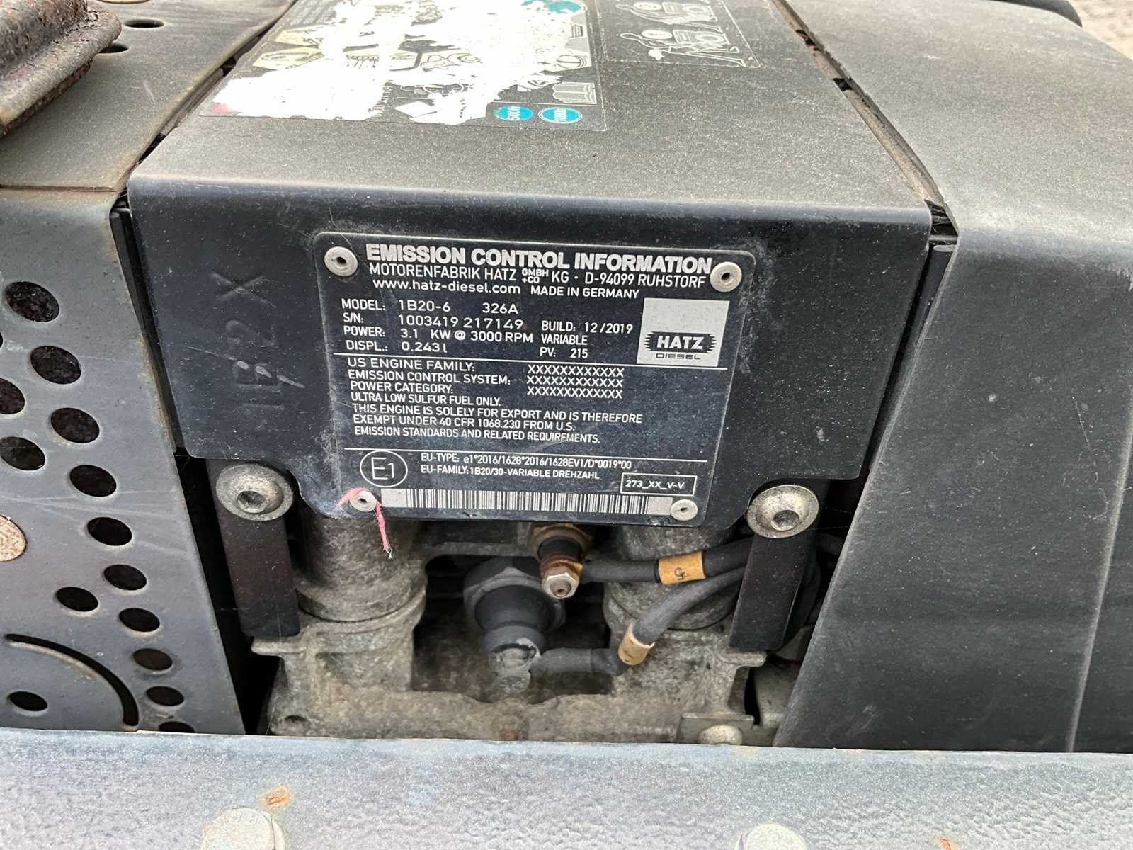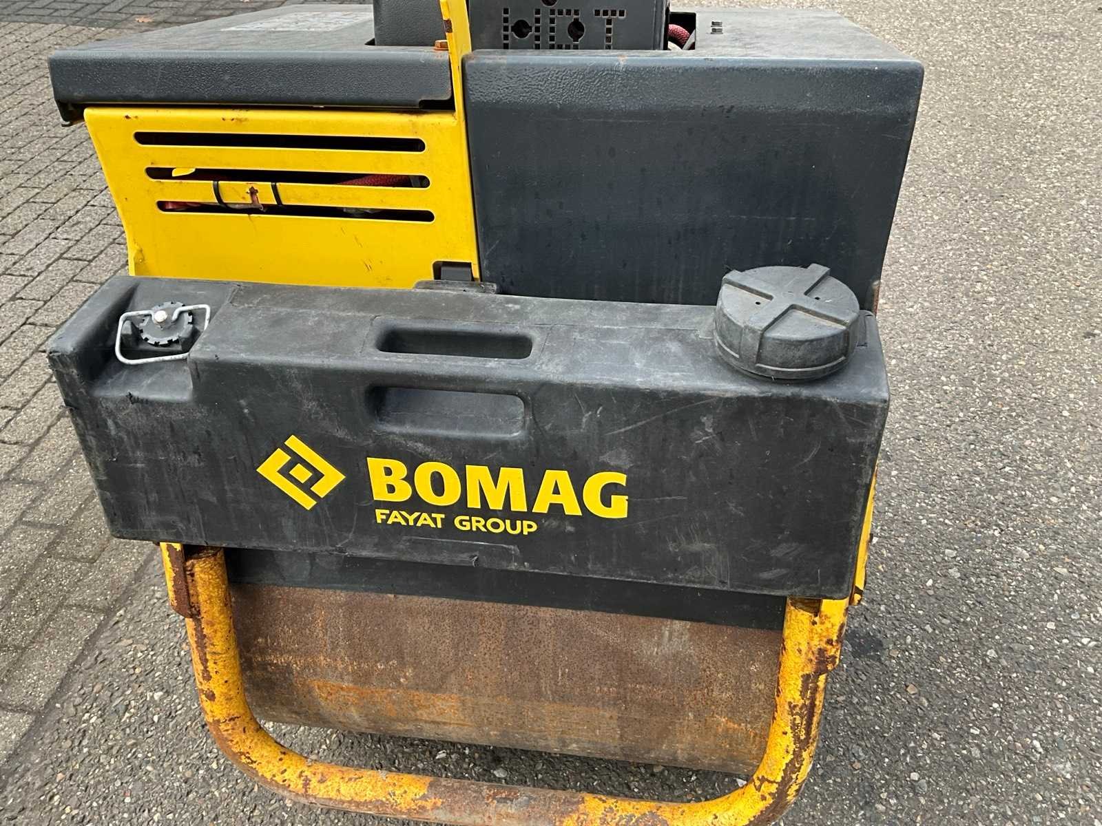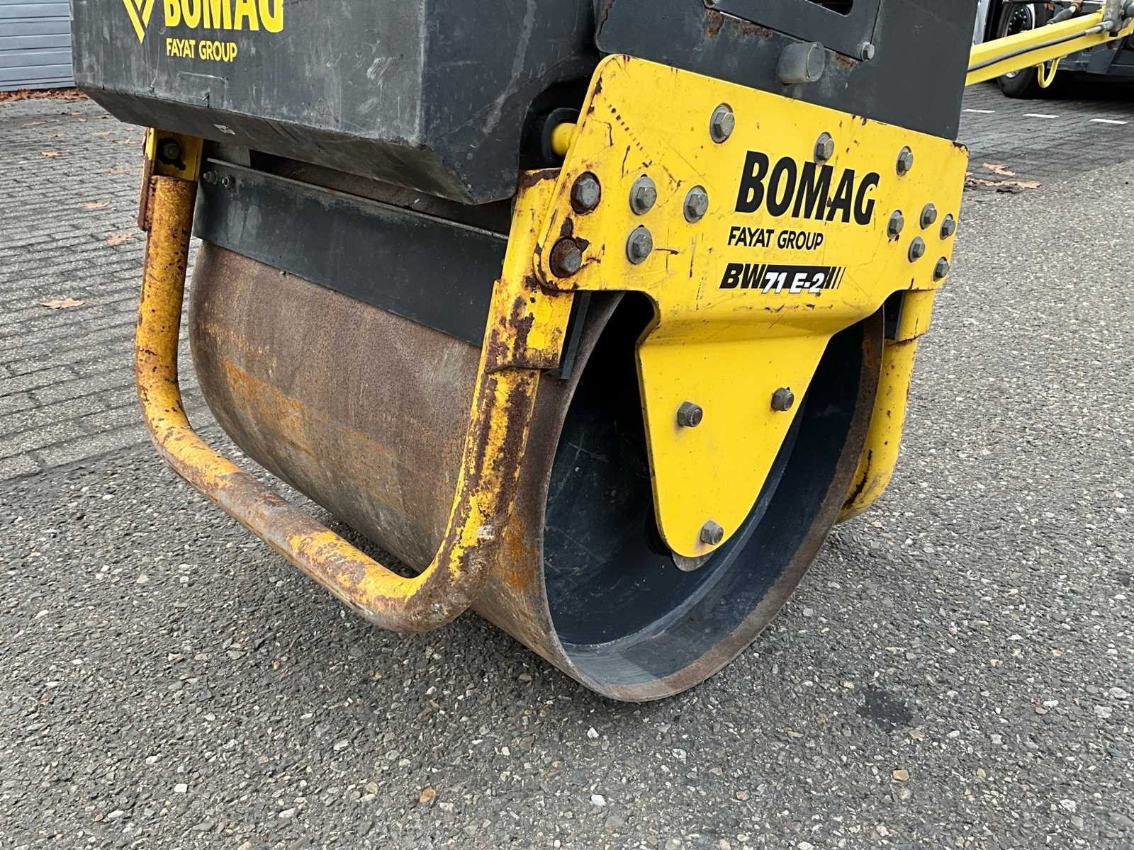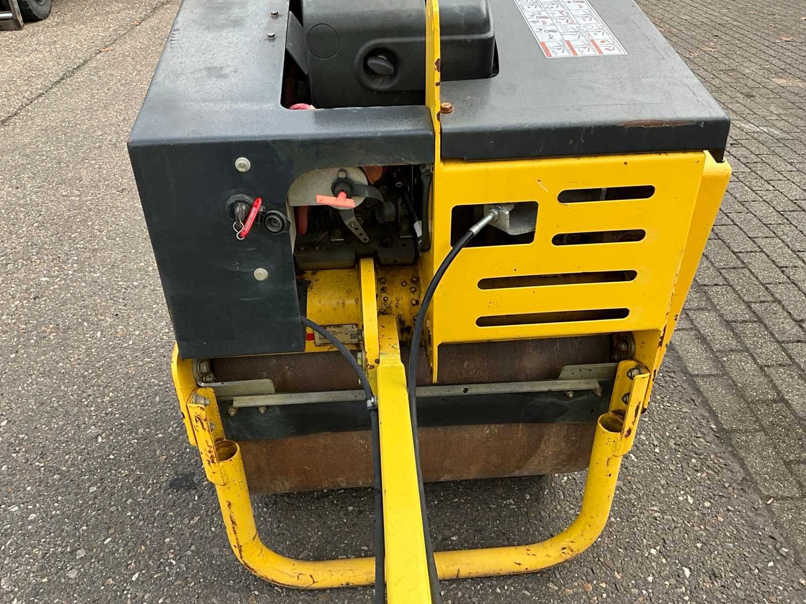 Voorzien van elektrische start, hijs oog, voor- en achteruit, lucht gekoelde dieselmotor, hoge/lage gearing, trommel schraper Nee Merk: Bomag Model: BW71E-2 Bouwjaar: 2020 Serienummer: 961834541034 Merk motor: Hatz Motorvermogen (kW): 3.4kW Aantal cilinders: 1 Brandstof: Diesel Bedrijfsgewicht: 488kg Trommeldiameter: 600mm Werkbreedte: 710 Totale afmeting L: 2300mm Totale afmeting Breedte: 900mm Totale afmeting Hoogte: 1250mm